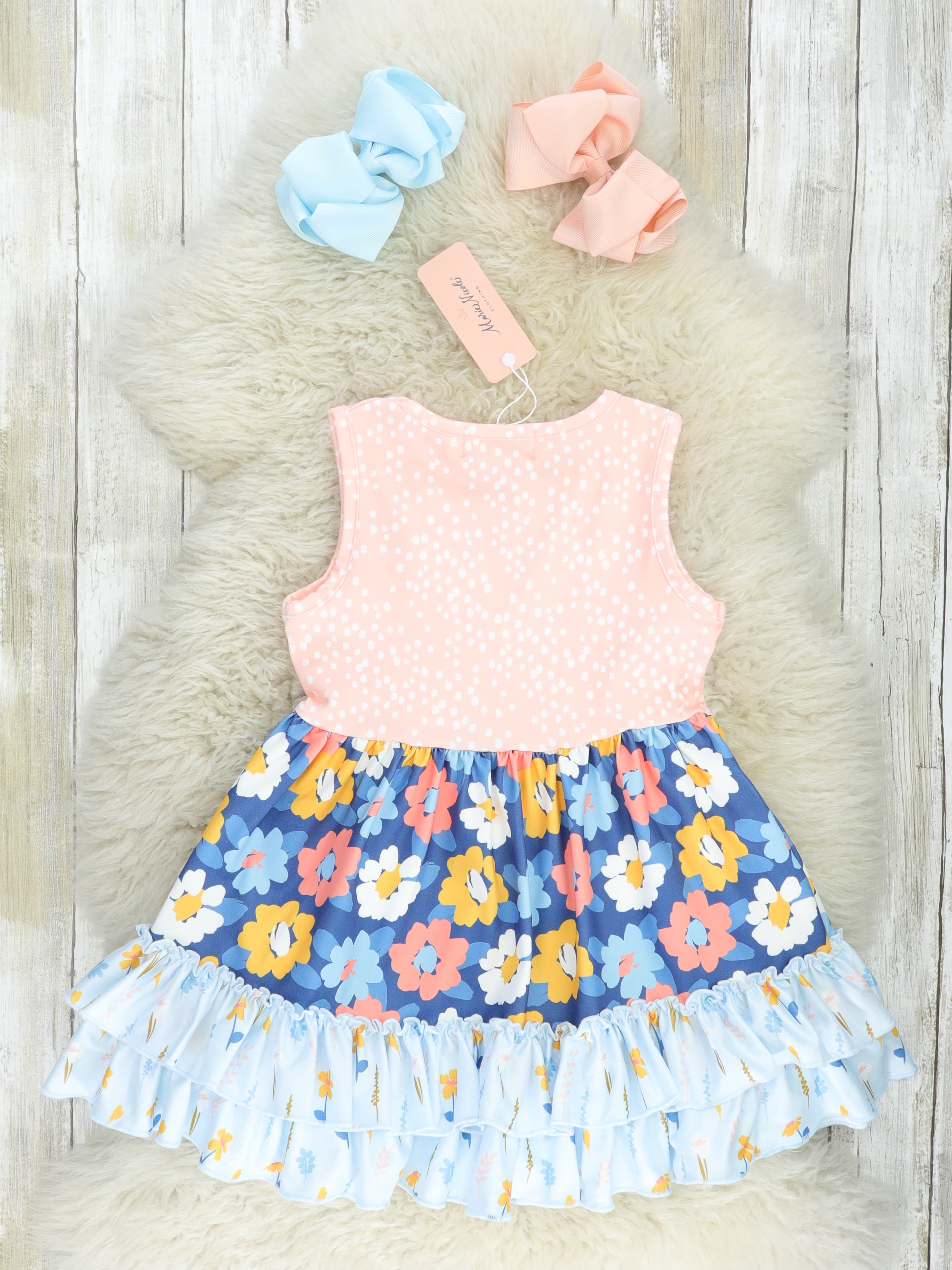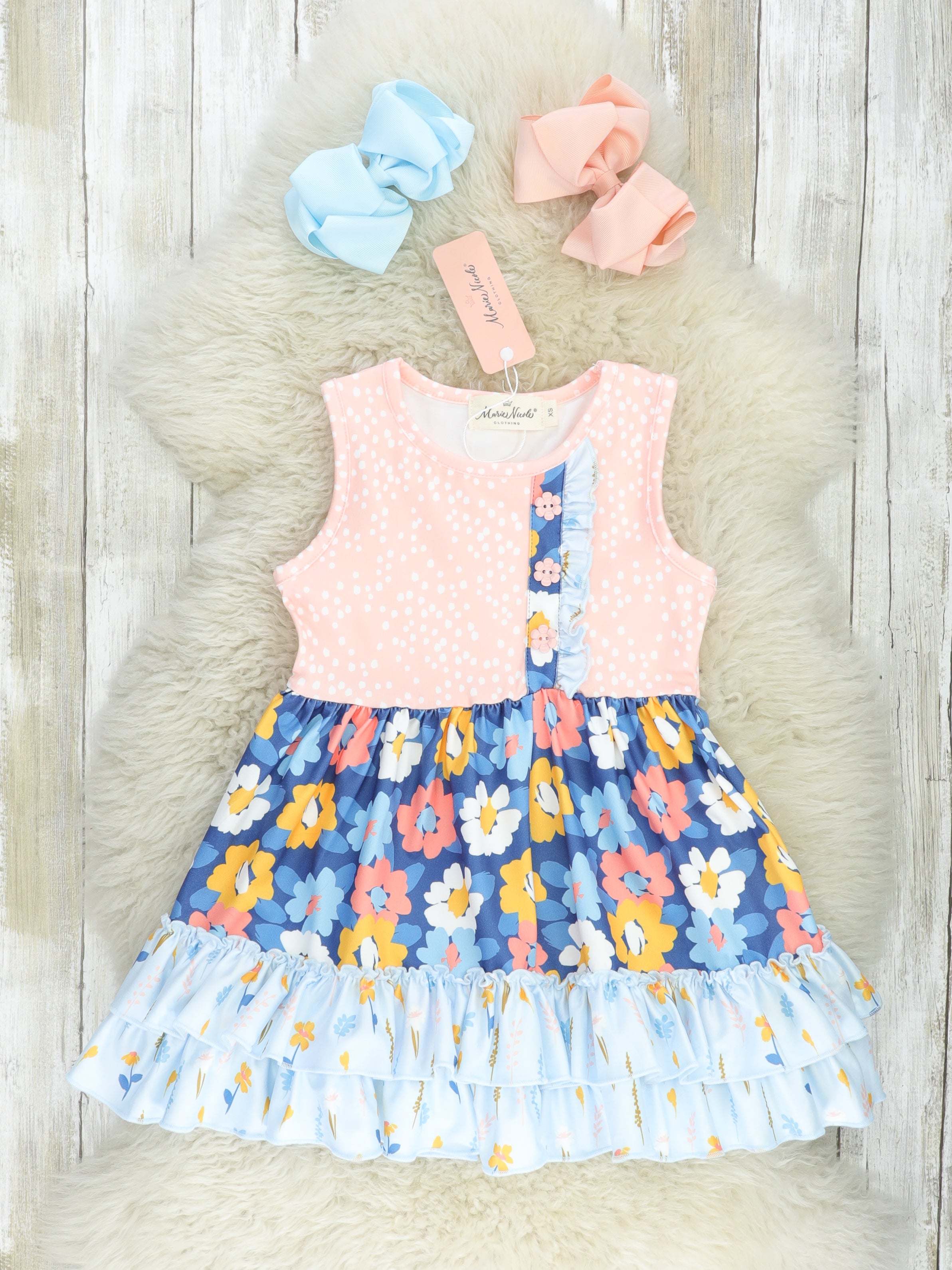 This Navy Dahlia Ruffle Dress is a spring & summer showstopper! It's perfect for any occasion with its cute dahlia print, flirty ruffles, and cozy fit. Our Navy Dahlia Collection has something for everyone! Get your hands on this unique dress for a look that'll totally wow.