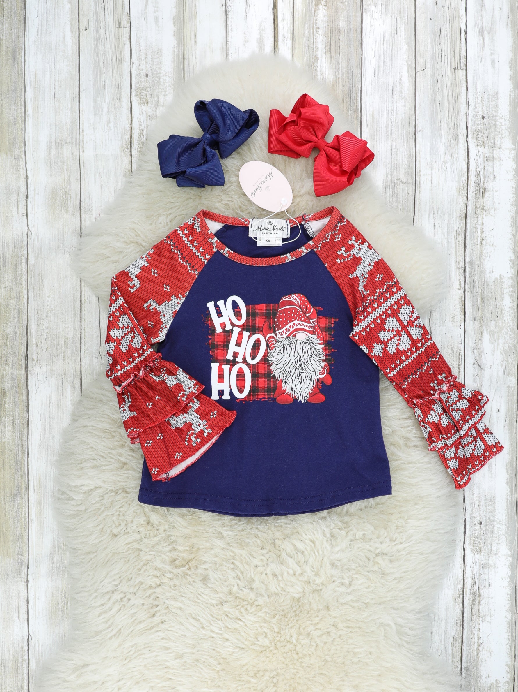 Navy "HO HO HO" Ruffle Raglan Shirt