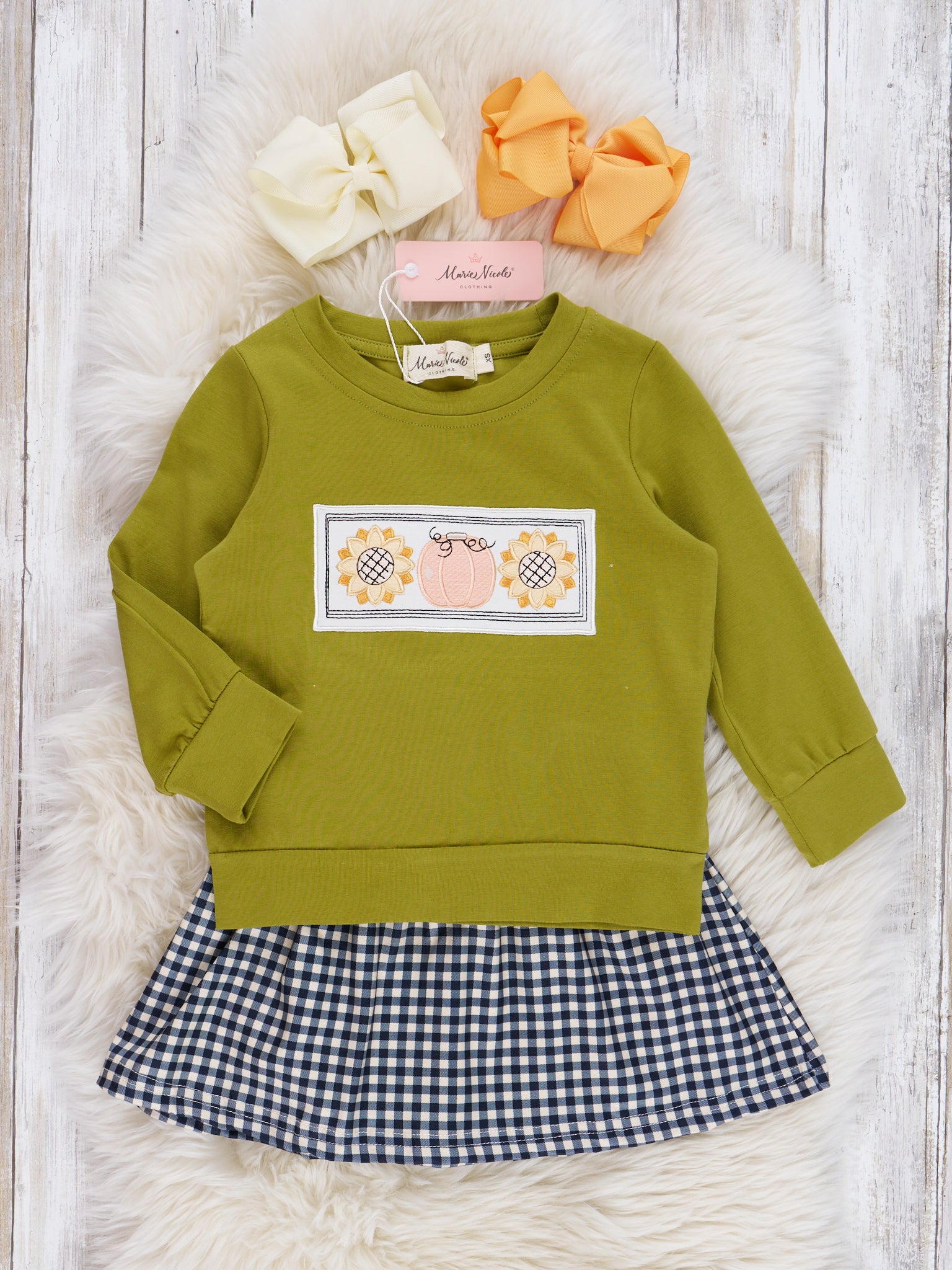 Olive Embroidered Sunflower Gingham Outfit