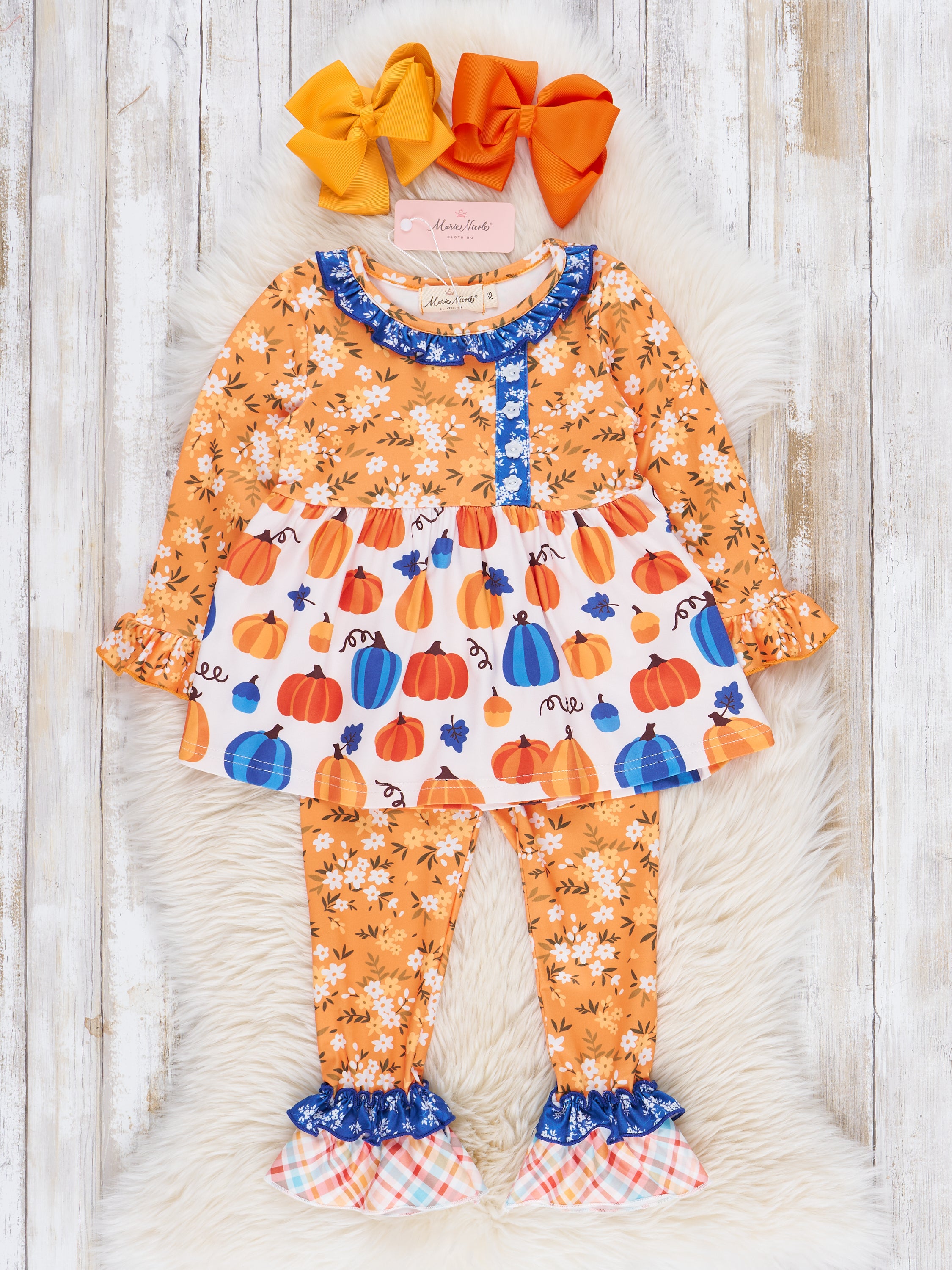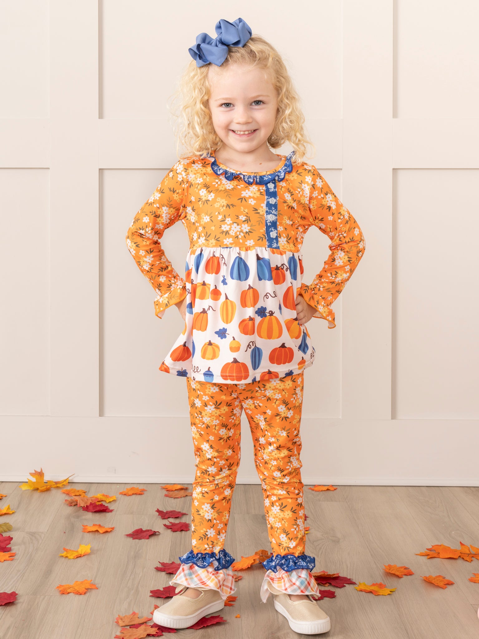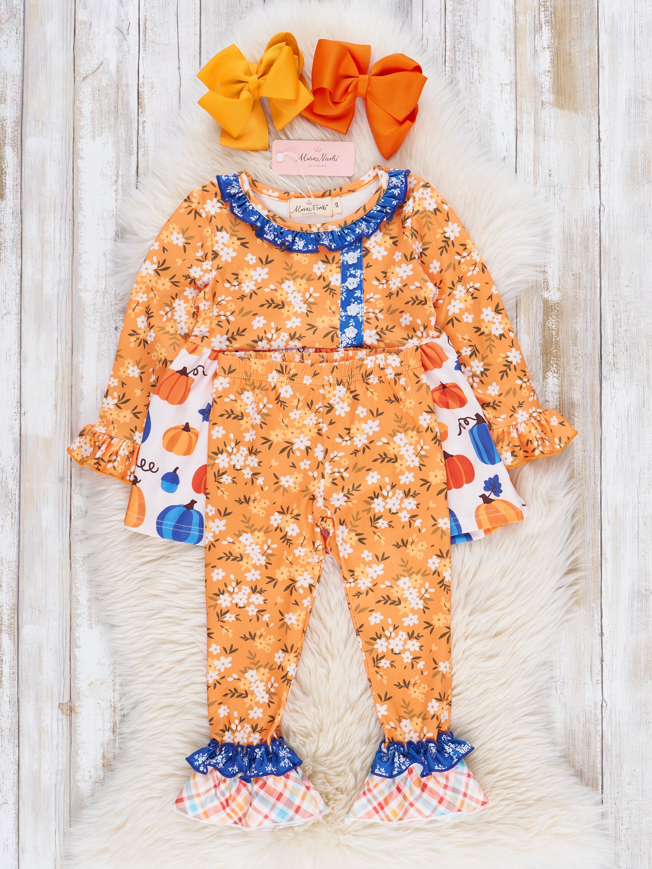 Orange Blooms & Blue Plaid Pumpkin Ruffle Outfit