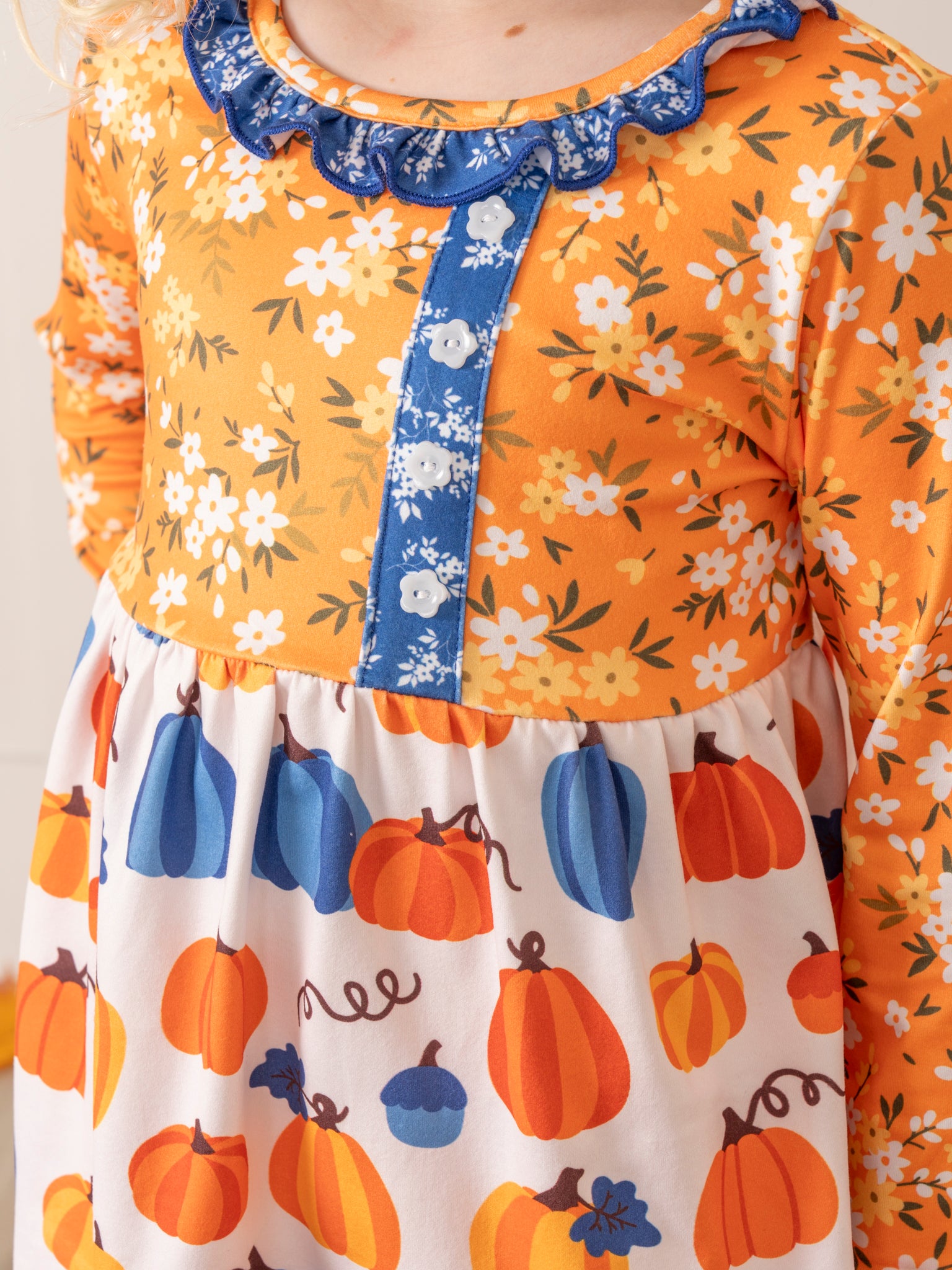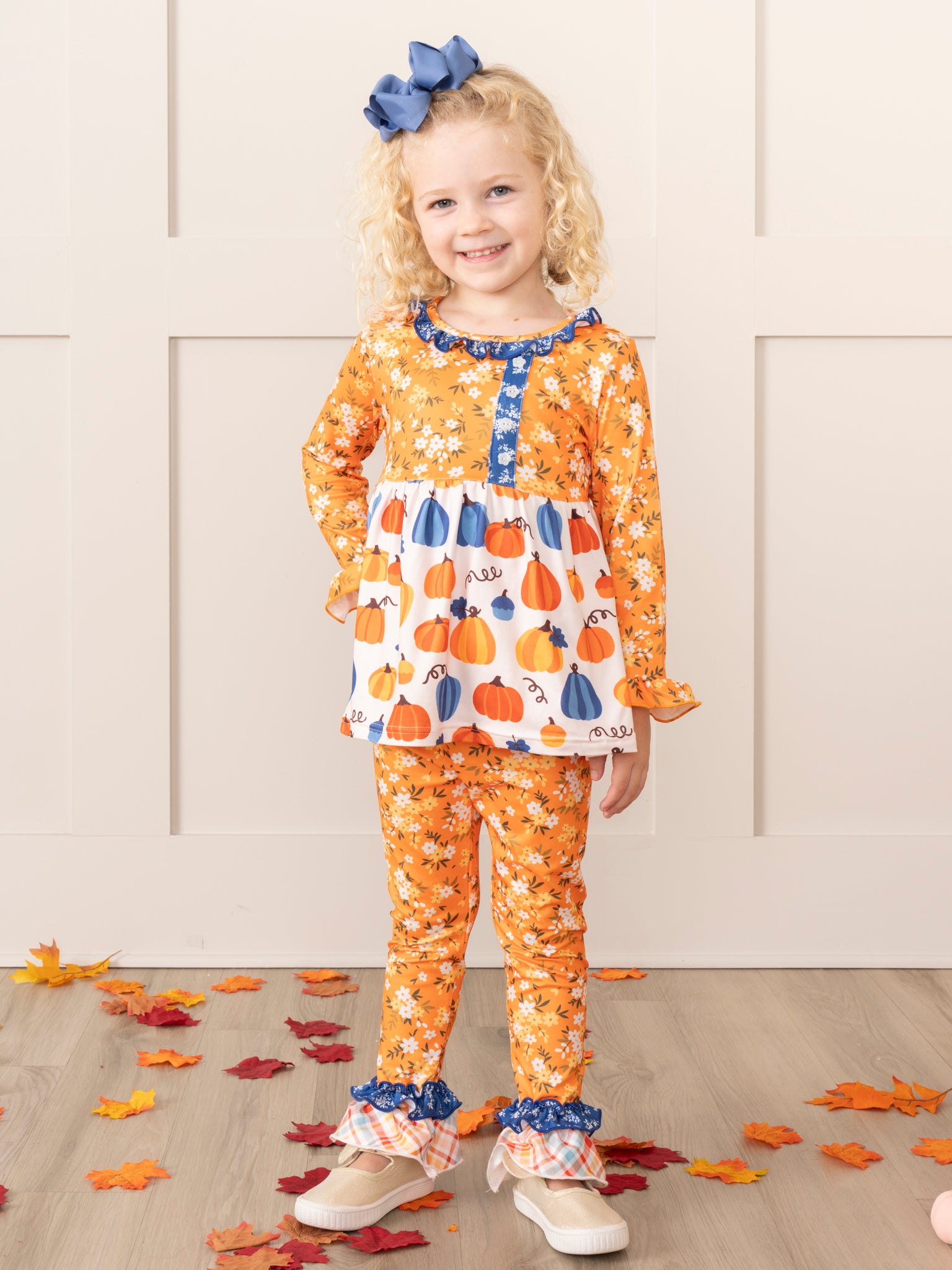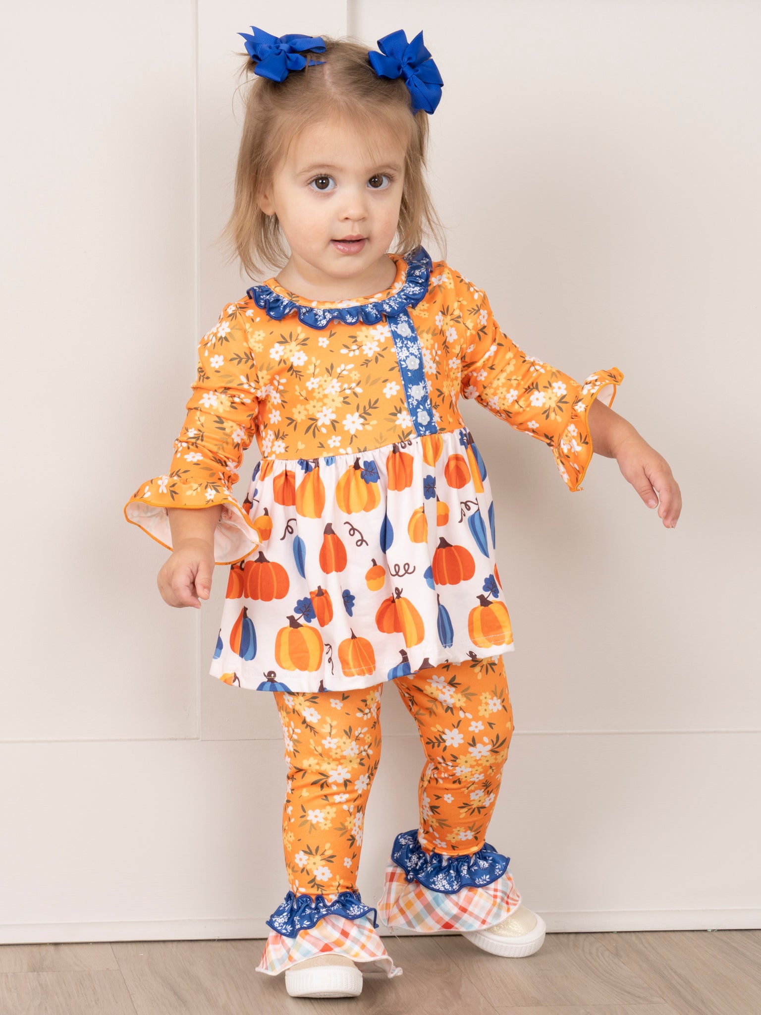 Orange Blooms & Blue Plaid Pumpkin Ruffle Outfit