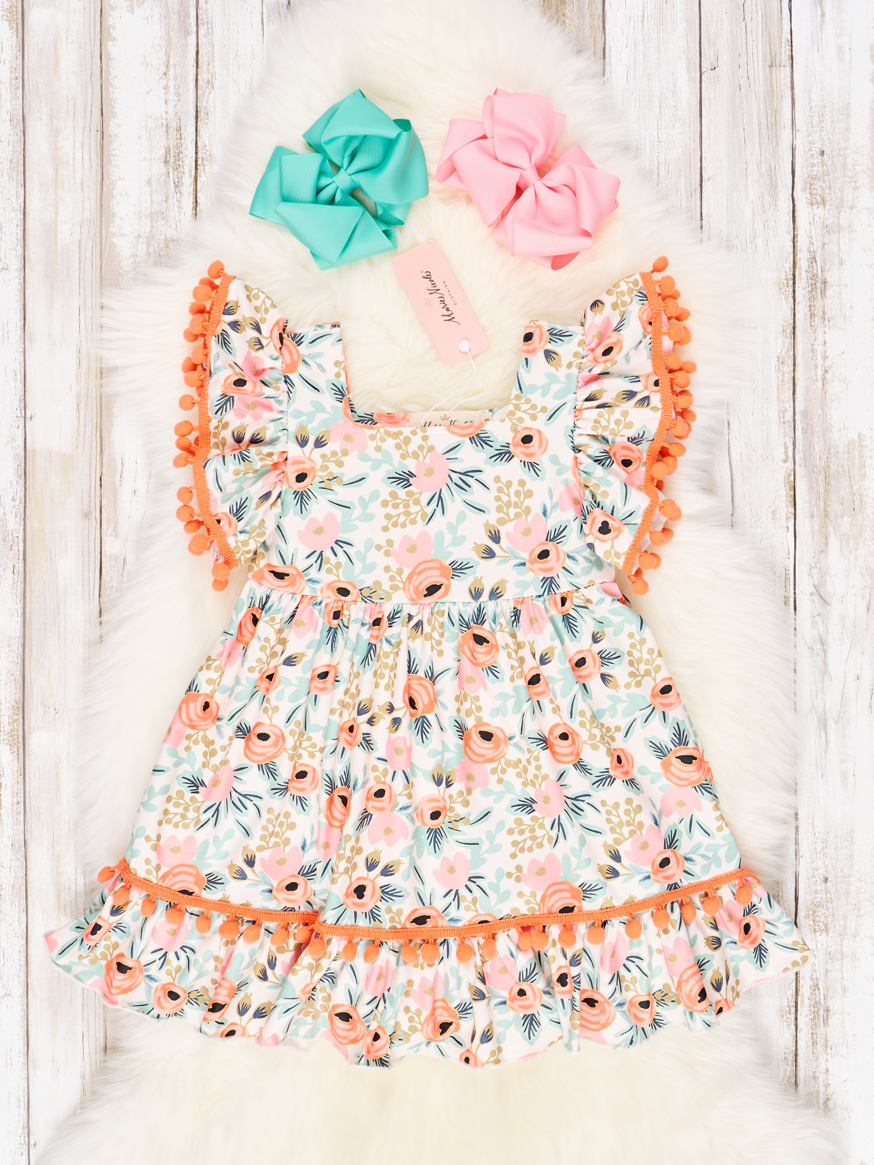 Let your littles shine bright like the sun in the Orange Poppy sister set! Adorable with their pom trim and perfect for playing, this dress is ready to light up any warm summer day. So gather the gang and get matching because these ruffle beauties were made for sisters!