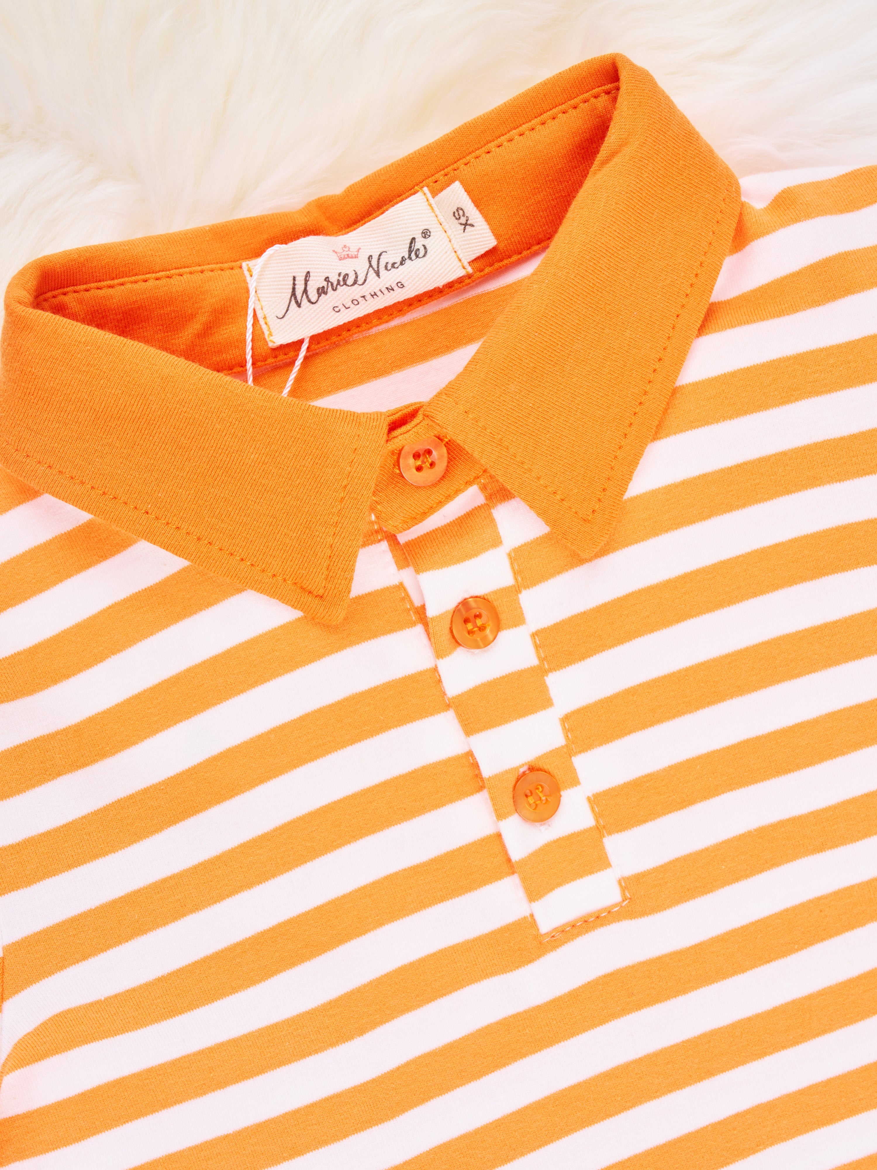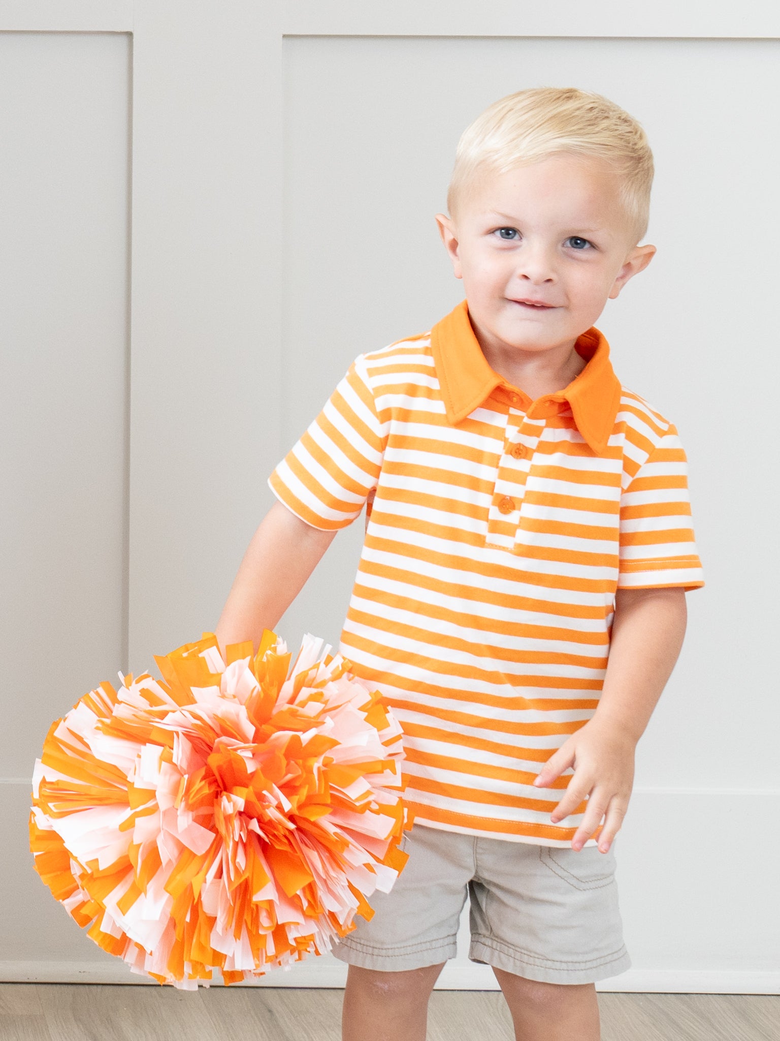 Stay stylish with this family-friendly collegiate set! Our Orange & White Polo comes in a fresh stripe design and is perfect for any family outing. Get your matching set now and show your sports-themed pride!