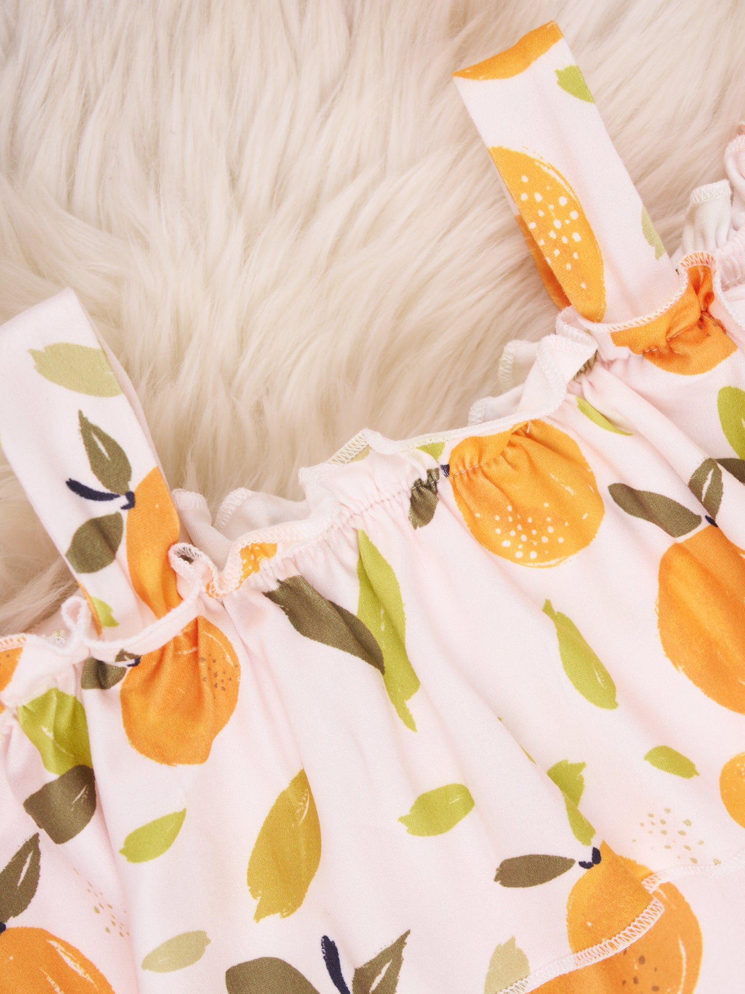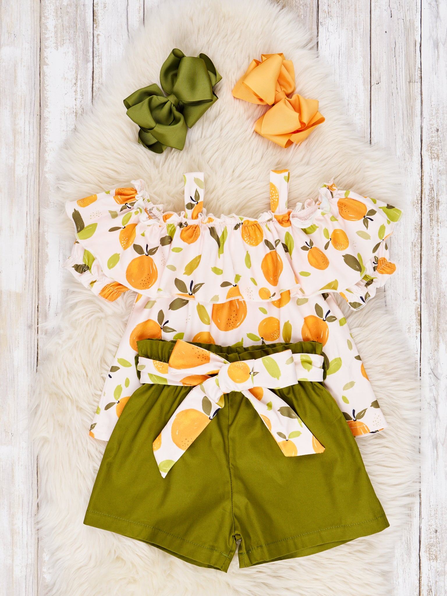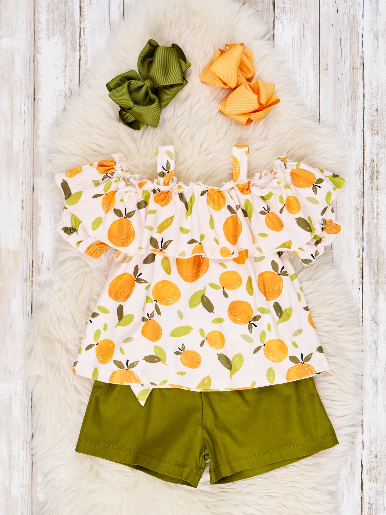 This adorable sister set will have your little ones feeling like summer royalty! Featuring an oranges print and ruffles galore, they'll be ruffling feathers wherever they go!