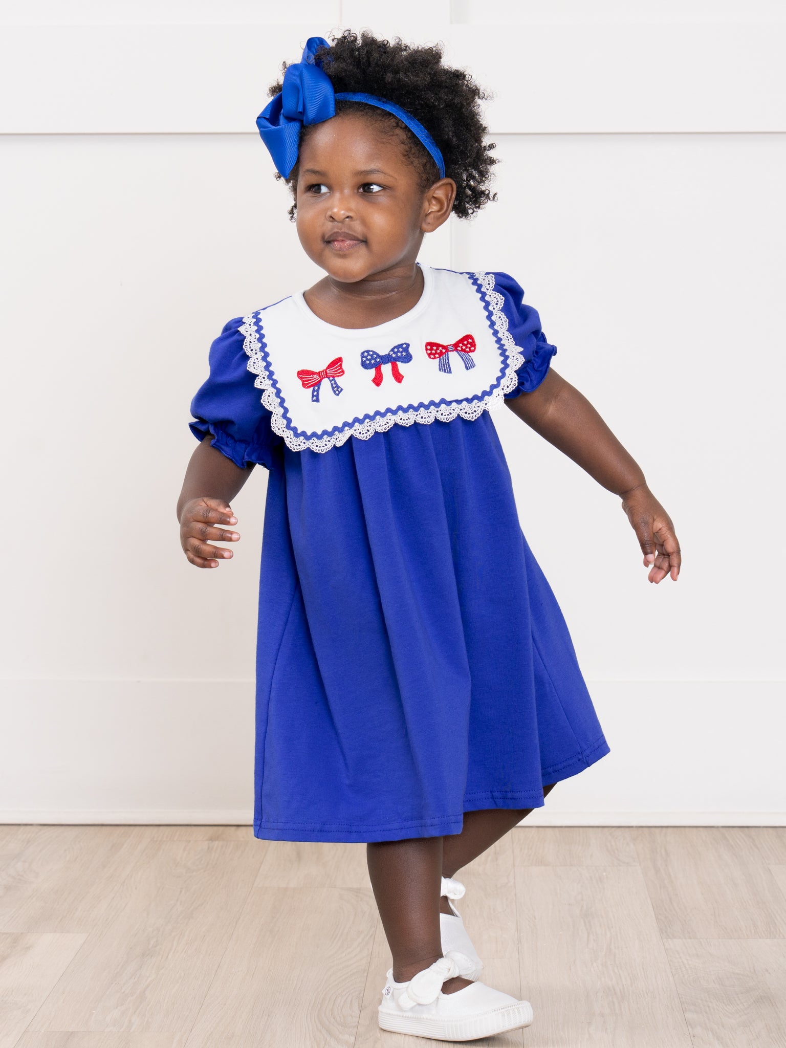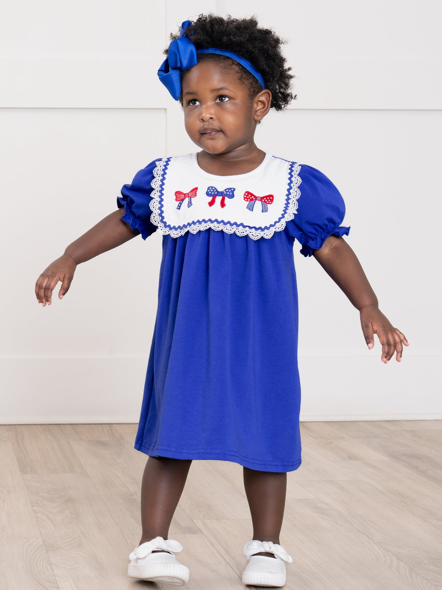 Patriotic Bow Bliss Embroidered Cotton Ruffle Dress