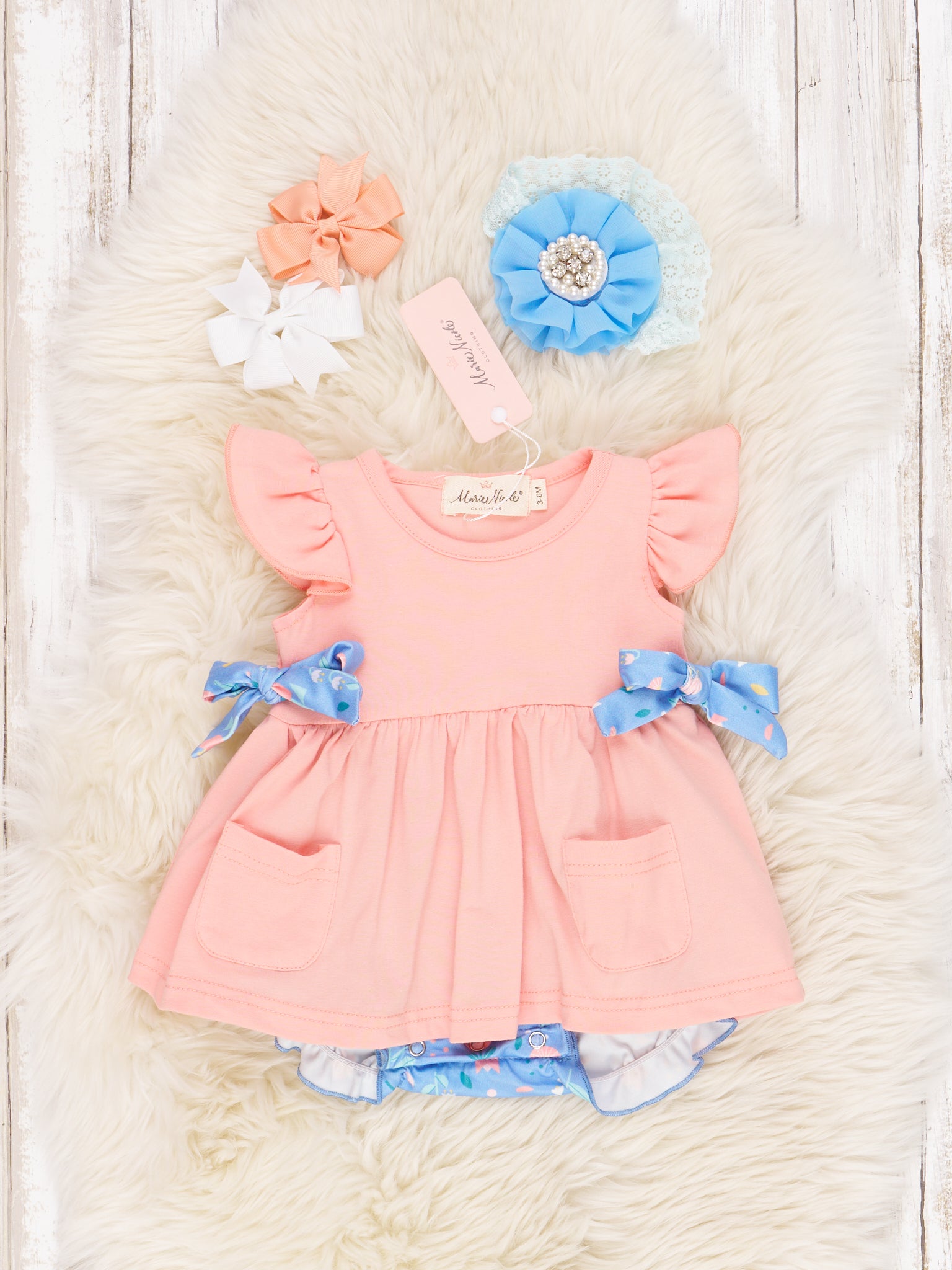 This peach-perfect sister set is peachy keen for any occasion! Whether they're playing in the garden or on a picnic, your mini fashionistas will love this floral ruffle bow ensemble with convenient functional pockets on top. Ruffles and frills make them feel extra special!
