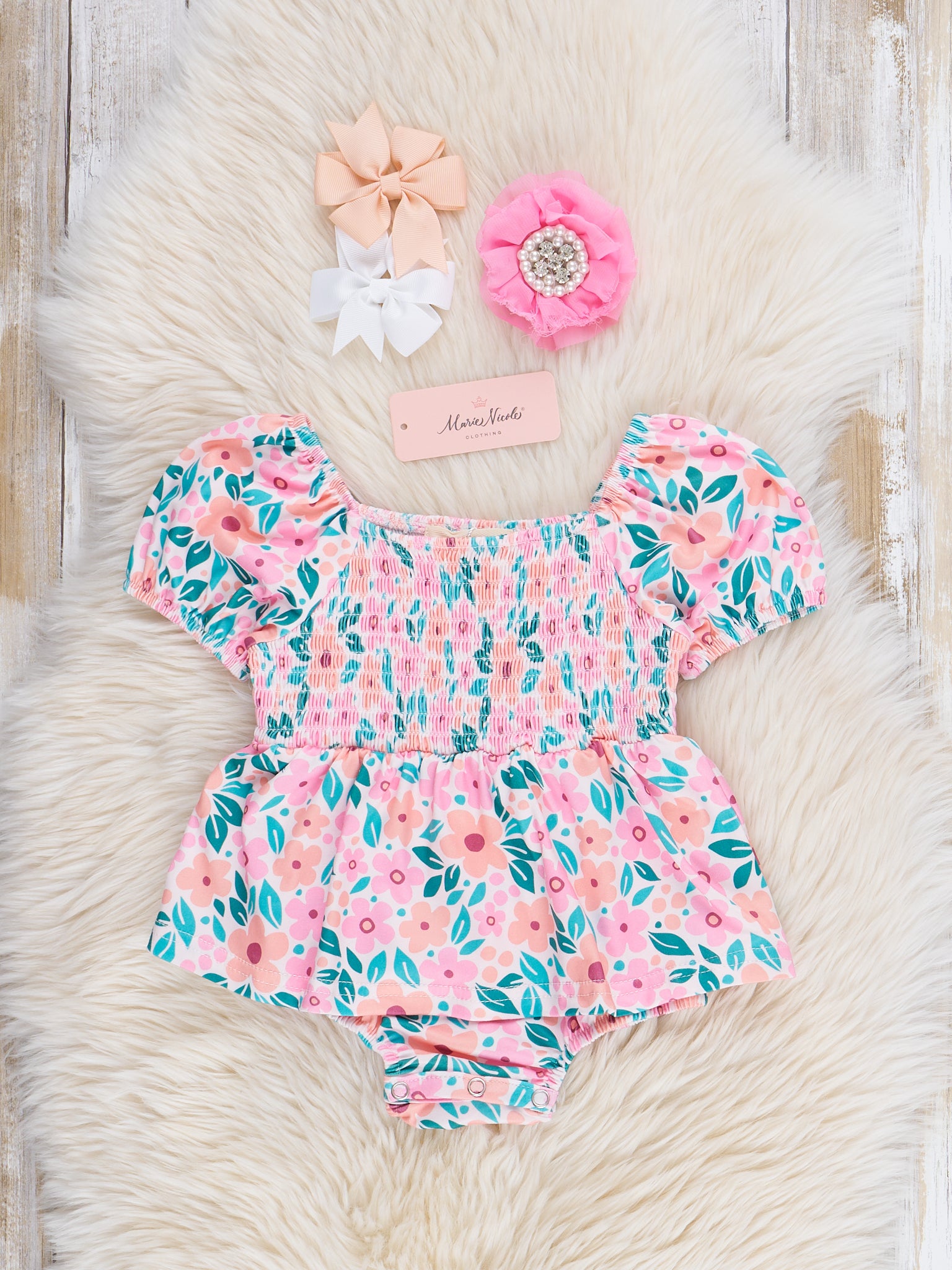 Peach & Pink Blooms Smocked Ruffle Bubble