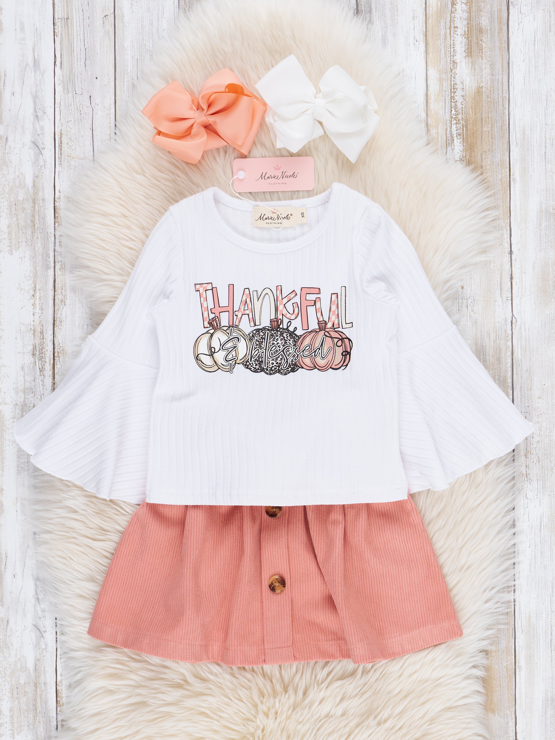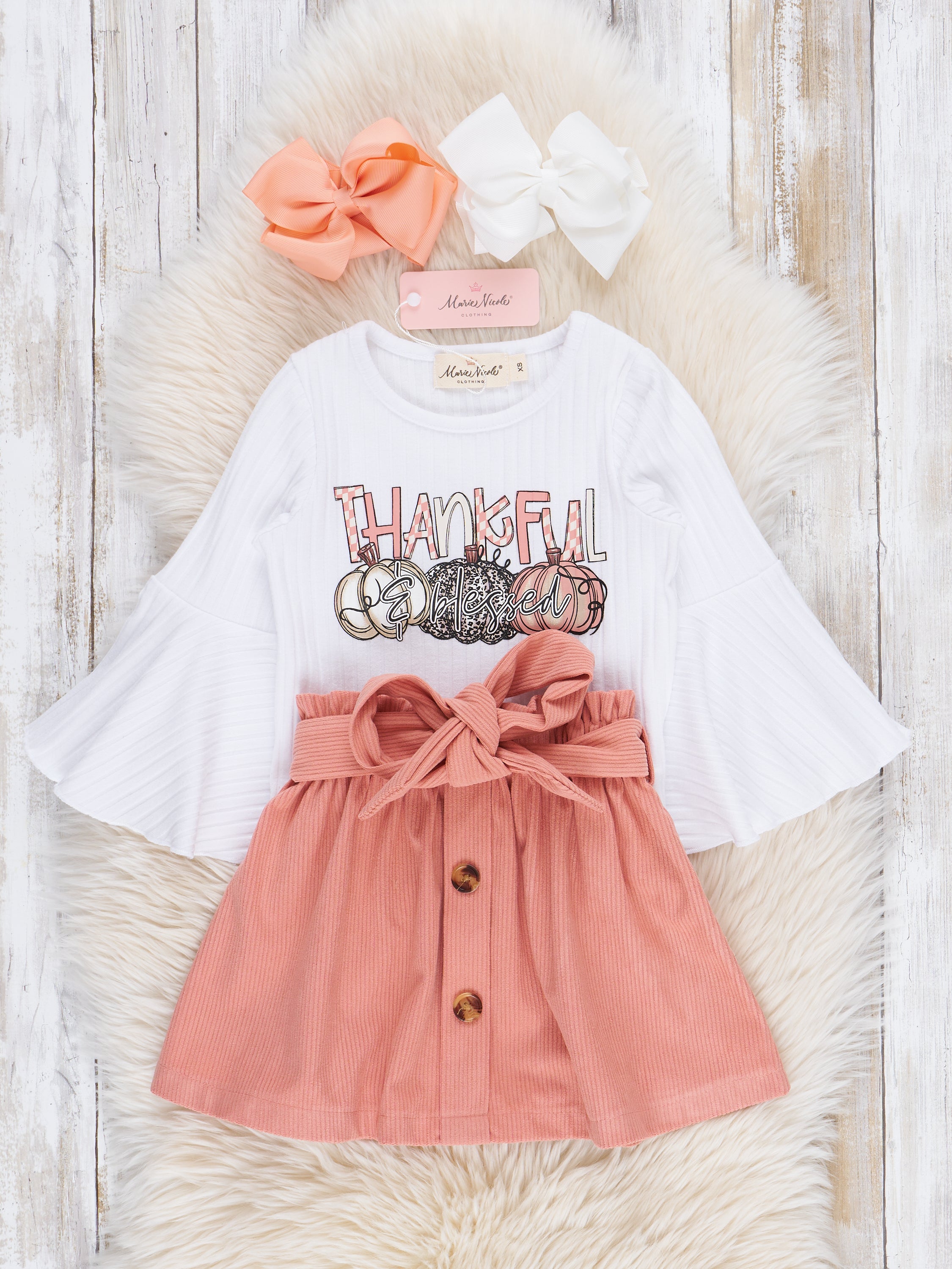 Peach Thankful Pumpkins Outfit w/ Corduroy Skirt
