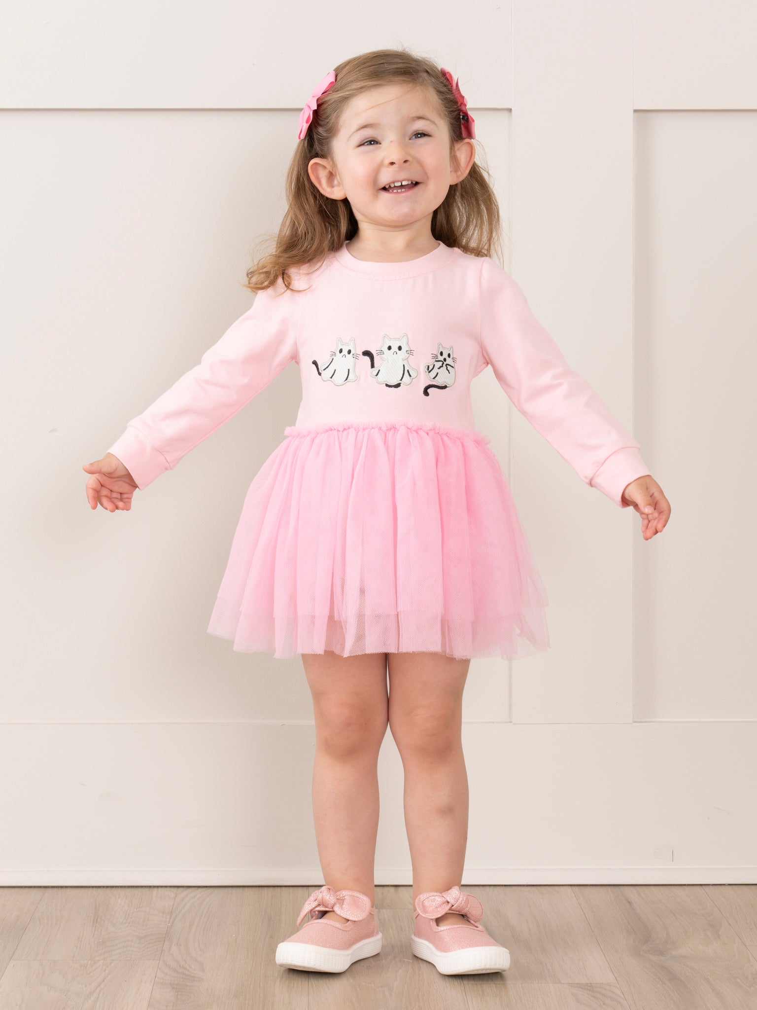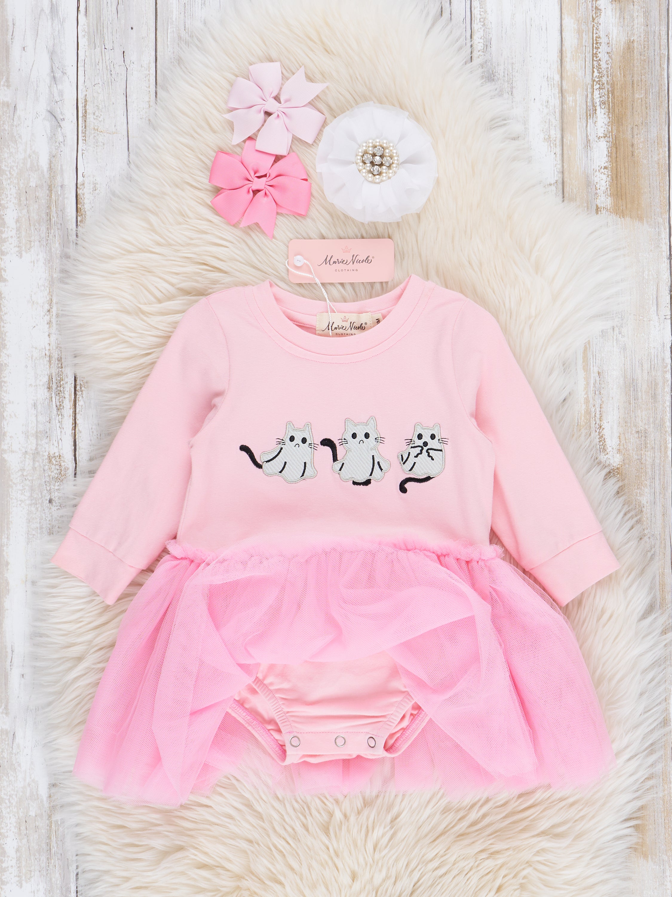 Get ready for cuteness overload with our Pink Embroidered Kitties Tulle Bubble! This girls' bubble features a playful tulle skirt and charming embroidered kitties for a fun and whimsical look. Perfect for your little one to twirl and play in style. Meow-velous!