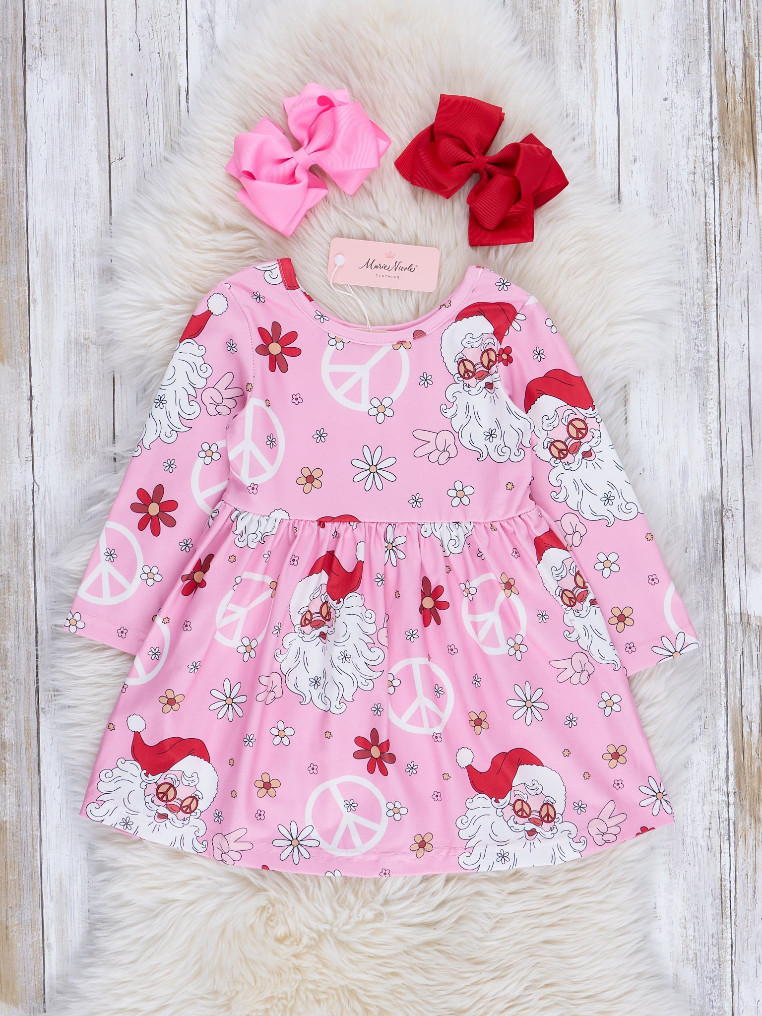 Everyone's favorite swing dress is back with the most adorable holiday print! Outfit your mini every day of the season with this comfy long-sleeved dress that cinches at the waist and has subtle pleats.