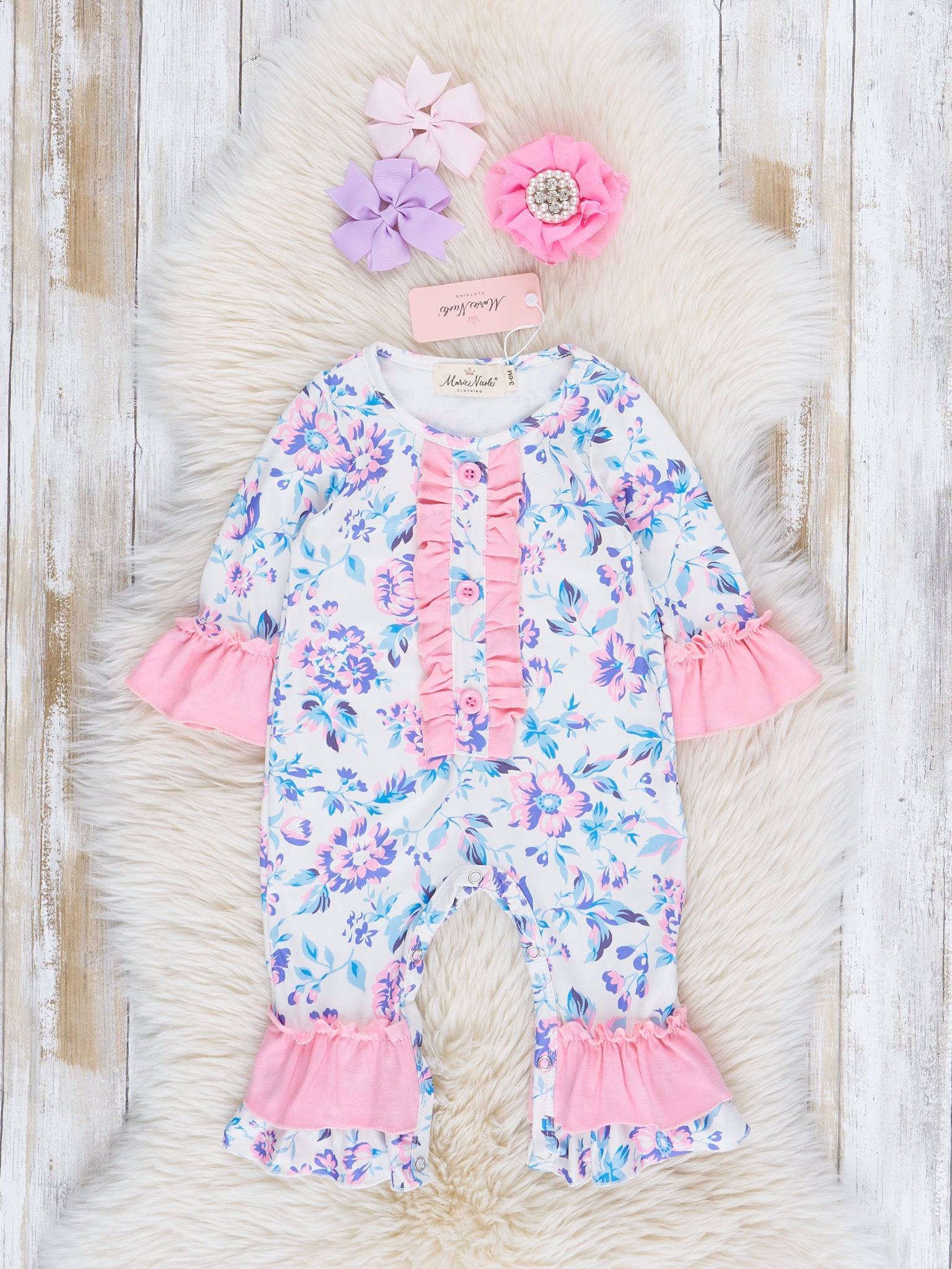 Pink & Purple Florals Ruffle Romper