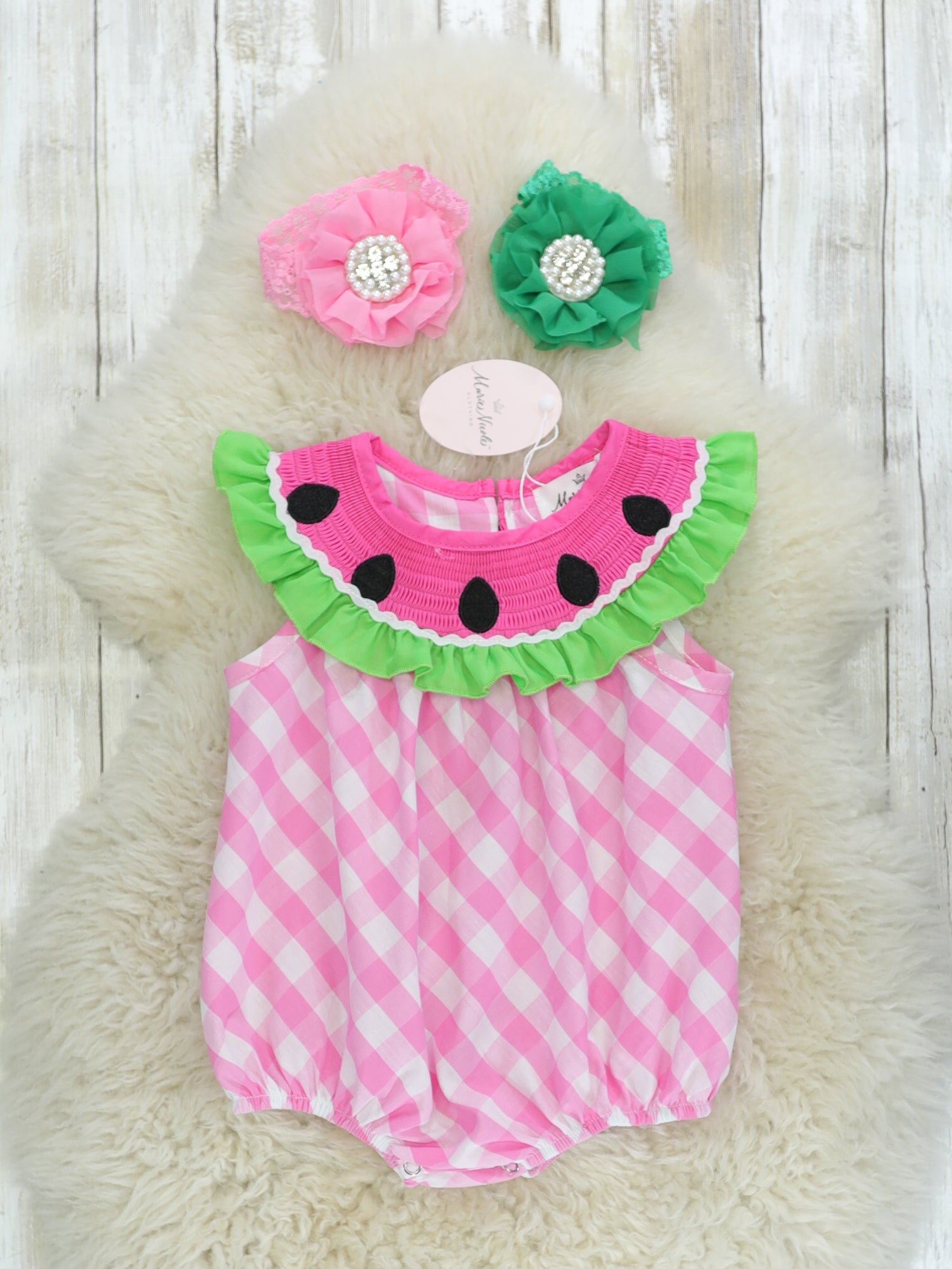 Pink Smocked Watermelon Ruffle Bubble