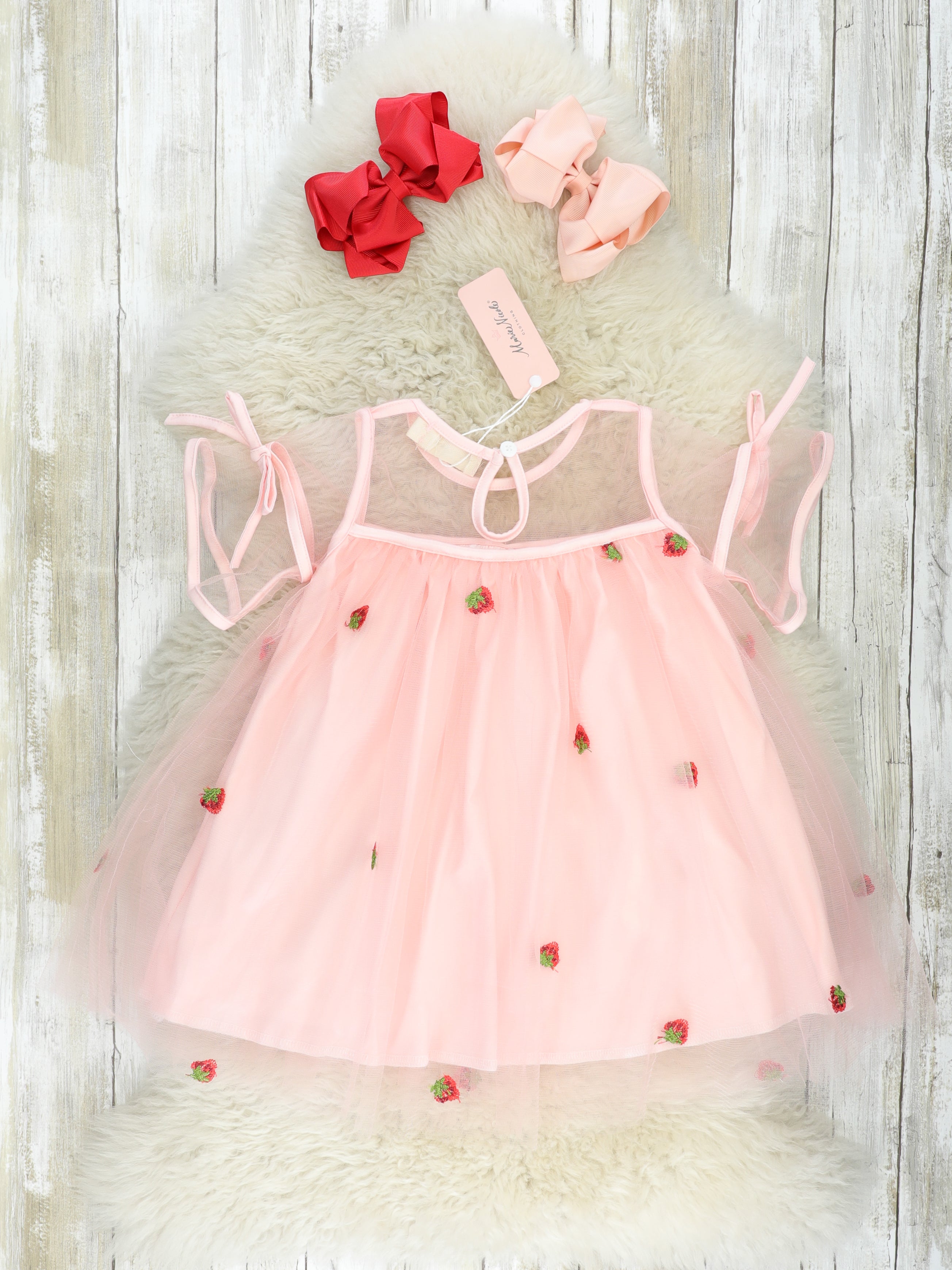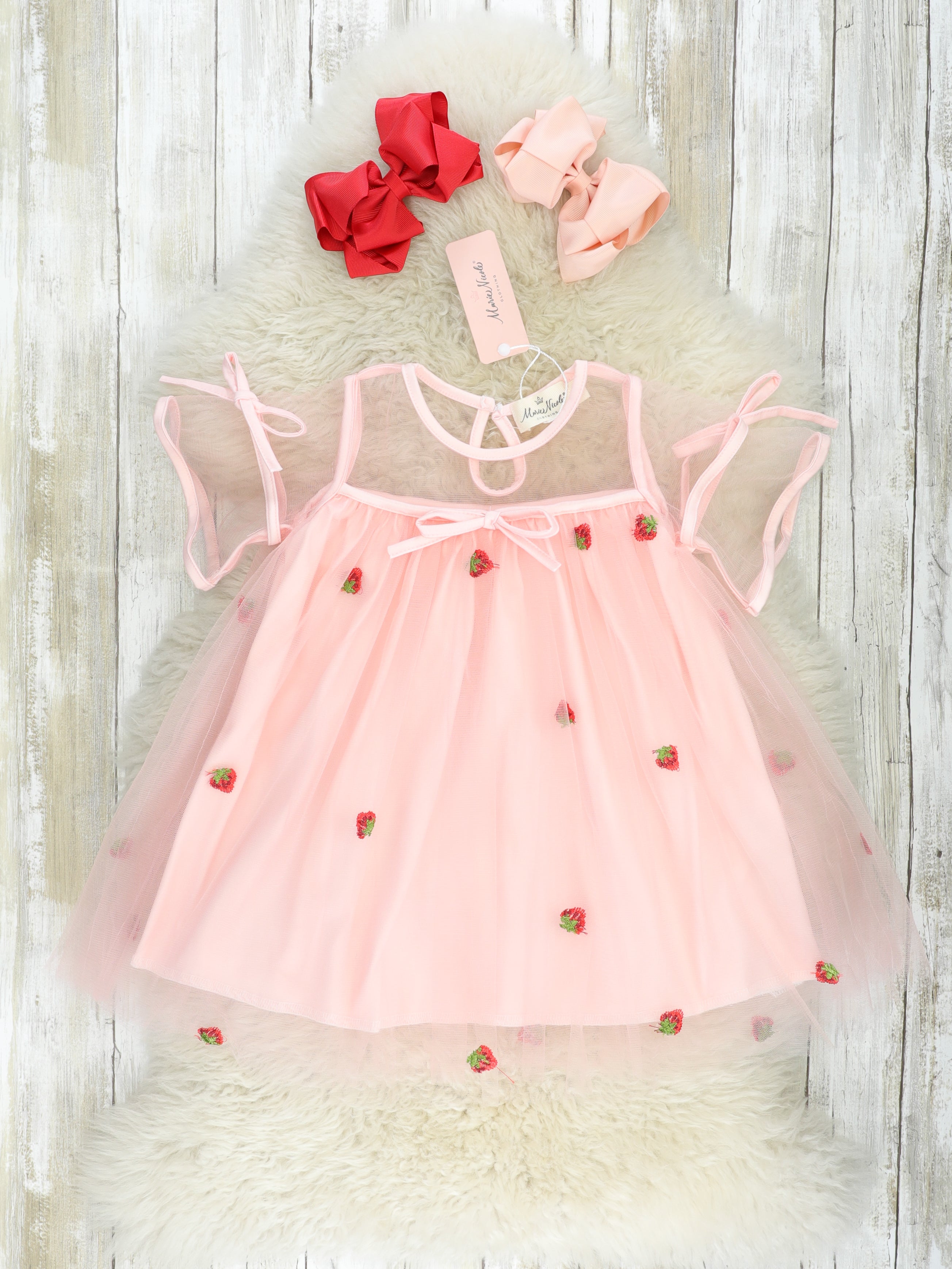 Your little one will be ready for a garden tea party in the Pink Tulle Strawberry Dress! Crafted with love in a sweet pink hue, this adorable dress features eye-catching strawberry and delicate tulle details. Perfect for your fashionista's big debut – she'll look simply berry-licious!