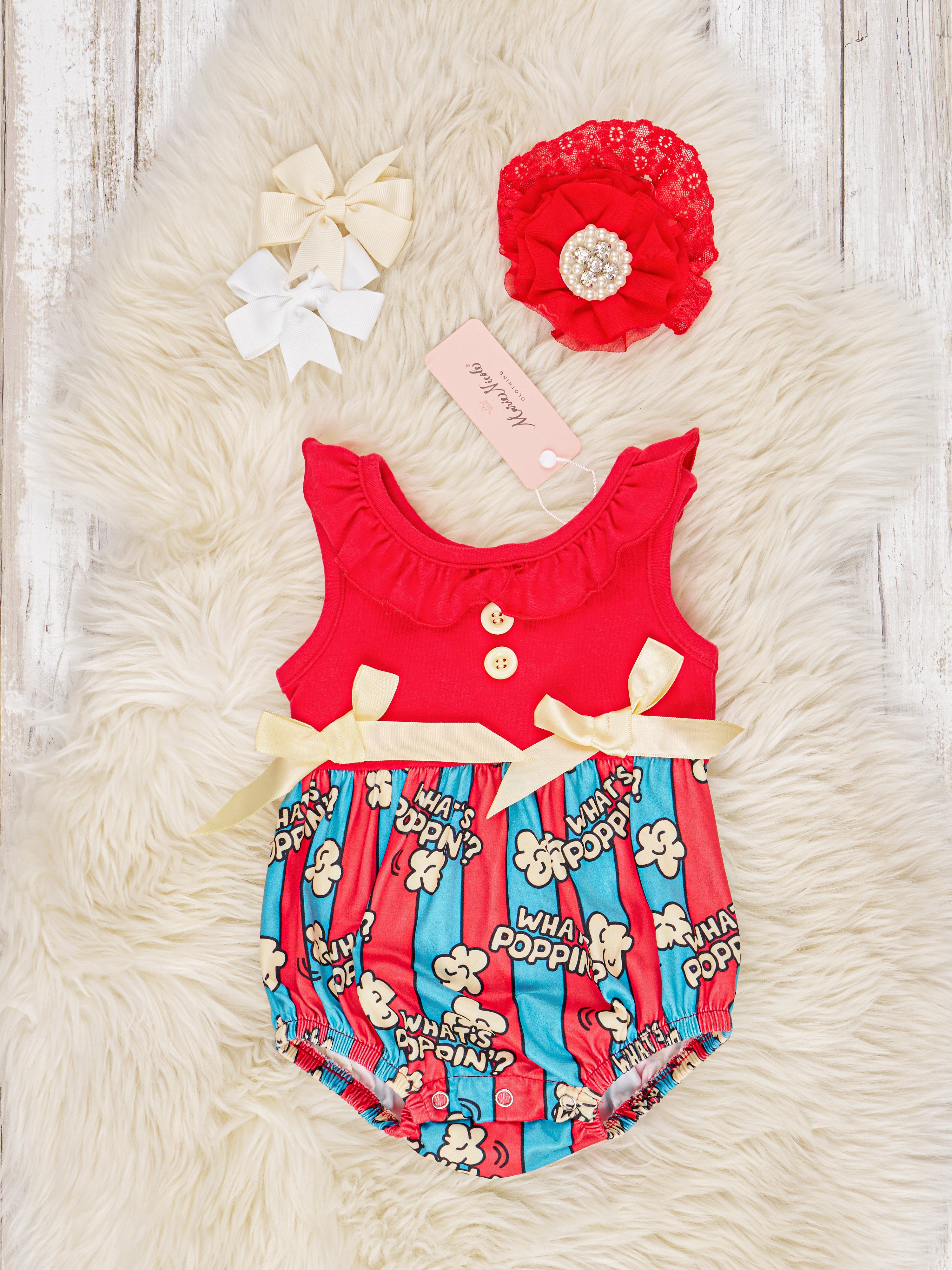 Make sure both your little princesses are dressed to impress with this sister set! The Popcorn Ruffle Bubble features a cheerful "what's poppin" popcorn print, sassy bow details, and fluttery ruffles - sure to make any day poppin'!