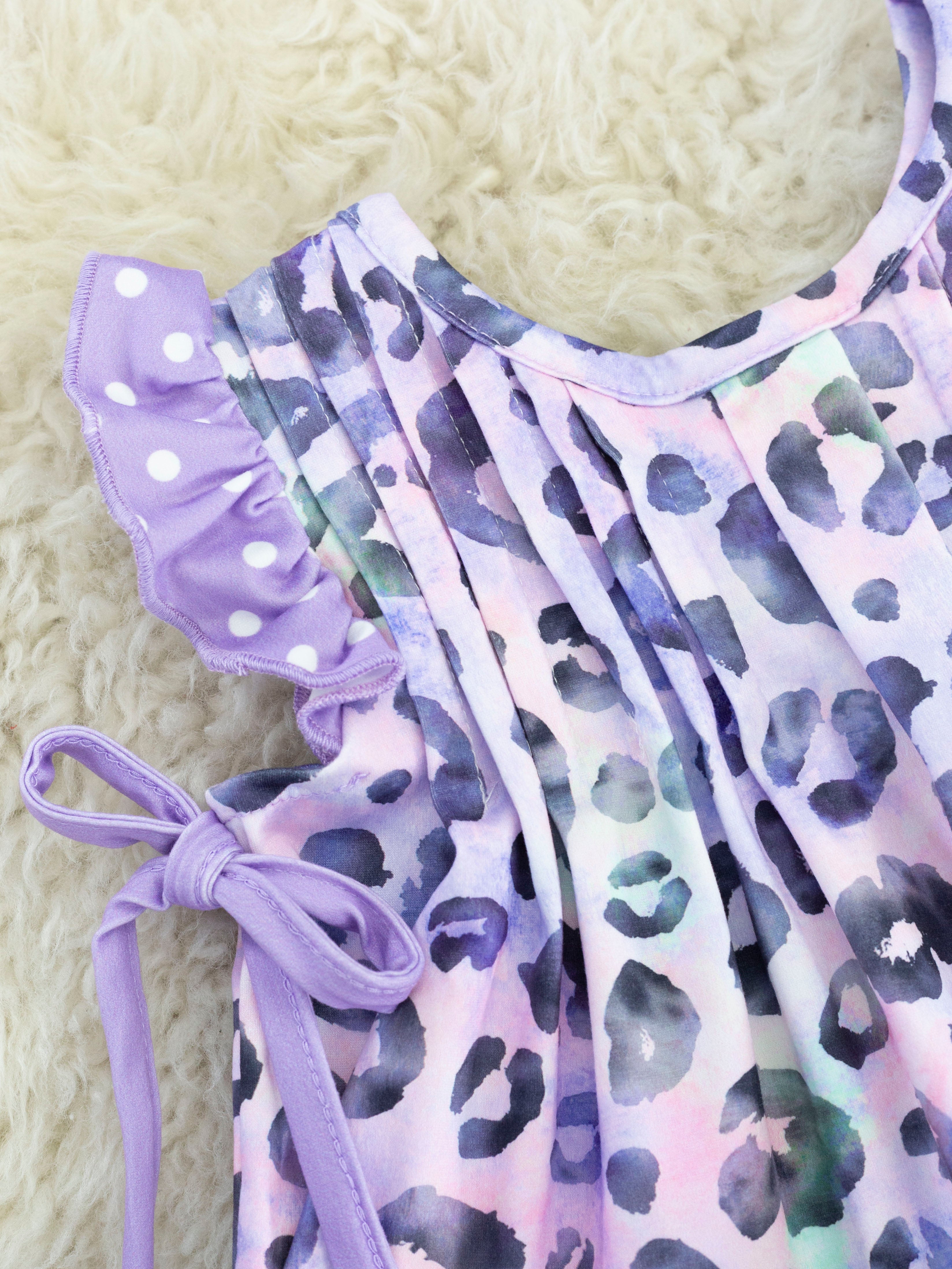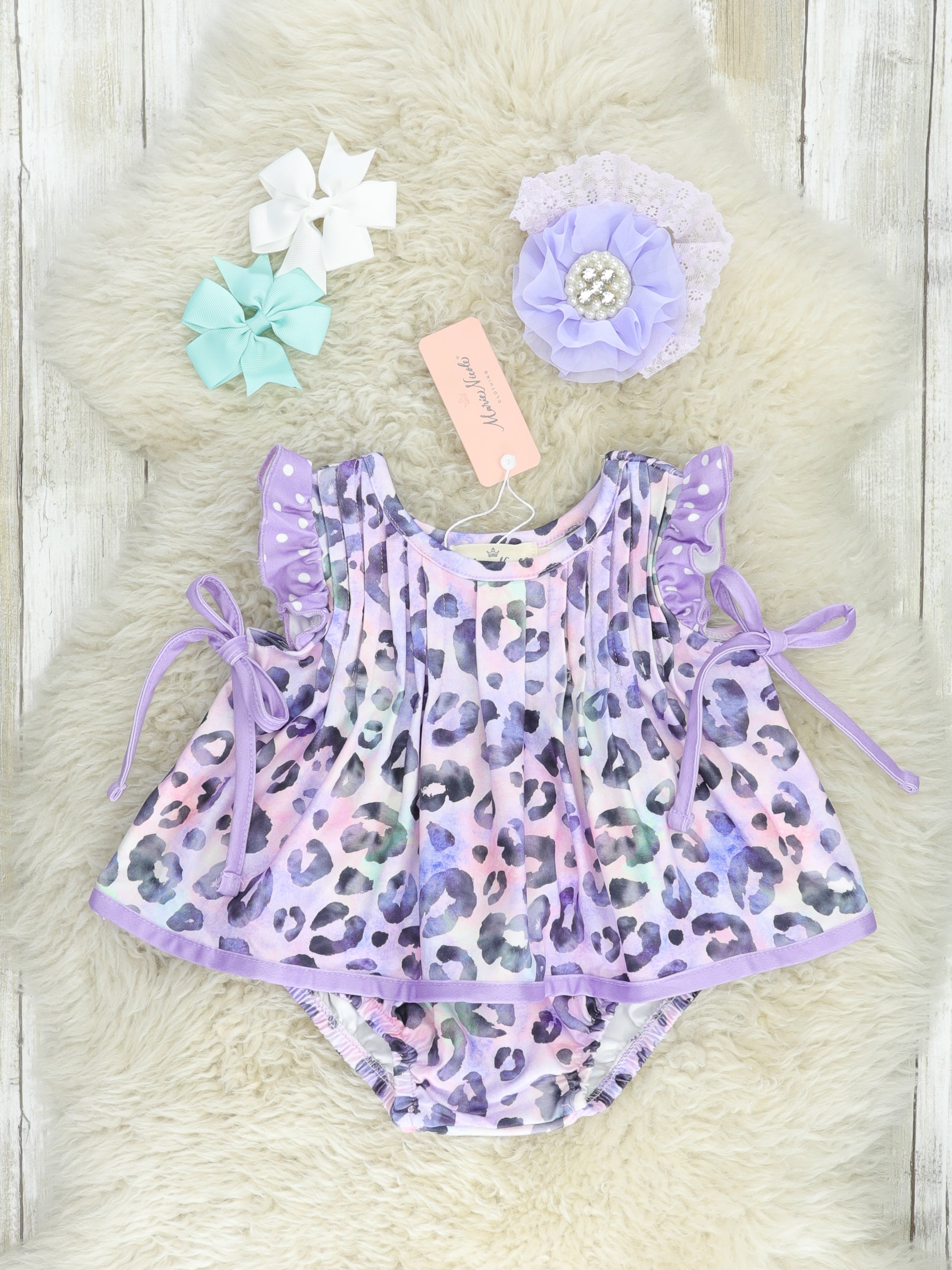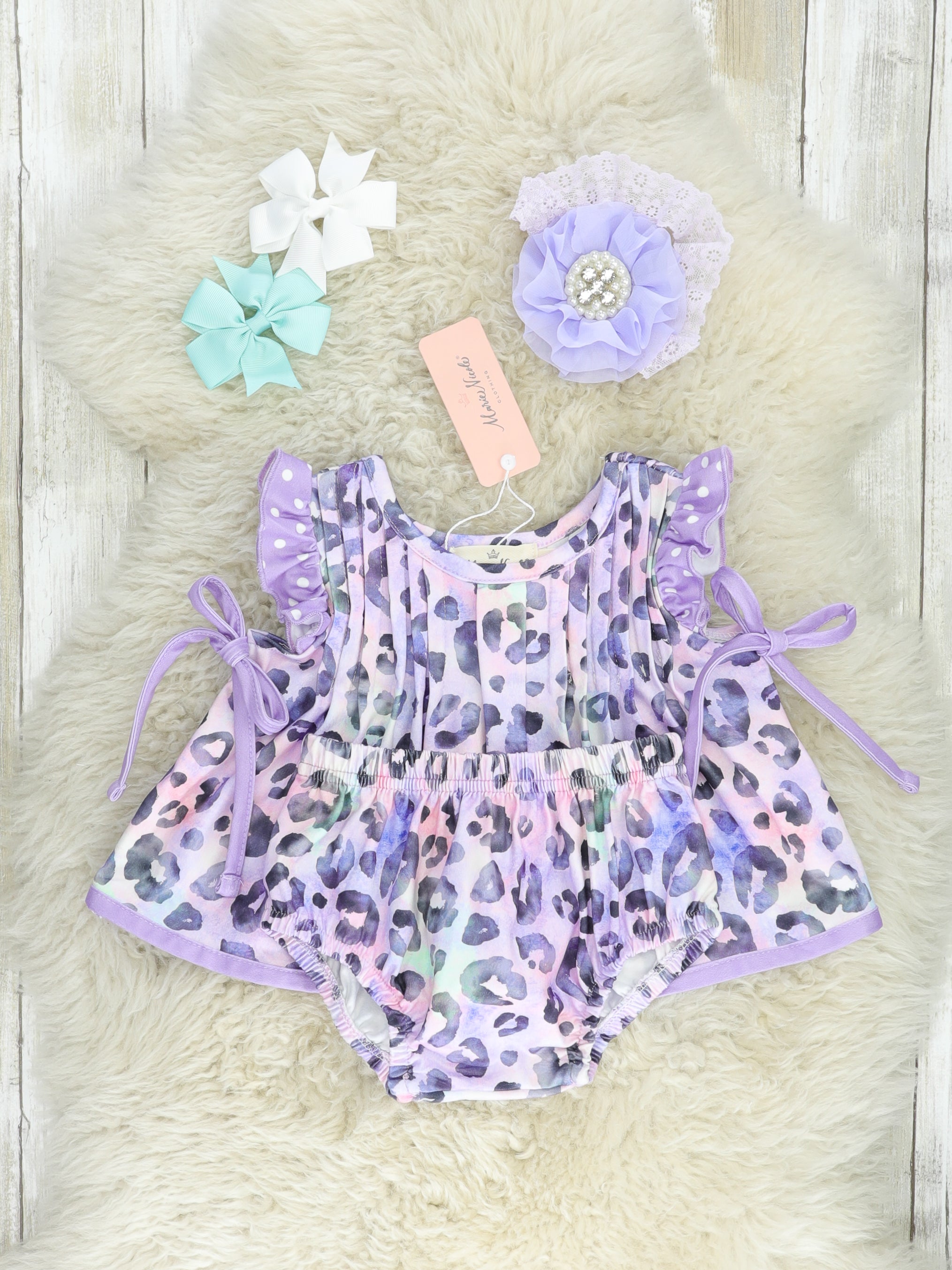 Purple Leopard Flutter Sleeve Bloomers Outfit