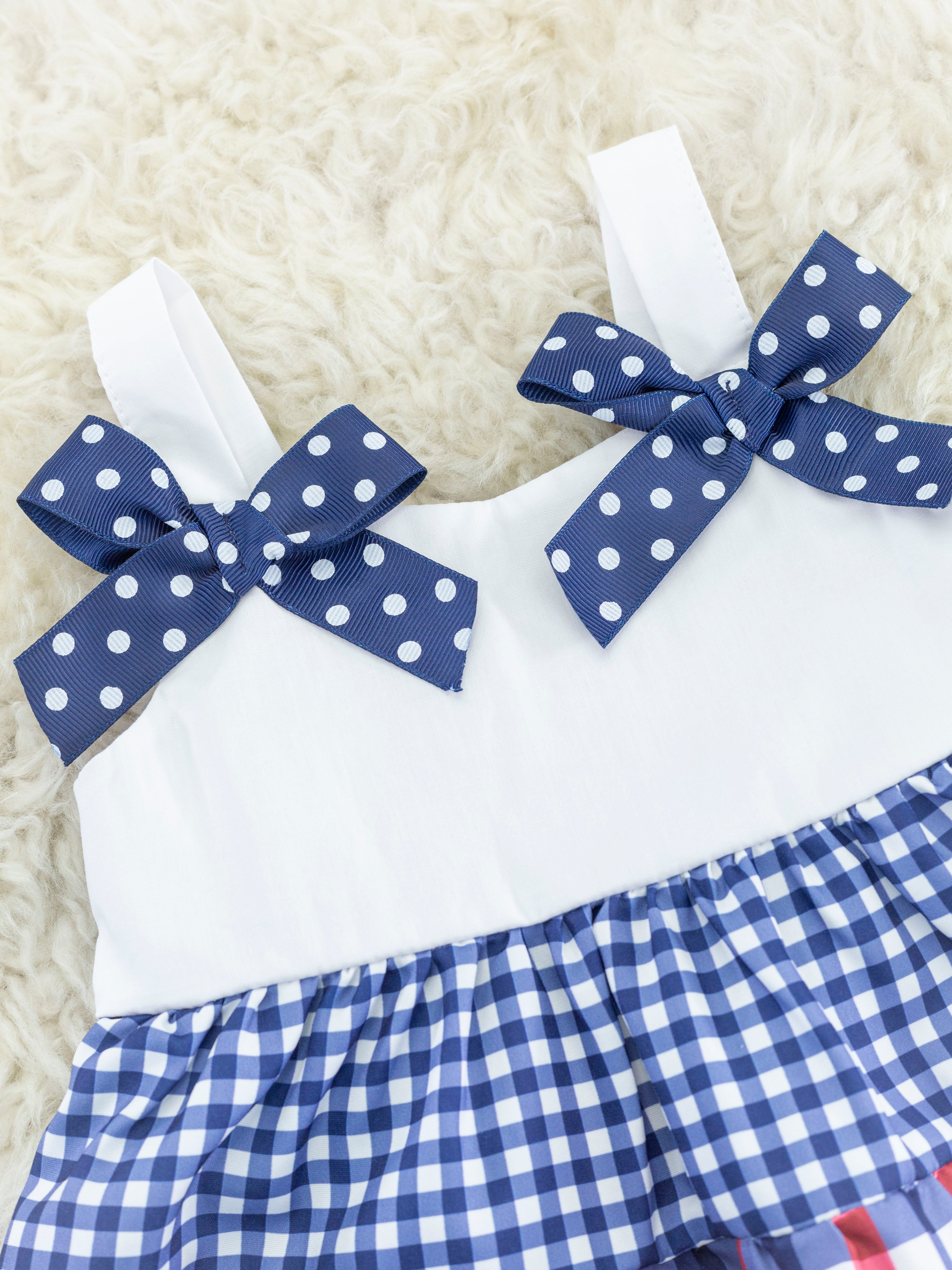 This sister set is the perfect pick for your little ones! Put 'em in red & blue gingham and set 'em loose for a day of stylish fun. Featuring polka dot bows that are sure to catch some eyes! Put your little ones in this outfit and have 'em twirlin' in style.