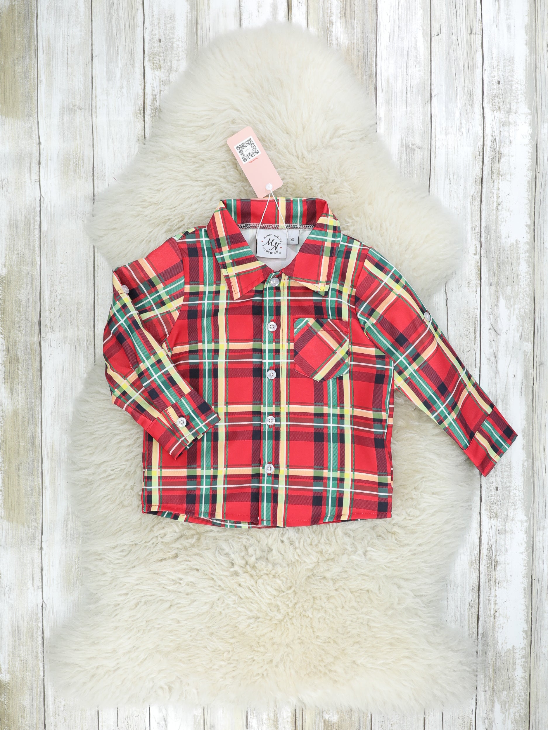 A beautiful sibling set for any occasion this season! This shirt features plaid, functioning buttons, & a patch pocket.