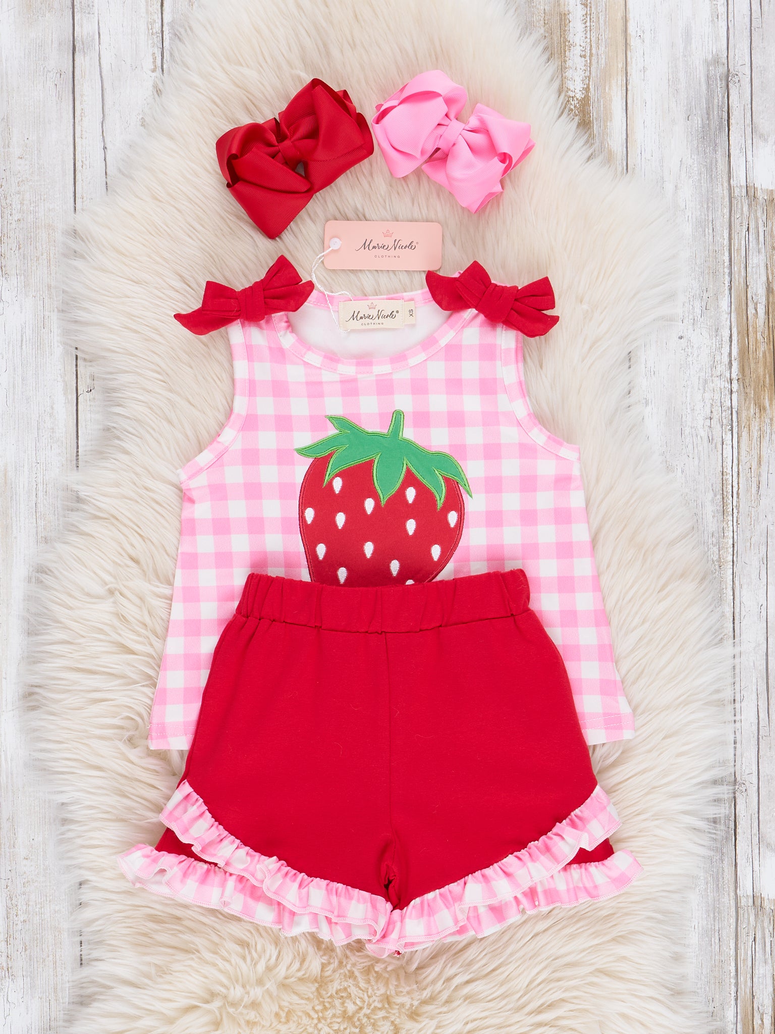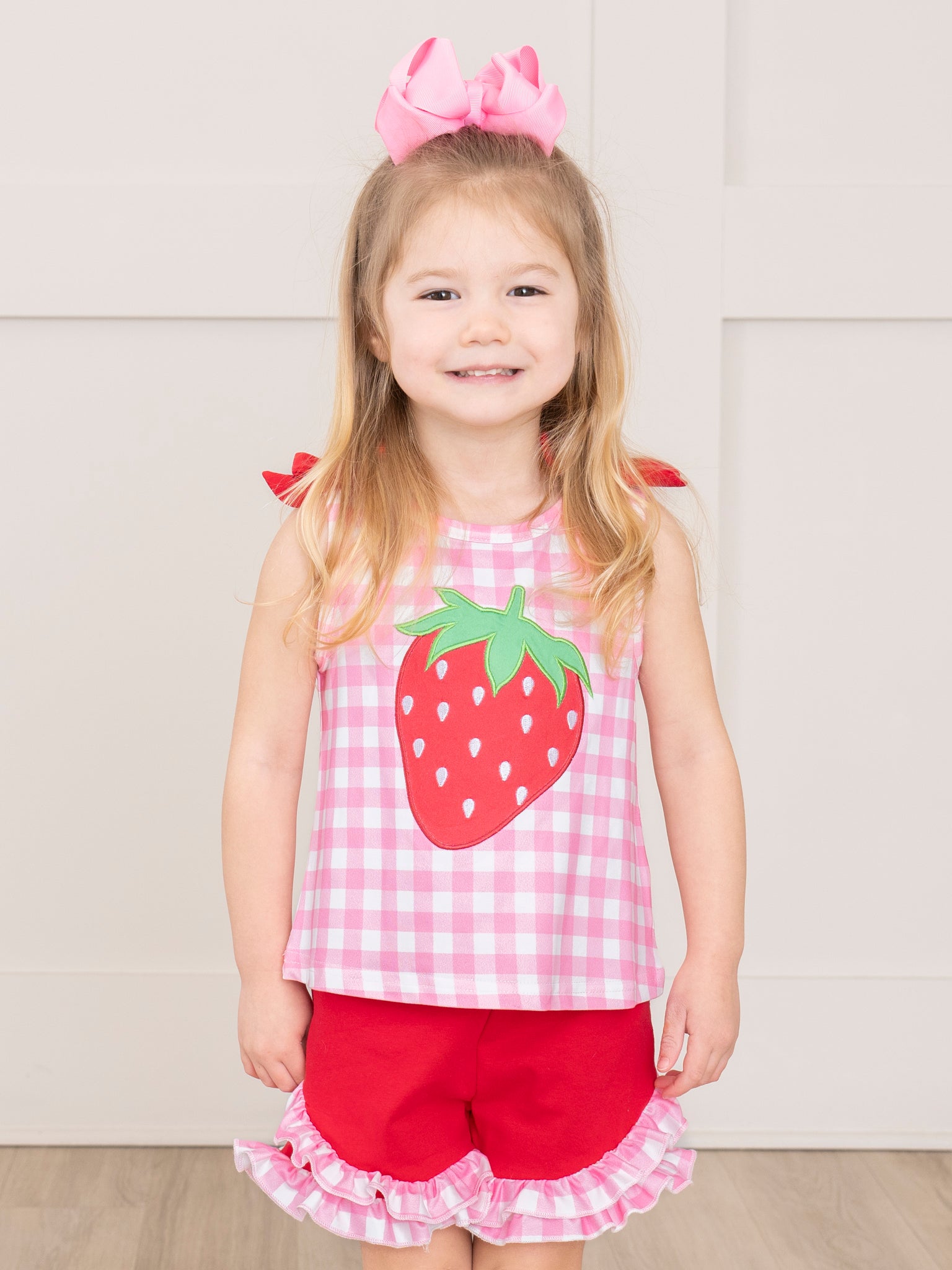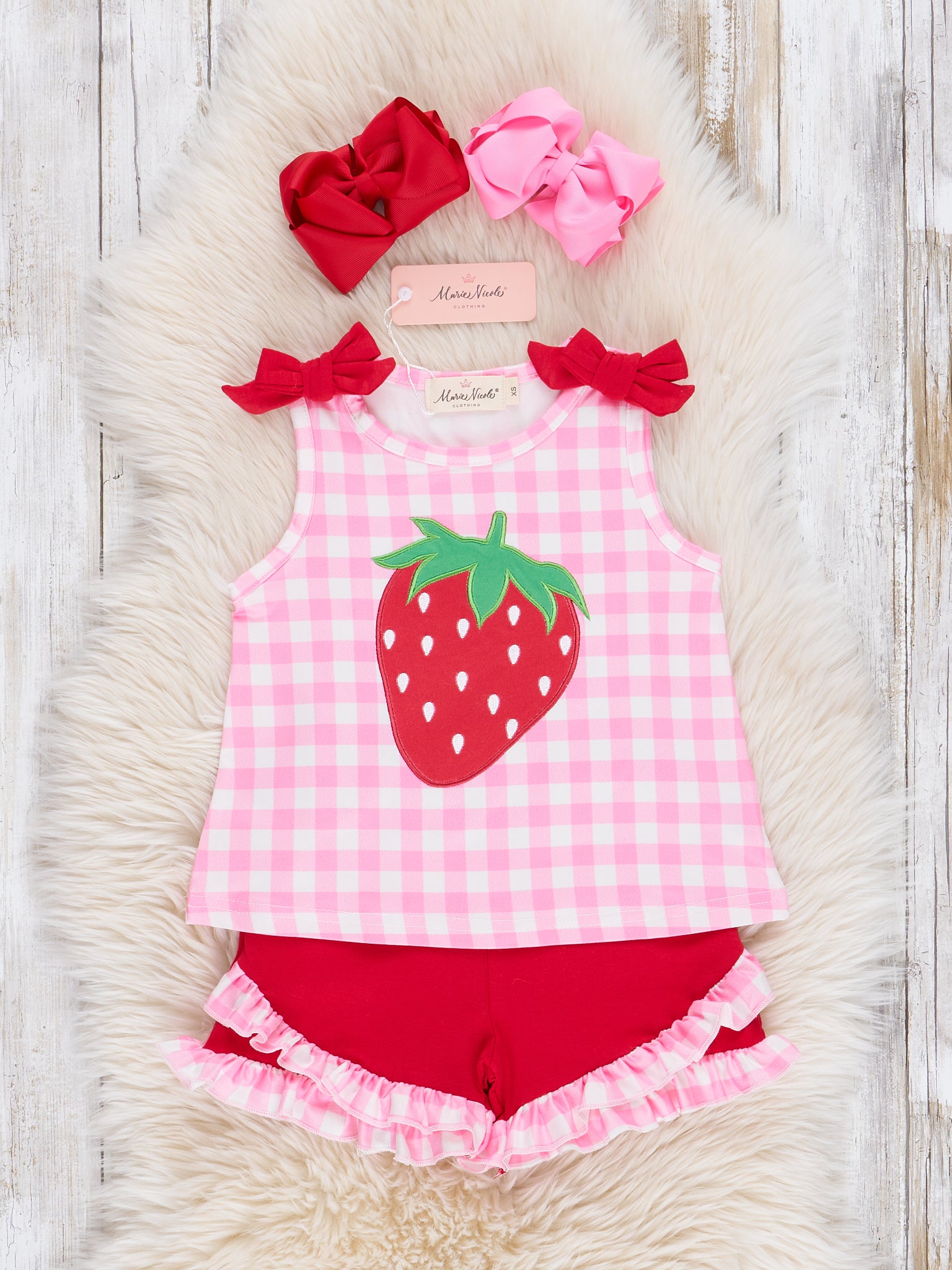Red & Pink Gingham Strawberry Outfit w/ Skort