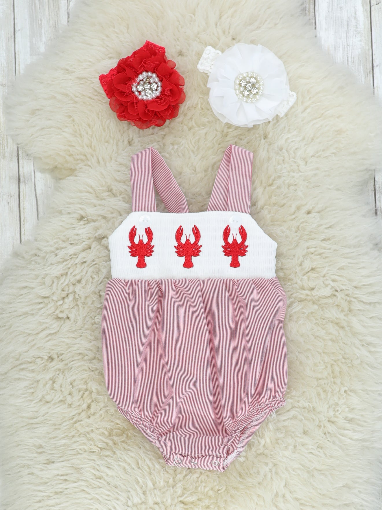 Red Pinstriped Lobster Smocked Bubble