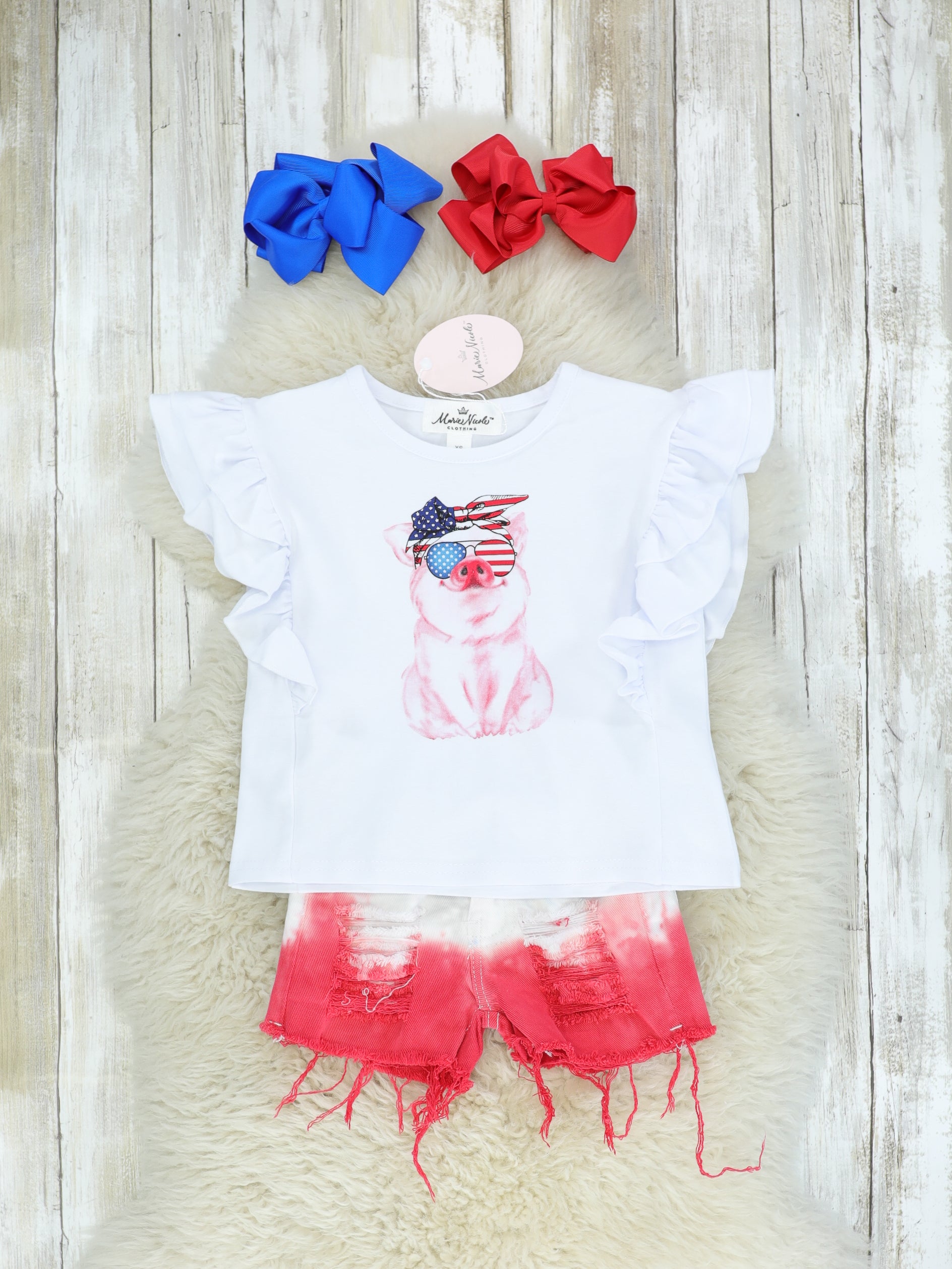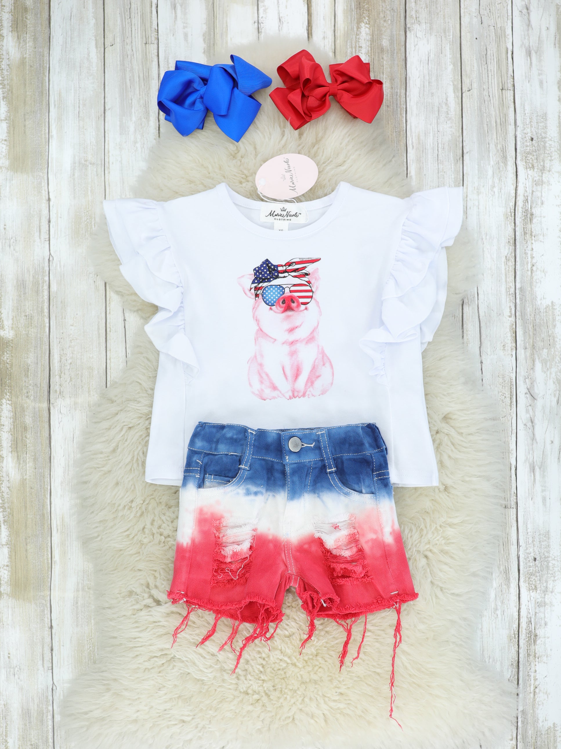 Red, White, & Blue Pig Top & Ombre Shorts Outfit