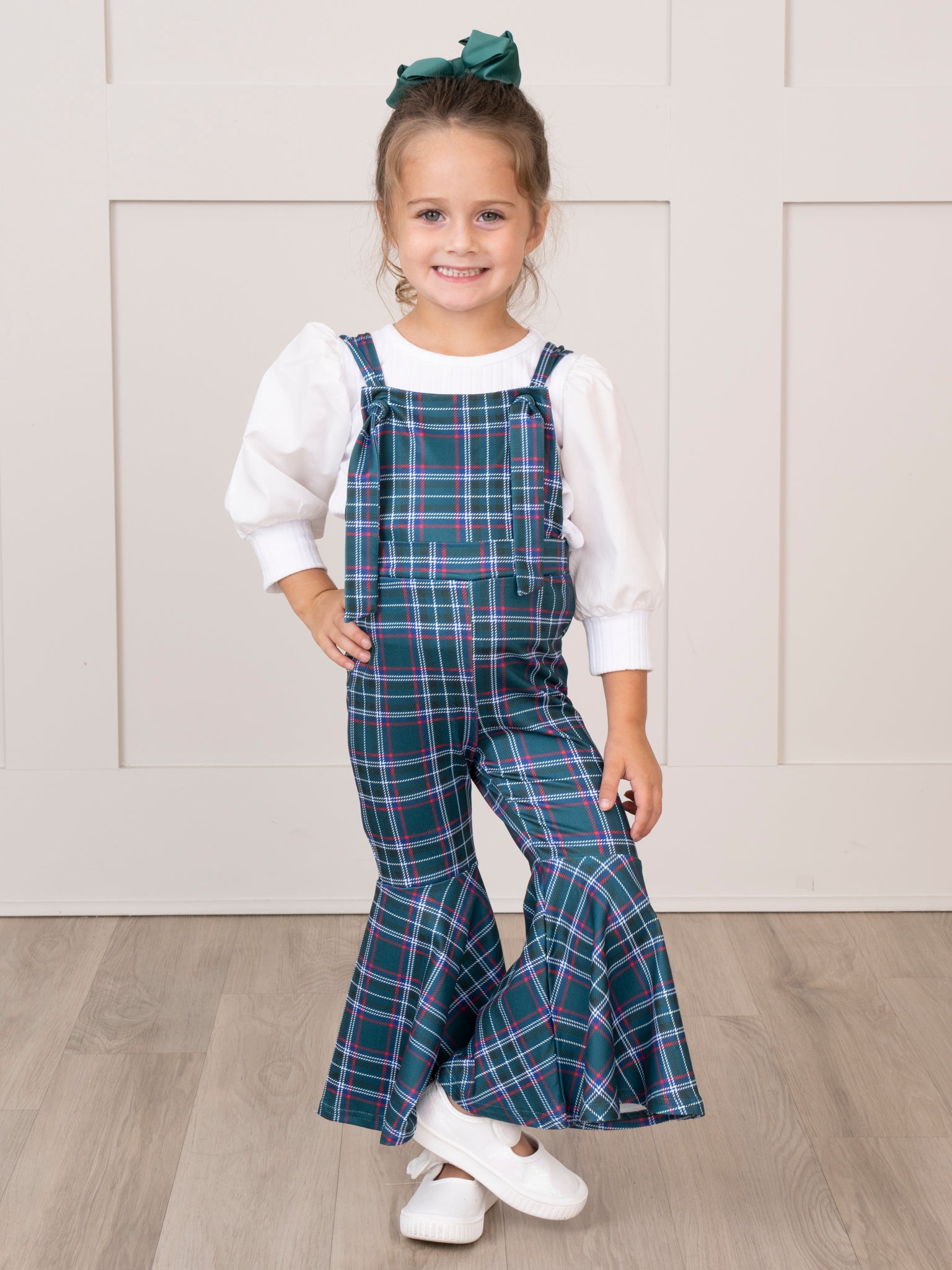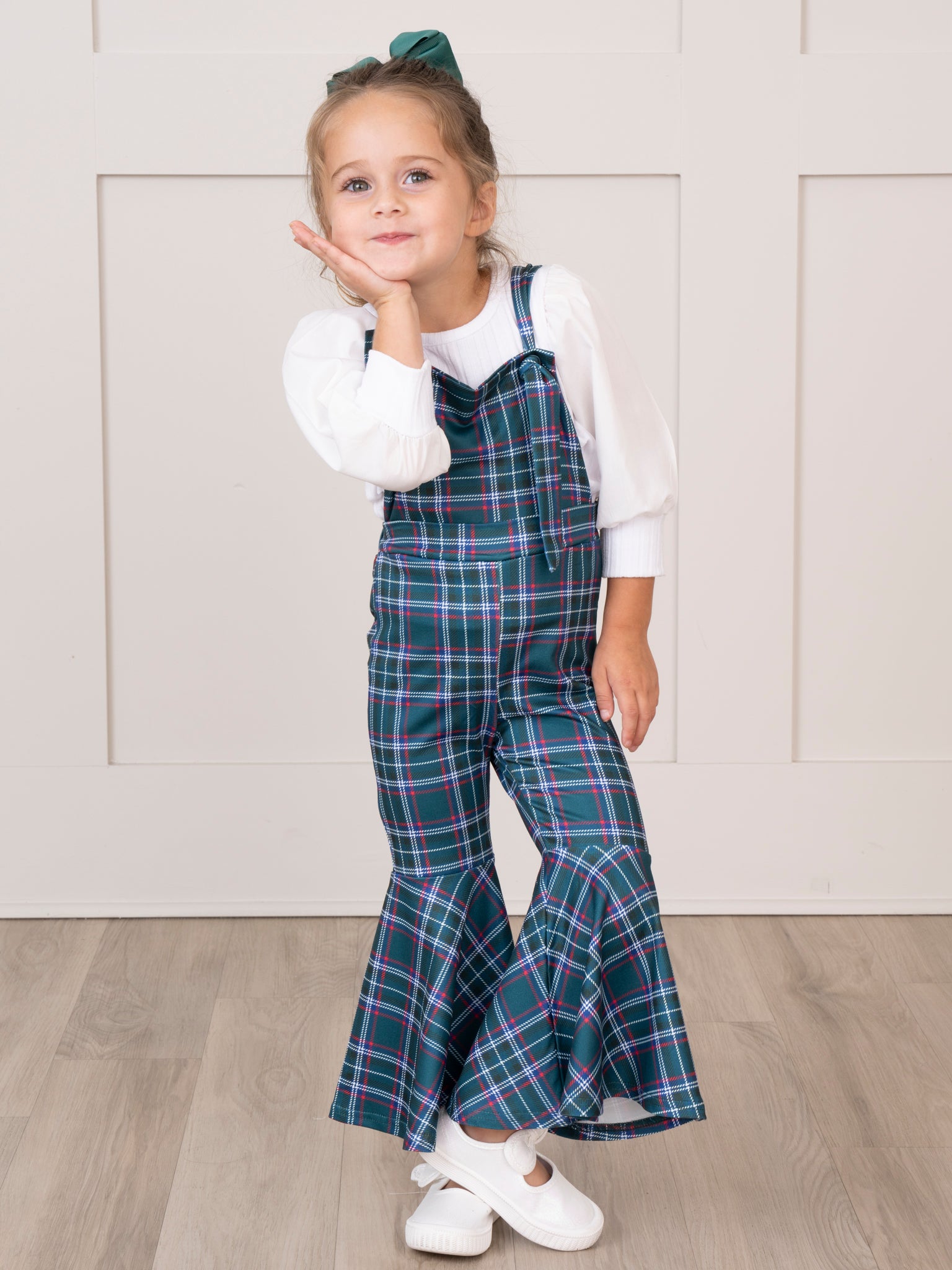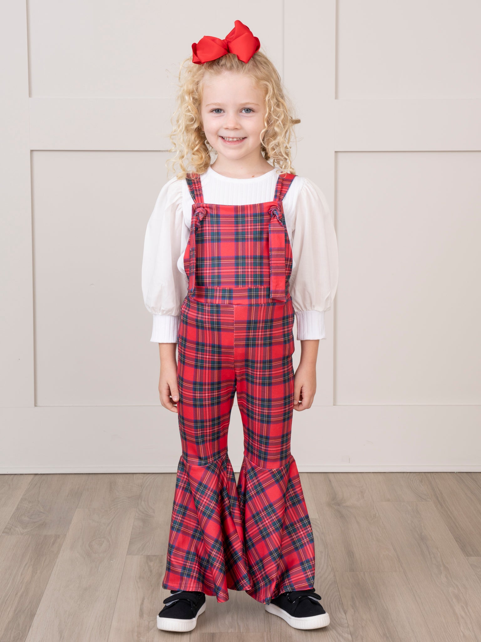 This Ribbed Puff Sleeves Bell Bottom Outfit mixes classic and modern style elements into a holiday-ready look. The white ribbed puff sleeves top and festive plaid bell bottom overalls make this the perfect outfit for a Christmas party! Get ready to rock around the (Christmas) tree in this stylish ensemble.