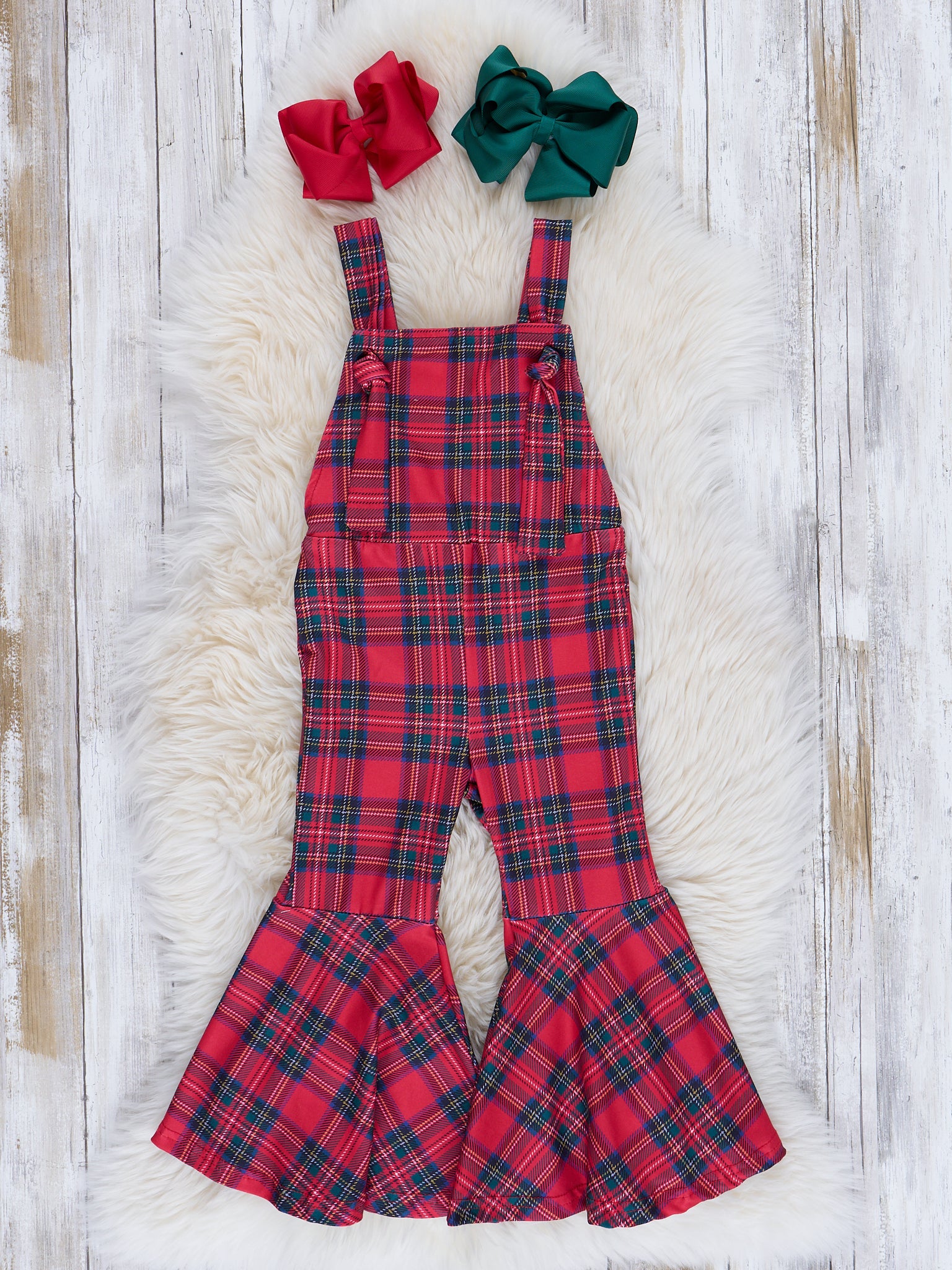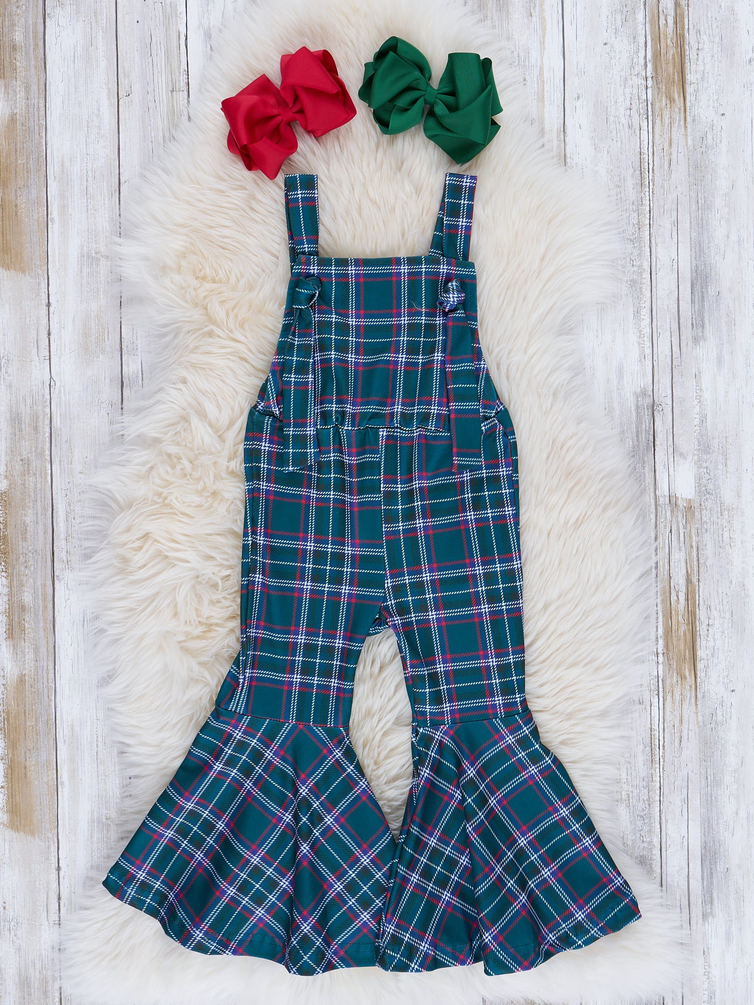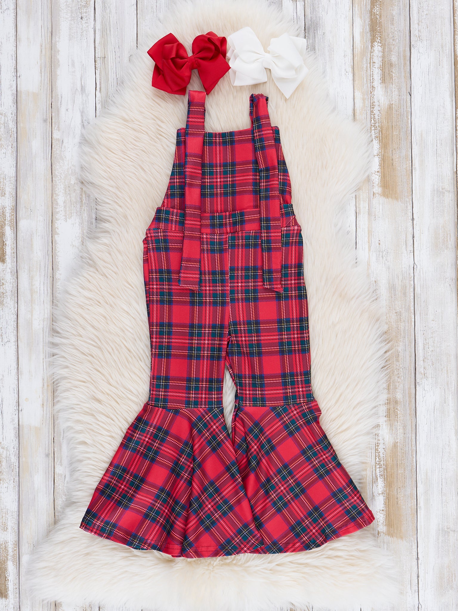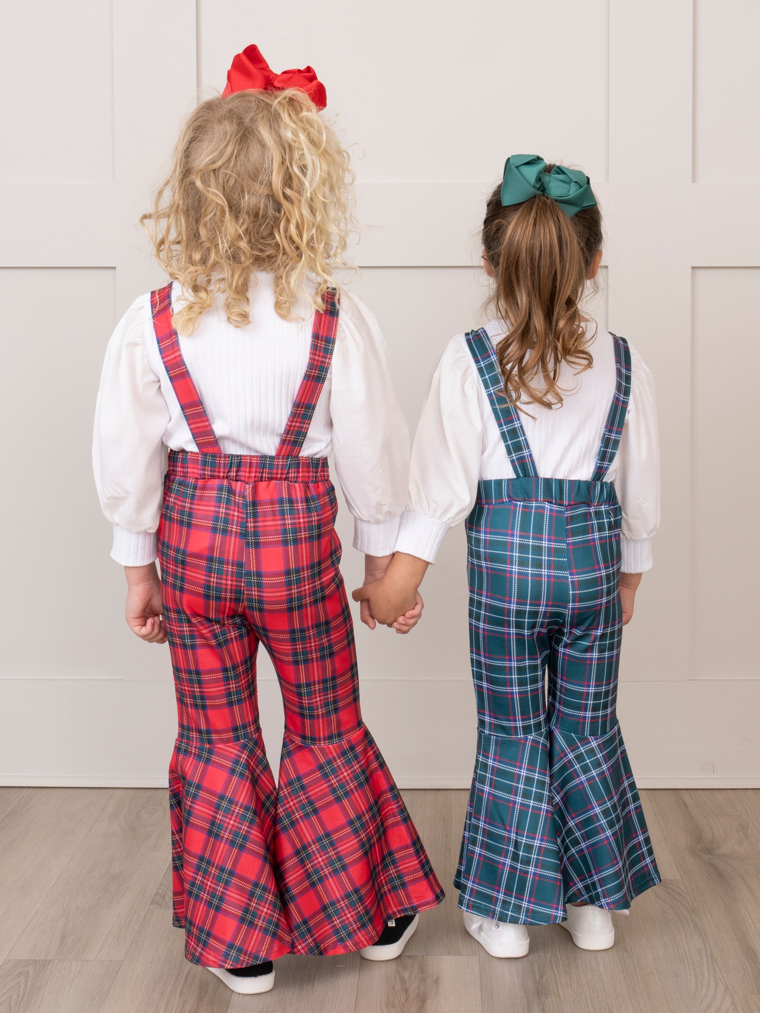 This Ribbed Puff Sleeves Bell Bottom Outfit mixes classic and modern style elements into a holiday-ready look. The white ribbed puff sleeves top and festive plaid bell bottom overalls make this the perfect outfit for a Christmas party! Get ready to rock around the (Christmas) tree in this stylish ensemble.