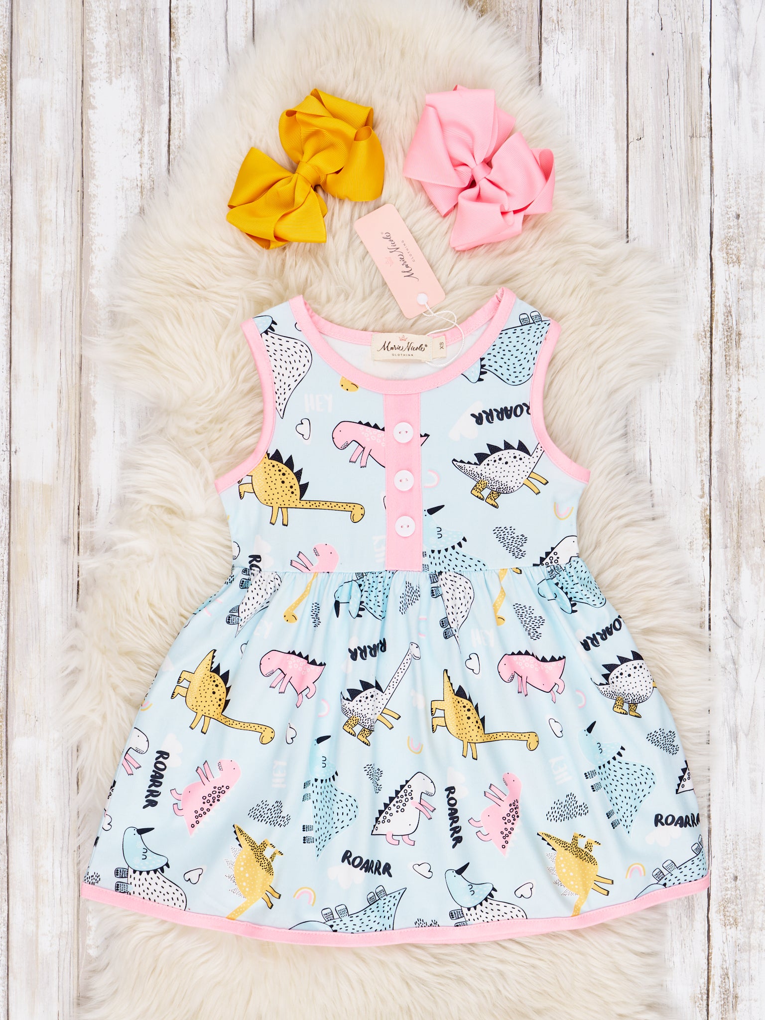 Let your little one dig up the perfect ensemble for any occasion with this ROARRR Dino Tank Dress! It's perfect for parties, play dates, trips to the park, or anything your little dino lover wants to do! Featuring a dino print, a fun "ROARRR!!" detail with pink trim, and comfortable tank dress fit, they'll be ready to roar in style!