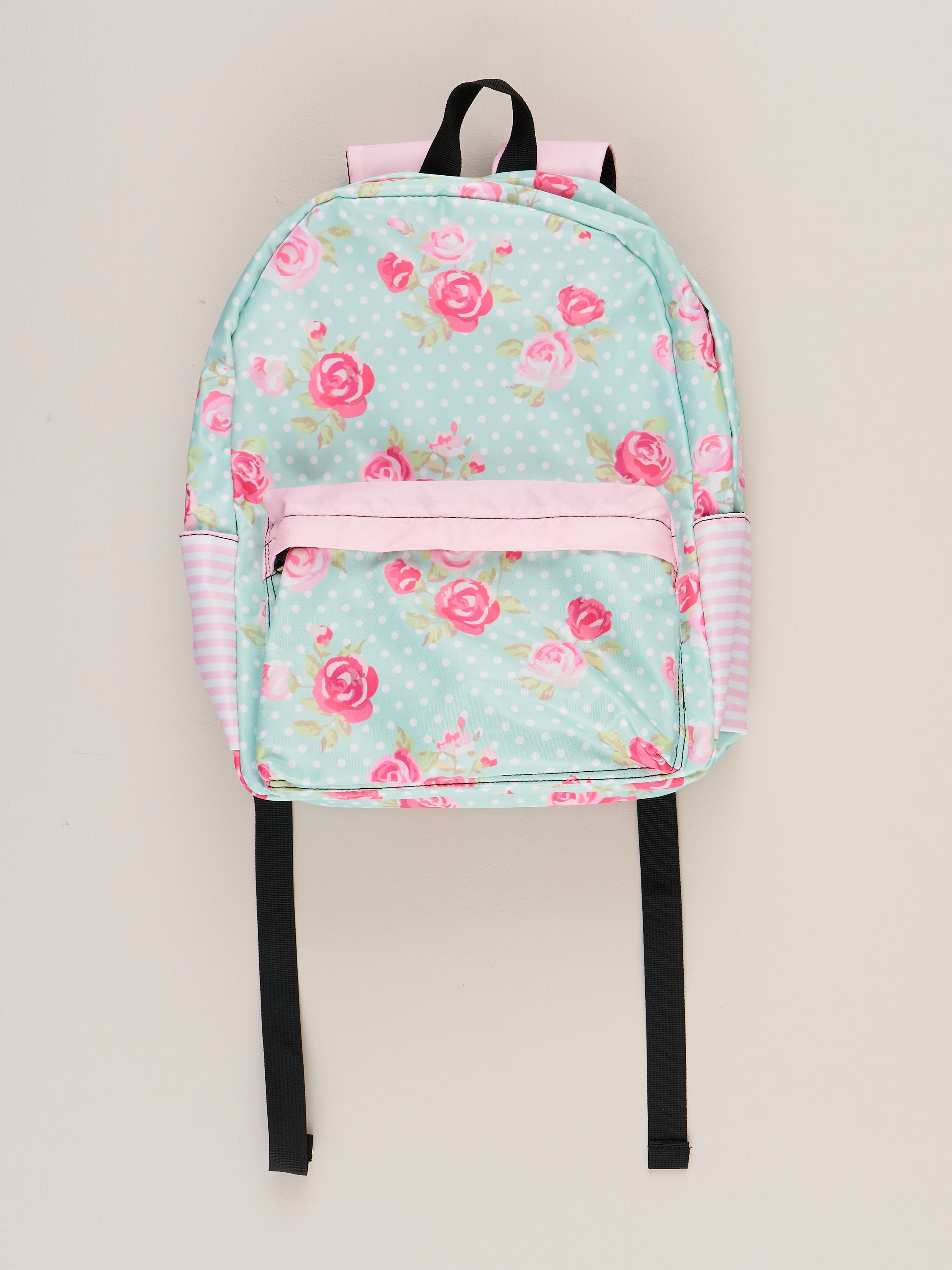 Get ready to bloom with the Rose Garden Backpack! Perfect for back-to-school, this playful girls backpack features a vibrant pink rose design on a teal polka dot background. Stay organized with convenient striped side pockets. Don't be a wallflower, stand out with this quirky and fun backpack.