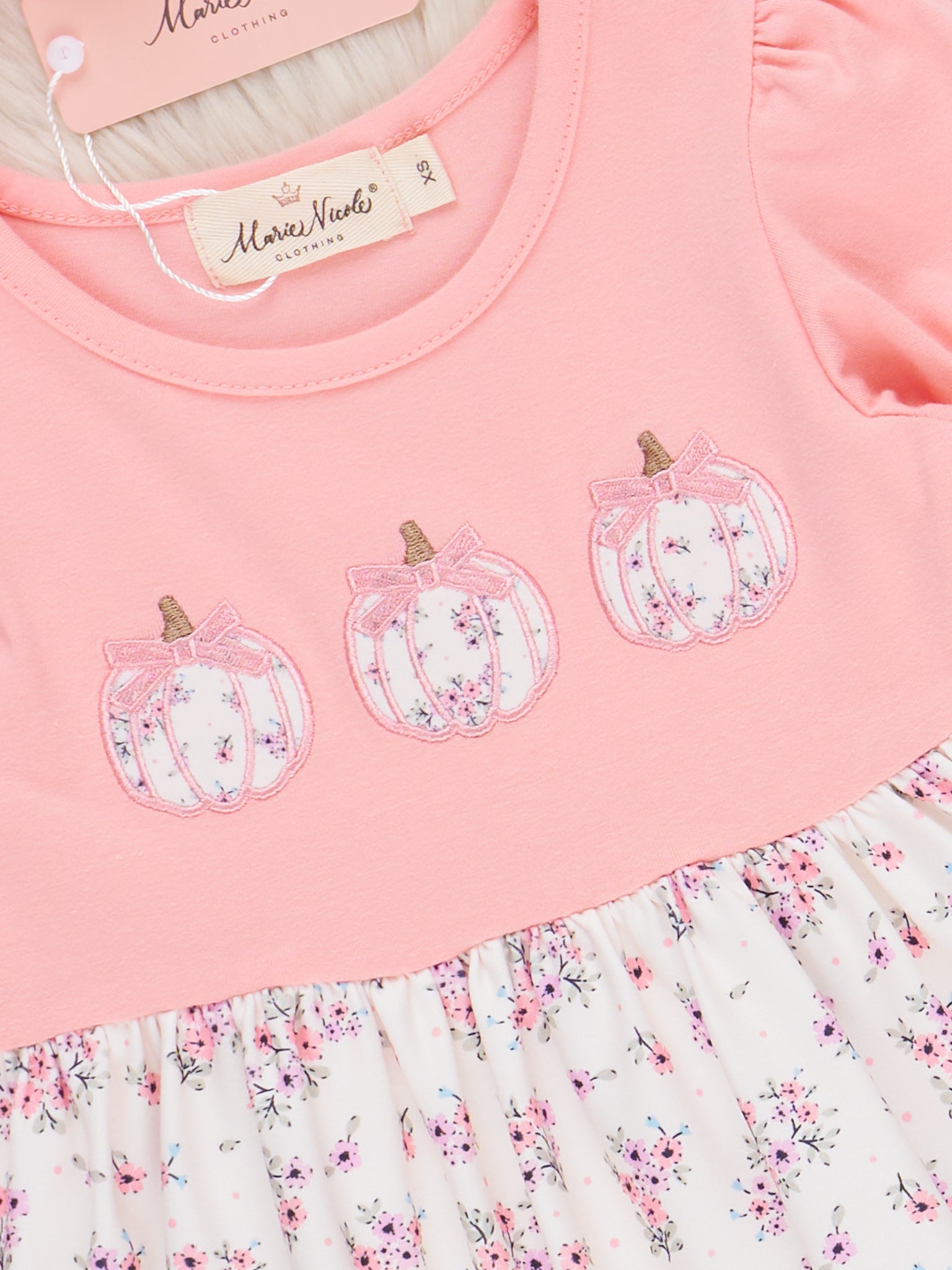 The Rustic Rose Pumpkin Embroidered Dress is a cozy and charming outfit perfect for autumn adventures. Featuring delicate pumpkin embroidery paired with rustic rose print, this dress from Marie Nicole Clothing blends seasonal warmth with soft, breathable comfort. Finished with gentle ruffle details, it’s ideal for pumpkin patch visits, family photos, or any day she wants to embrace fall in style.