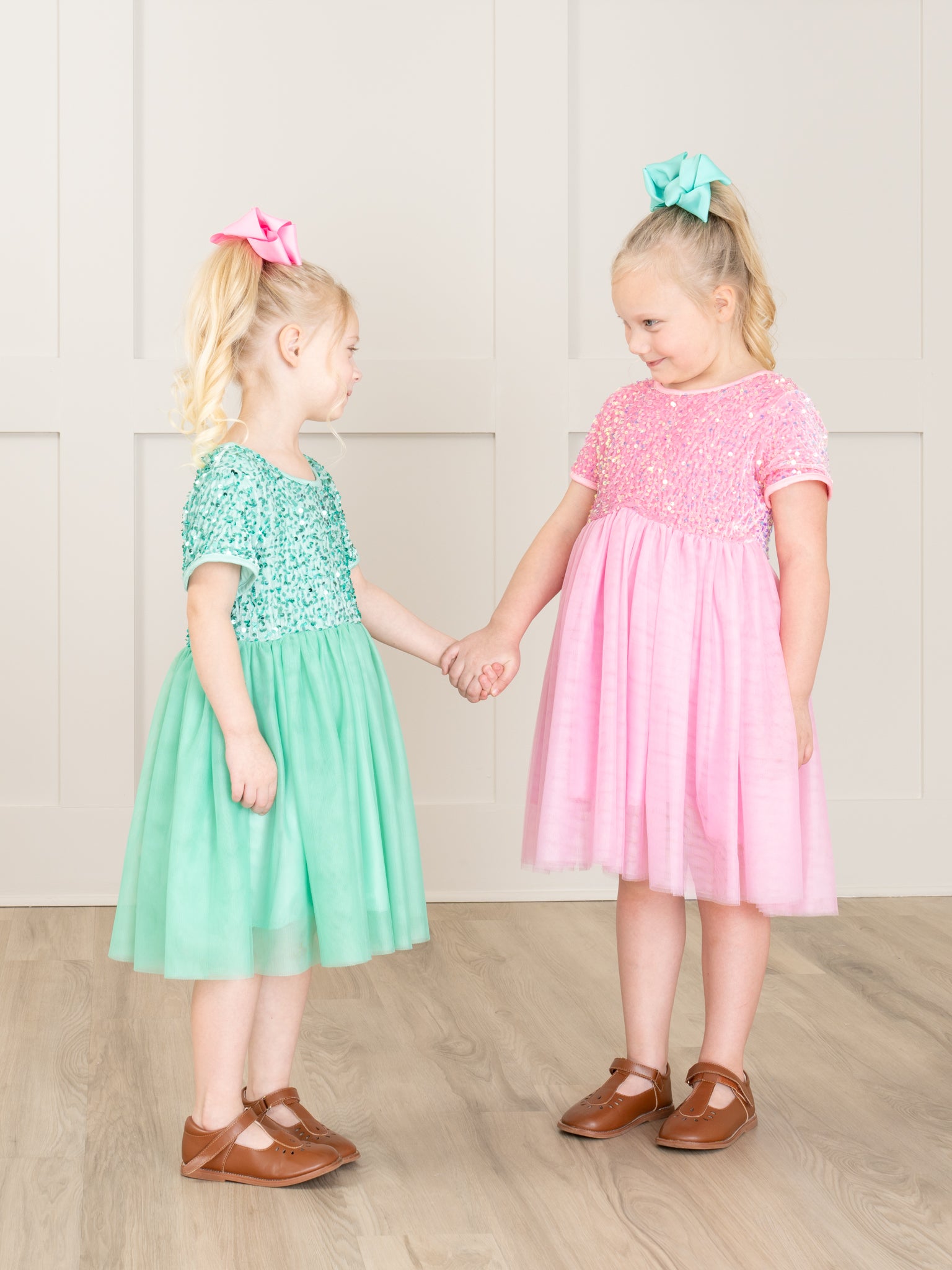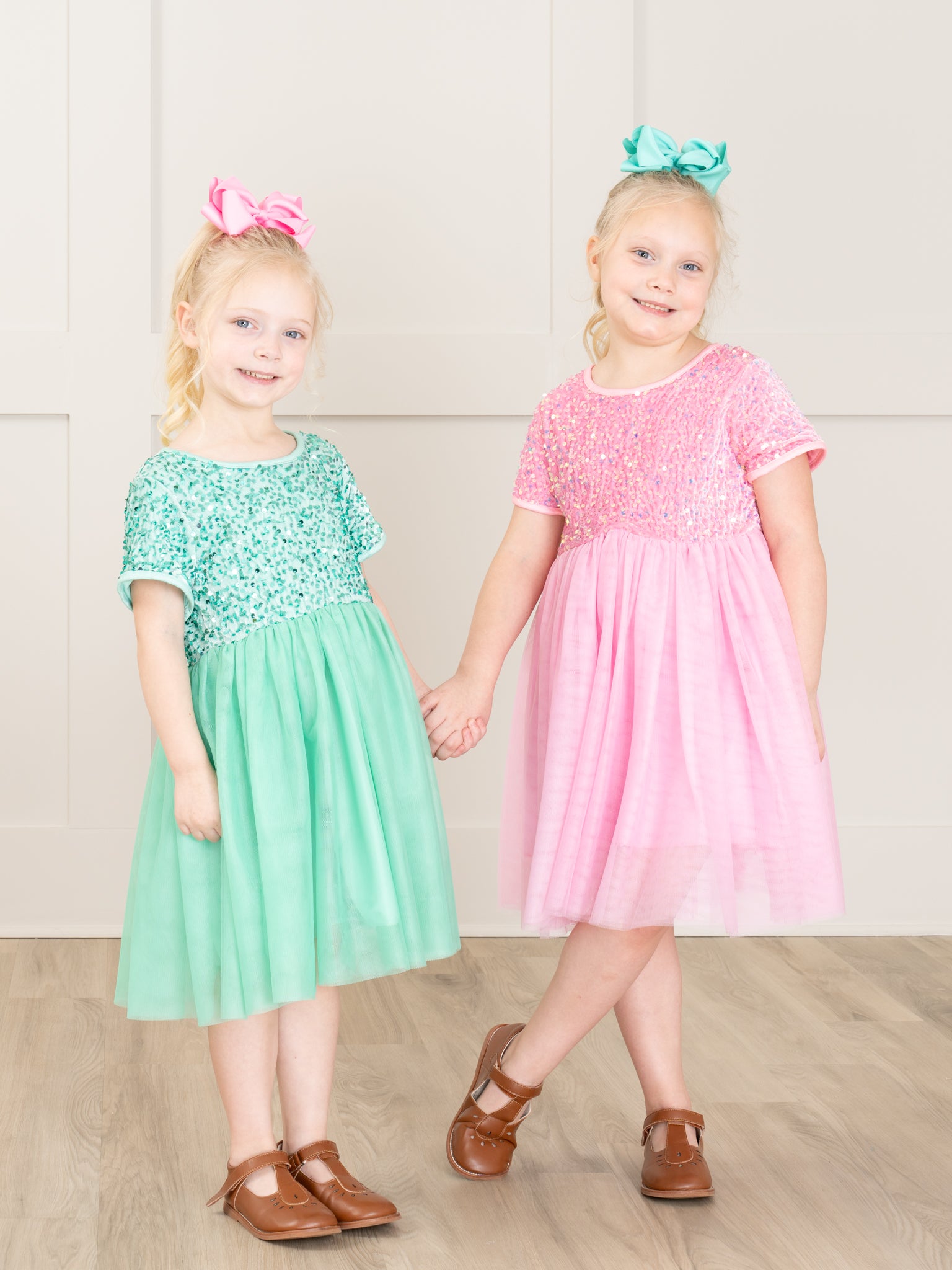Let your kiddo shine bright like a diamond in Our Sparkly Tulle Dresses! With its sparkly sequin bodice and fun, flouncy tulle skirt, every inch will dazzle. Fully lined for a comfy fit and a zipper back for easy on and off, this dress will surely be your little one’s favorite. Shine on, you crazy diamond!
