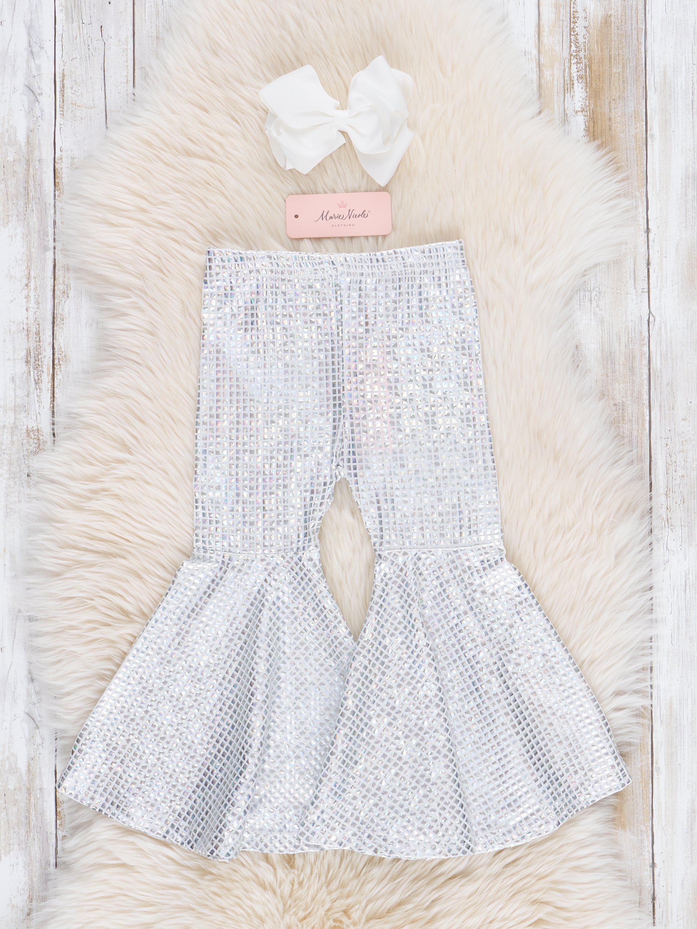 Your little one can shine like the star they are in these disco-fabulous silver bell bottoms! With an elastic waistband and a mix-and-match style, these pants will help them get groovy - whether they're headed to a playdate or just pretending to be a rockstar at home.