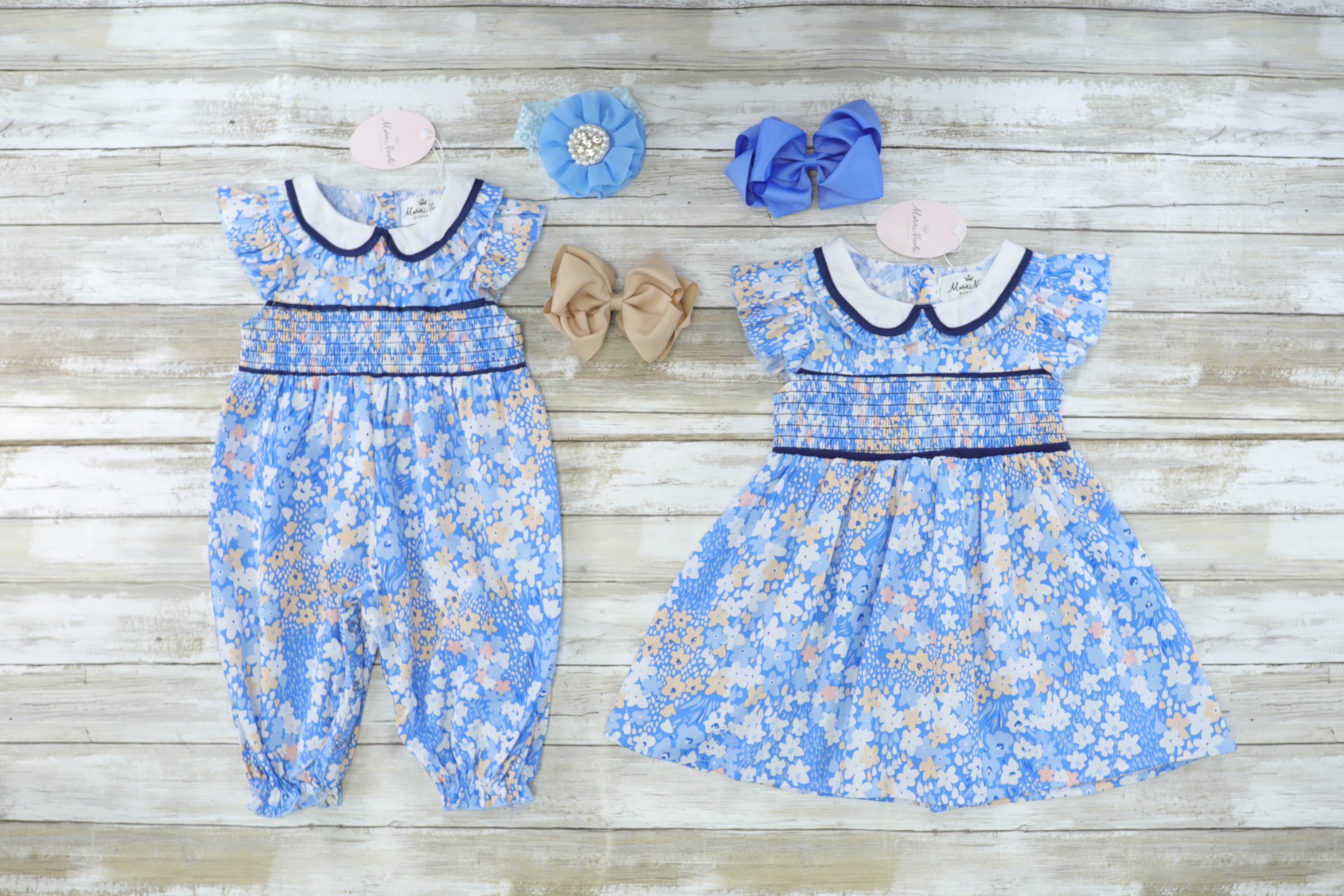 We love this classic & dainty sister set! This romper features a timeless collar detail, smocking, & bubble legs with cinching at the ankle.