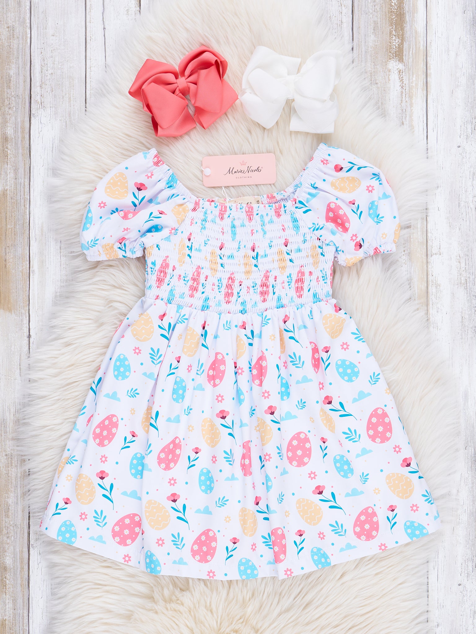 Get ready for Easter in style with our adorable Smocked Easter Eggs Sister Set. Featuring a cute smocked design and colorful easter eggs, this dress is the perfect addition to your little one's wardrobe. Get yours now and make your little one stand out this holiday season!