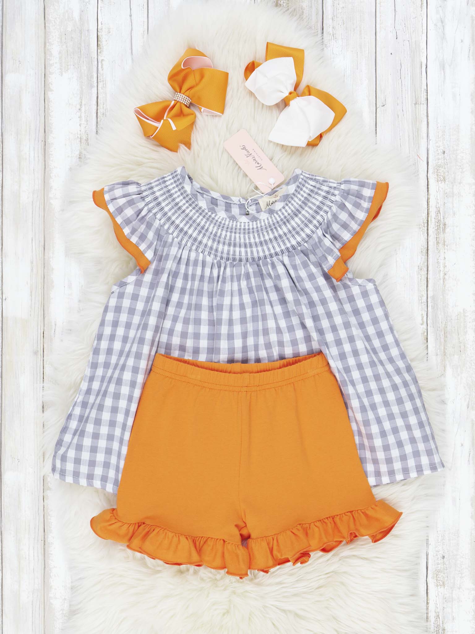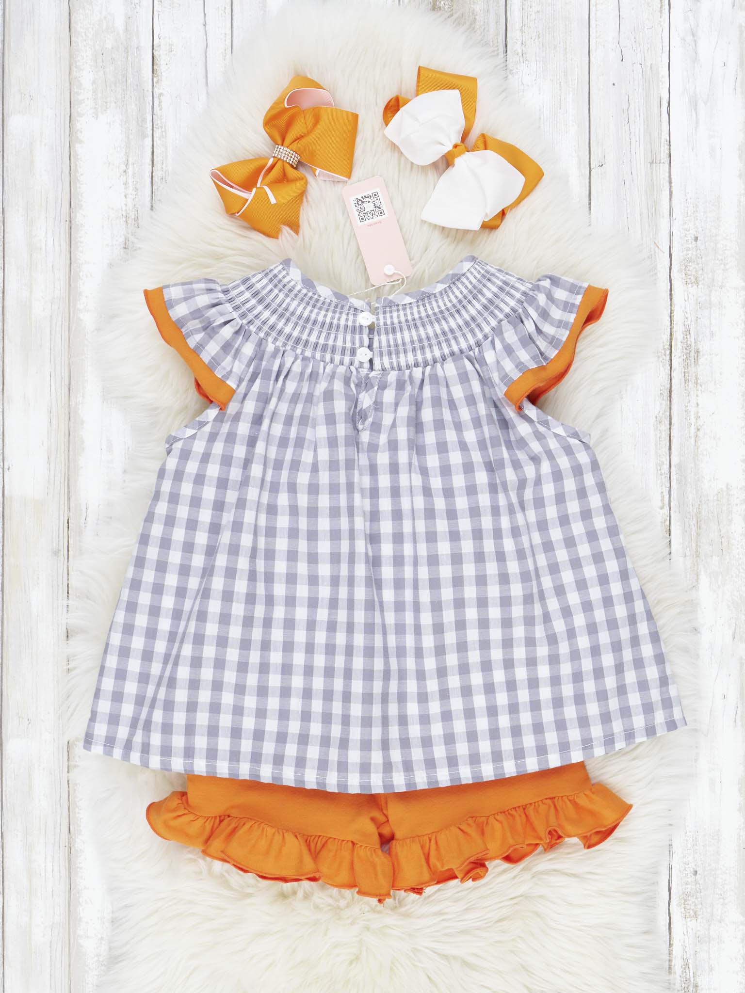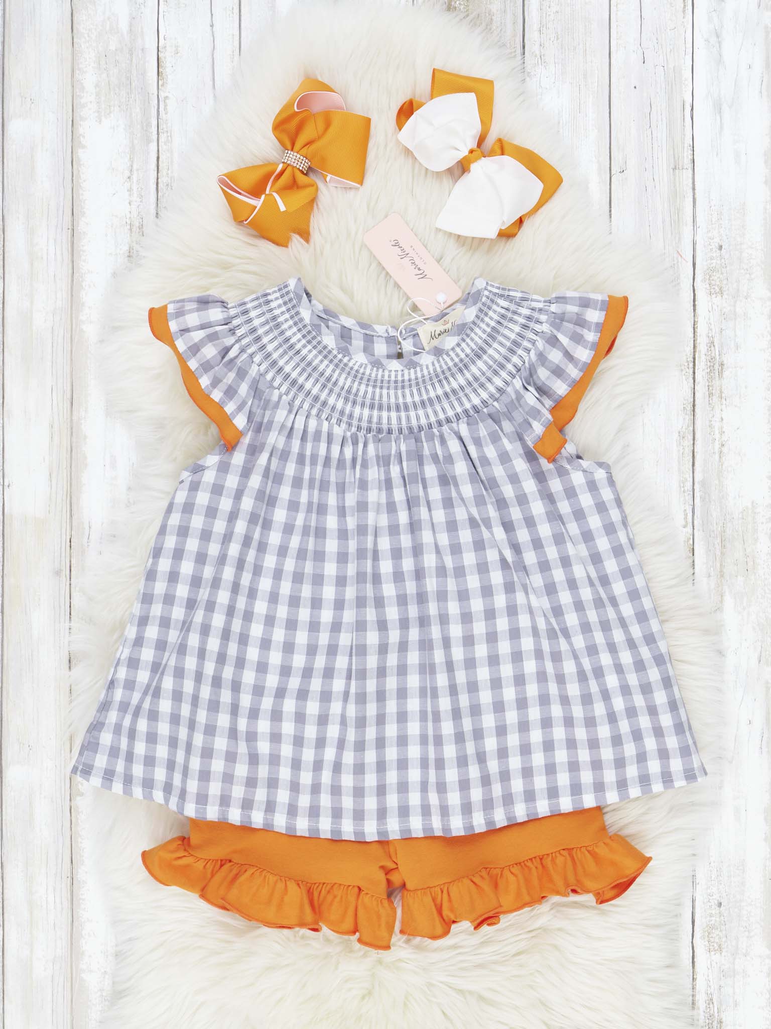 Stay stylish with this family-friendly collegiate set! Our Orange & White Outfit comes in a fresh gingham design and is perfect for any family outing. Get your matching set now and show your sports-themed pride!