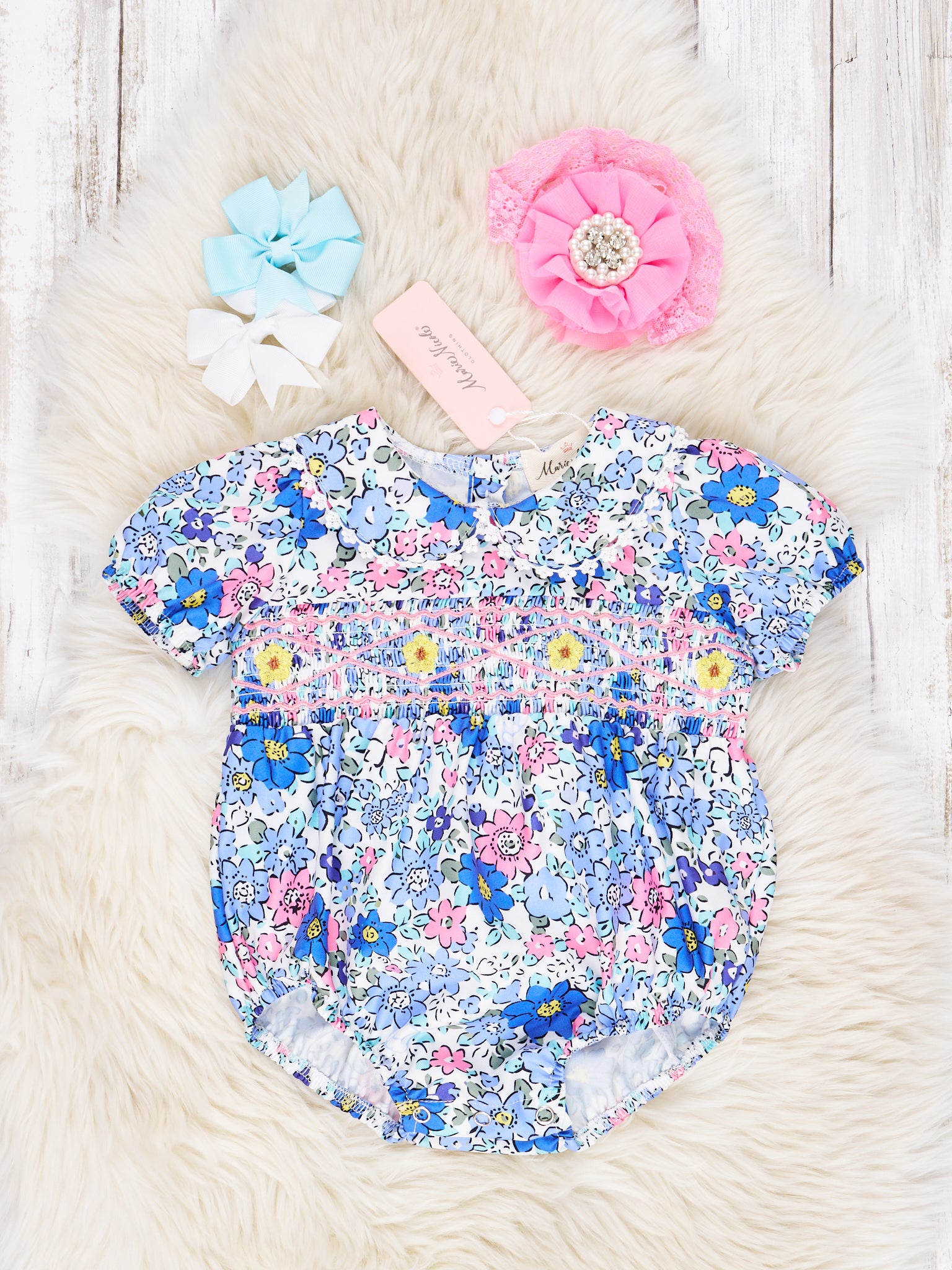 This darling sister set is sure to have them looking smocked to impress! With its peter pan collar, navy floral print, and vintage-style look, your little one will steal the show!