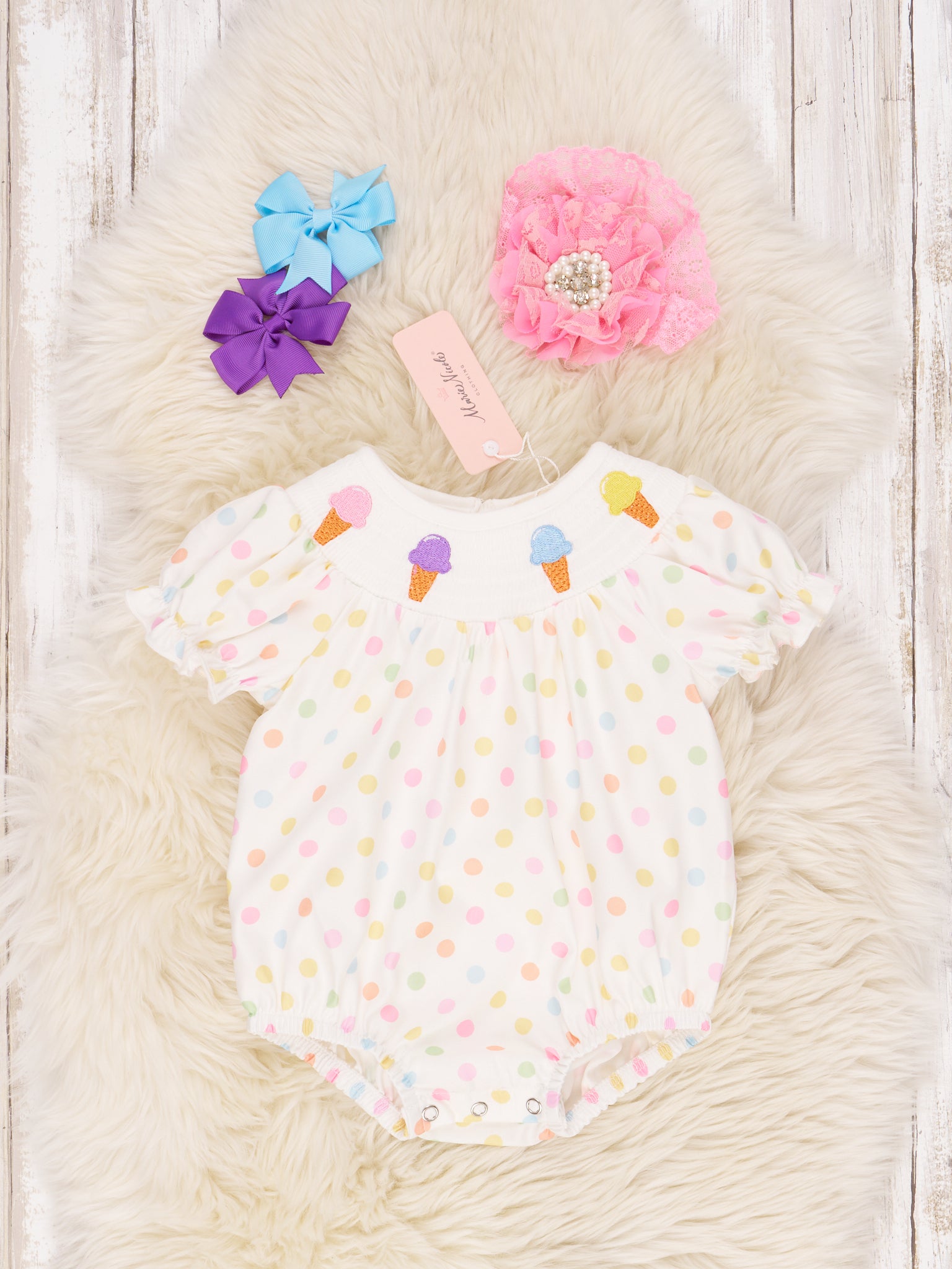 Smocked Polka Dot Ice Cream Ruffle Romper
