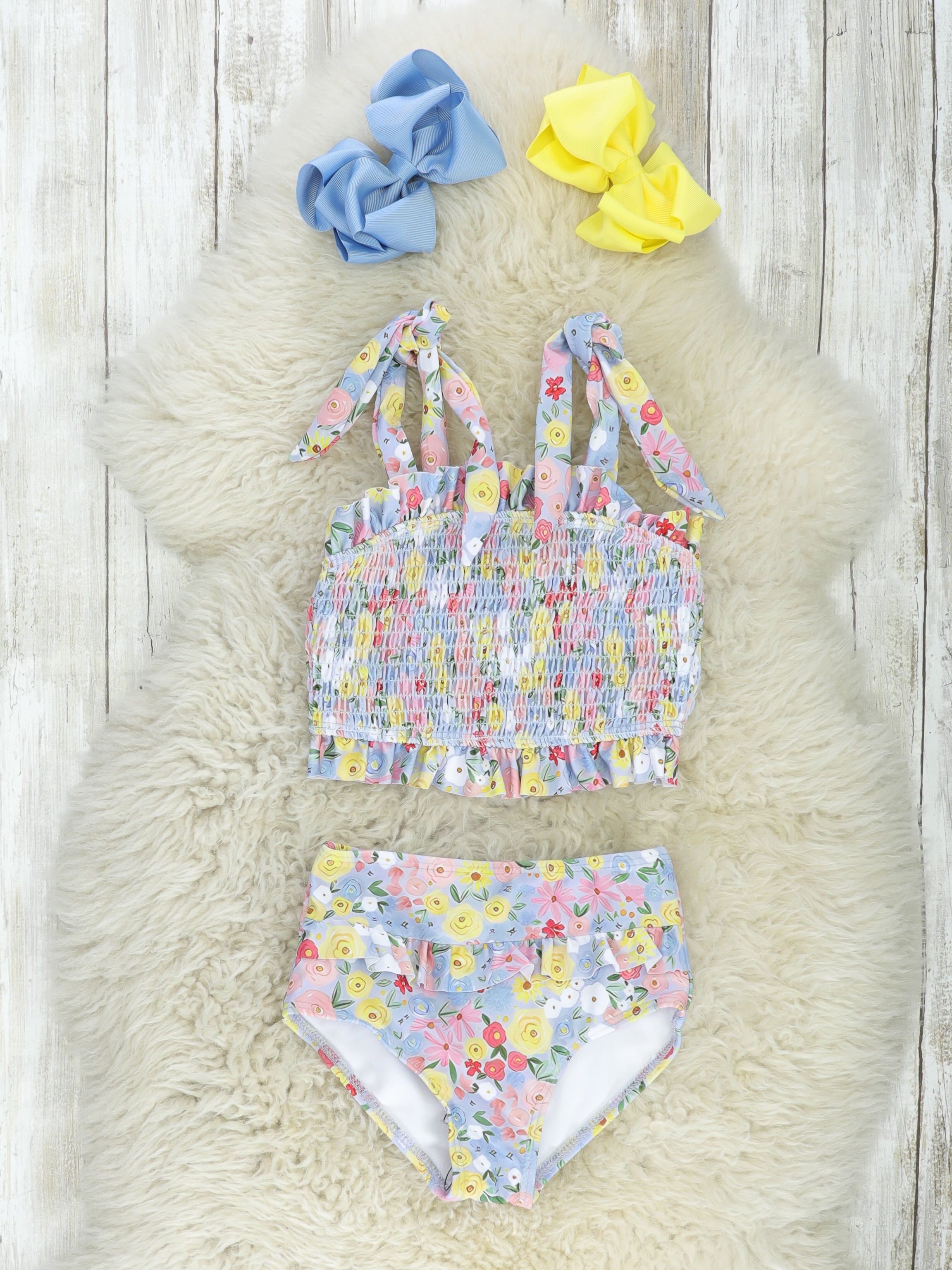 These Smocked Poppy Tie 2-Piece Swimsuits is the perfect poolside pick for those who like to make waves! With smocked fabric and poppy accents, this suit has you covered when it comes to turning heads! The adjustable tie straps and ruffles ensure you can keep your look fresh, whether you prefer a beachy-casual or party-ready vibe. So go ahead and dive in; you'll be making a splash either way!