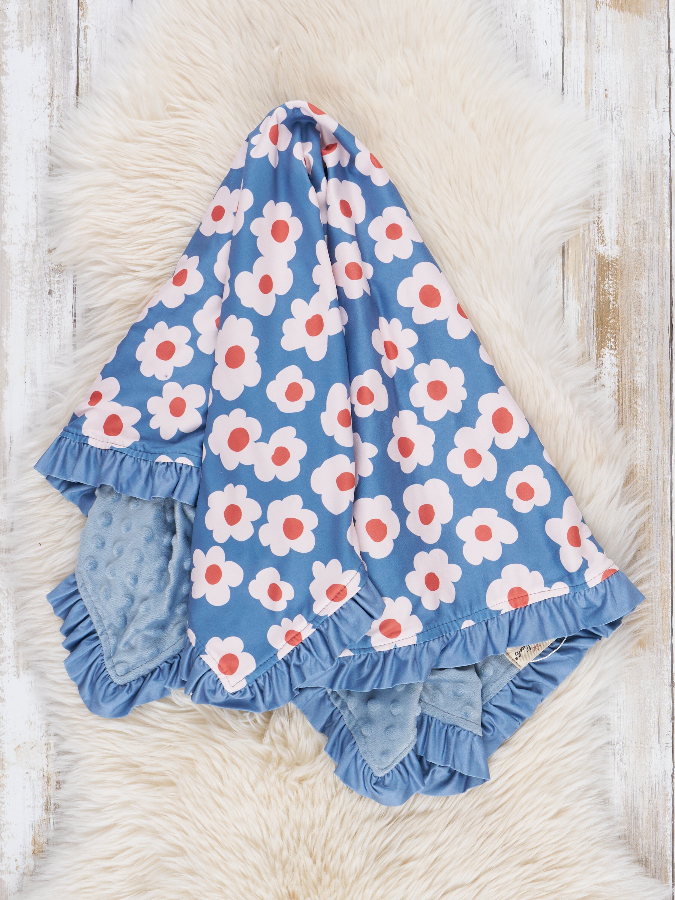Soft Orange & Blue Daisy Minky Ruffle Blanket