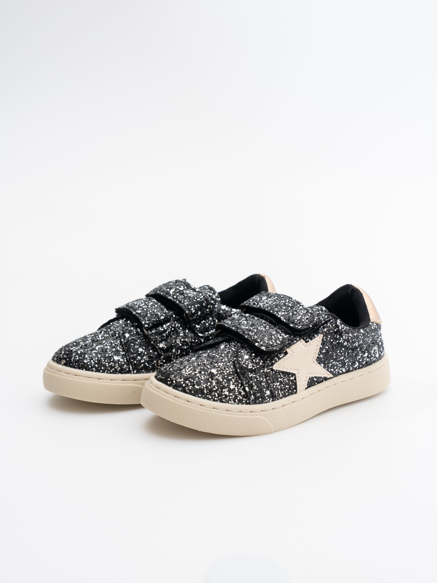 Discover the perfect balance of style and comfort with our Sparkly Black Velcro Sneakers! Featuring a special double velcro closure for a secure fit and a durable rubber sole for long-lasting wear, these shoes will take your little one anywhere she needs to go with ease. Plus, the sparkly stars will add some extra fun to her look! Get your sparkle on!