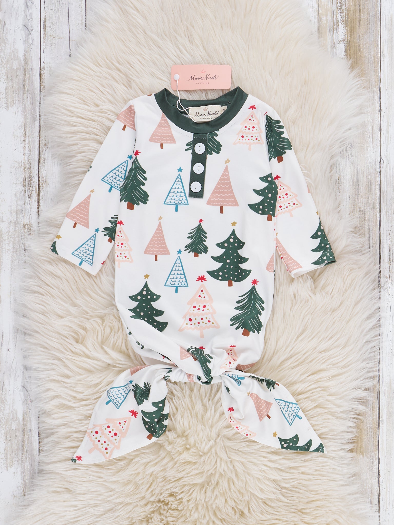Starry nights galore! The Starlit Evergreens Knot Gown by Marie Nicole Clothing is full of Christmas trees and holiday magic. With a comfy fit and soft fabric, this piece is snug and cozy, perfect for winter evenings at home. Brighten up your little boy's night of rest with this charming one-piece!