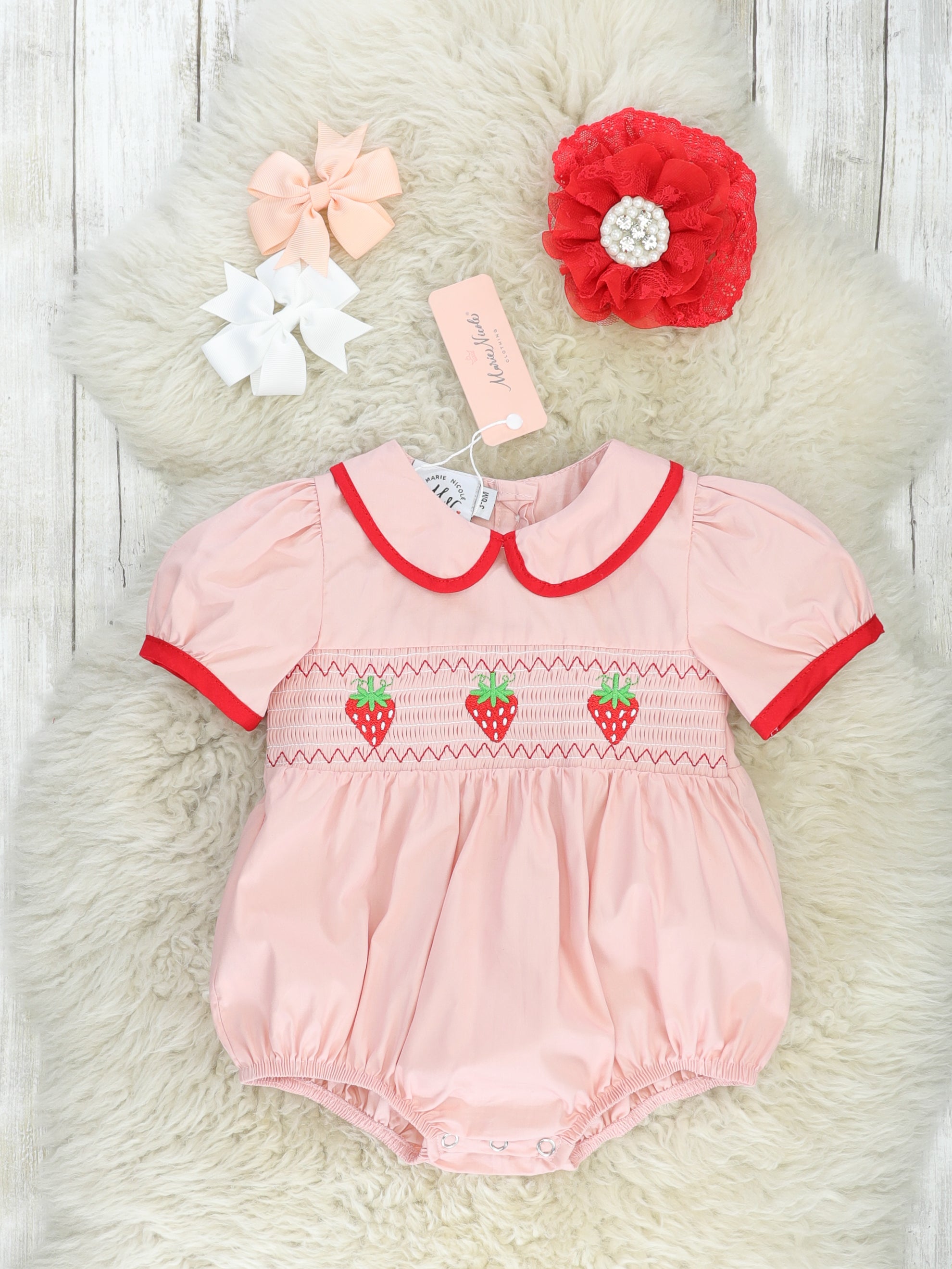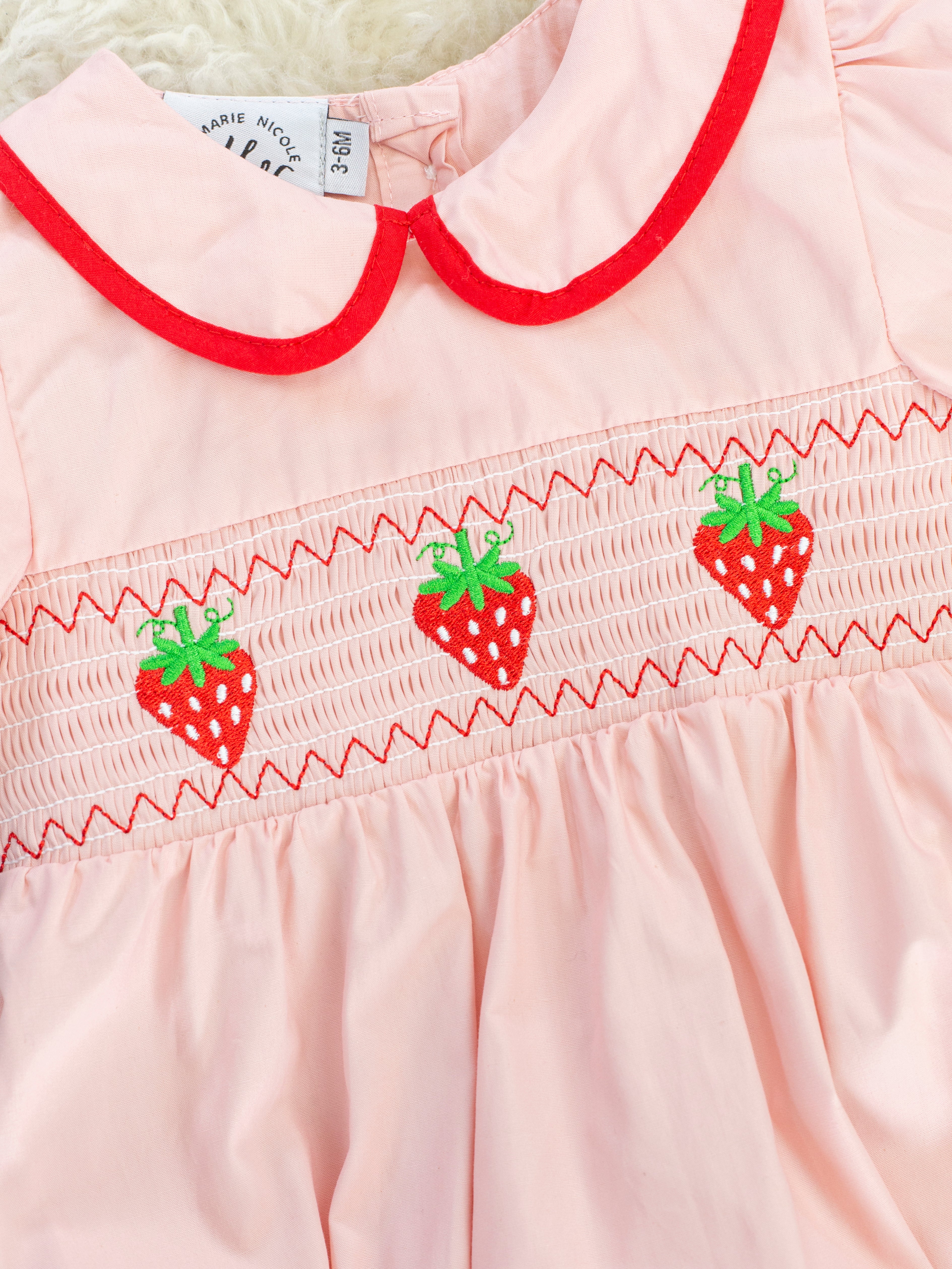 Bring a little nostalgia and fun to any occasion with this sweet sister set featuring a vintage strawberry smocked bubble. So adorable with its embroidered strawberries, peter pan collar, and classic red trim, you'll be sure to surprise and amuse all your friends! Perfect for a day of fun in the sun!