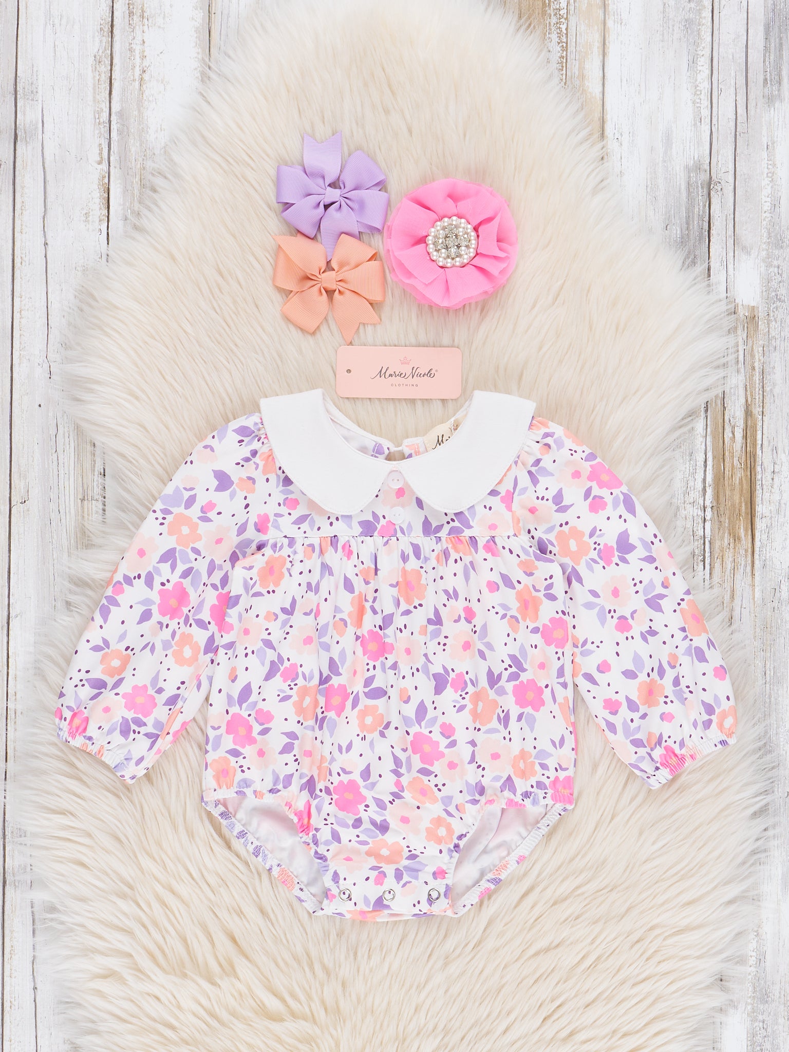 Glow with warmth and charm in our Sunset Bouquet Bubble! This sweet girls’ bubble from Marie Nicole Clothing features a beautiful bouquet print inspired by golden sunsets, accented with soft ruffles and bow-tied straps. Perfect for sunny days, family gatherings, or stepping out in style and comfort.
