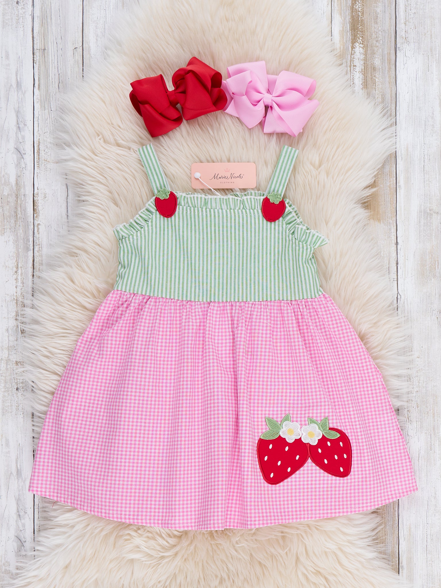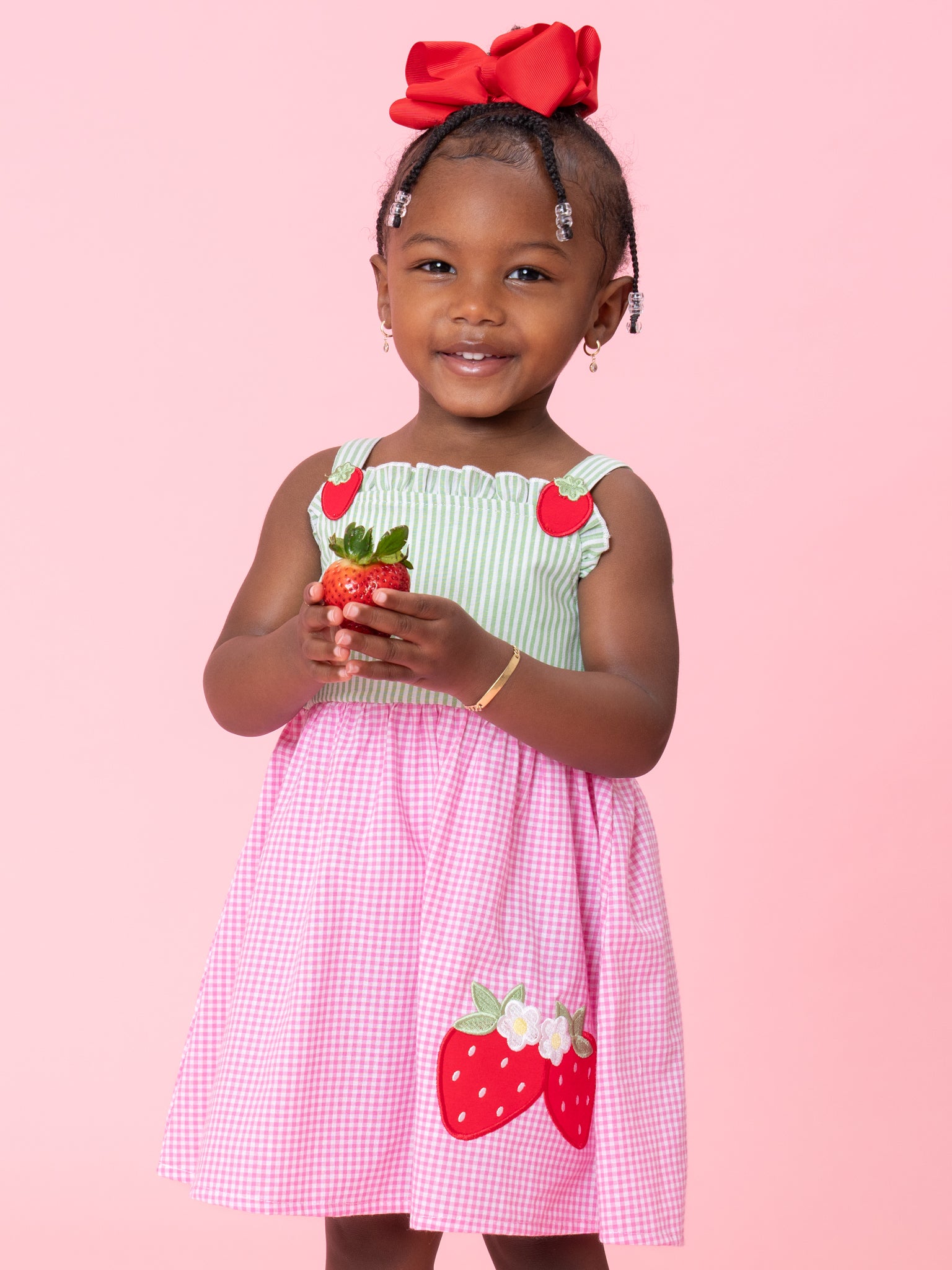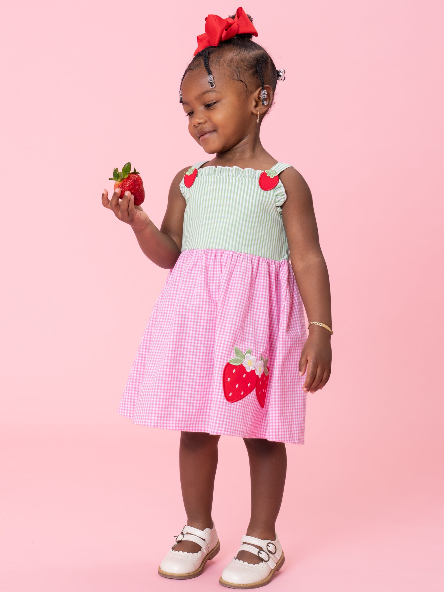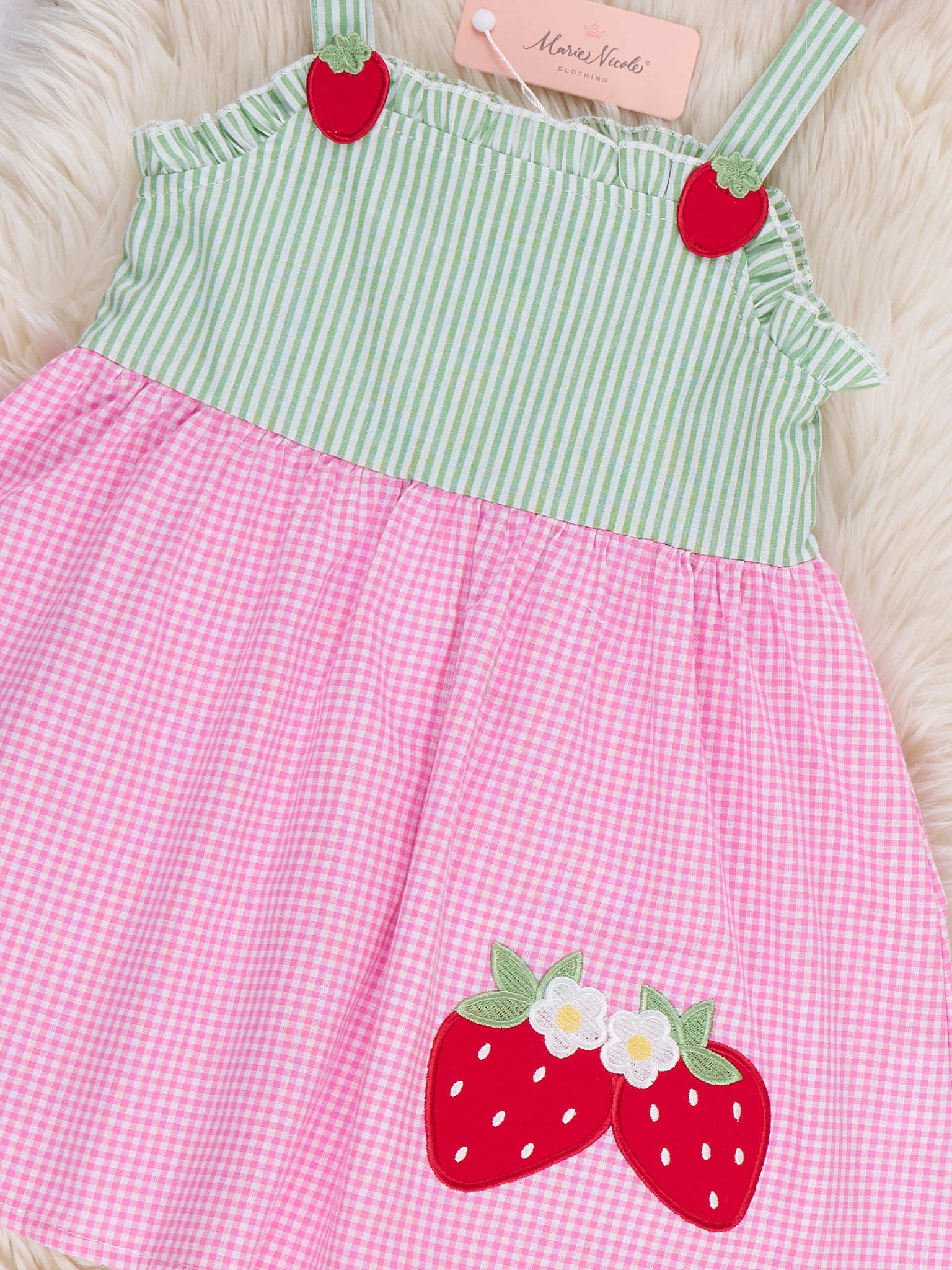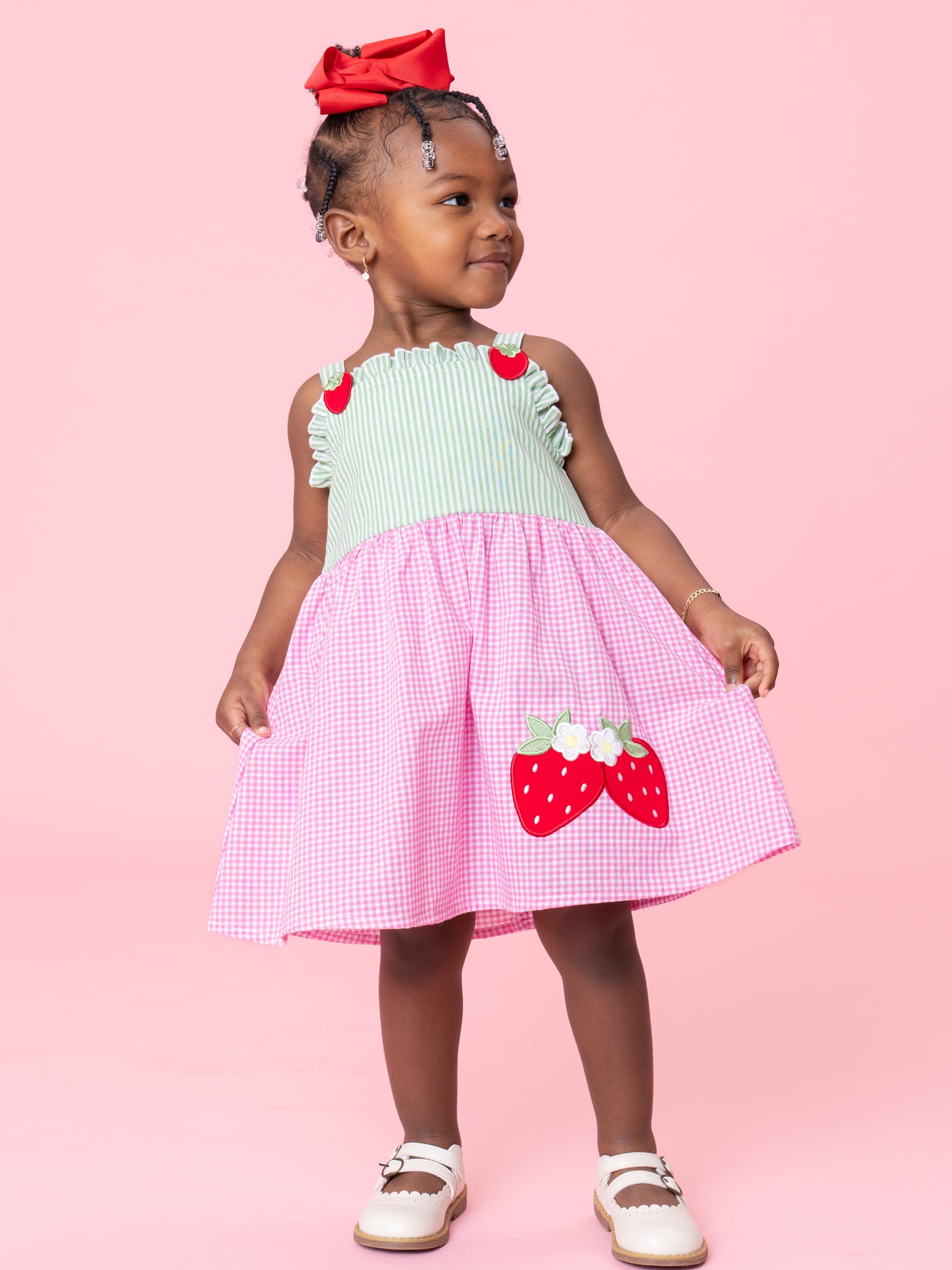 The Sweet Berry Duo Embroidered 100% Cotton Dress from Marie Nicole Clothing brings playful charm to every little moment with its delightful strawberry appliqués and softly gathered skirt. Designed with comfortable shoulder straps and a breezy silhouette, it allows easy movement for active days. Crafted from lightweight, breathable fabric, it keeps little ones feeling fresh, making it perfect for outings, playdates, and special occasions.