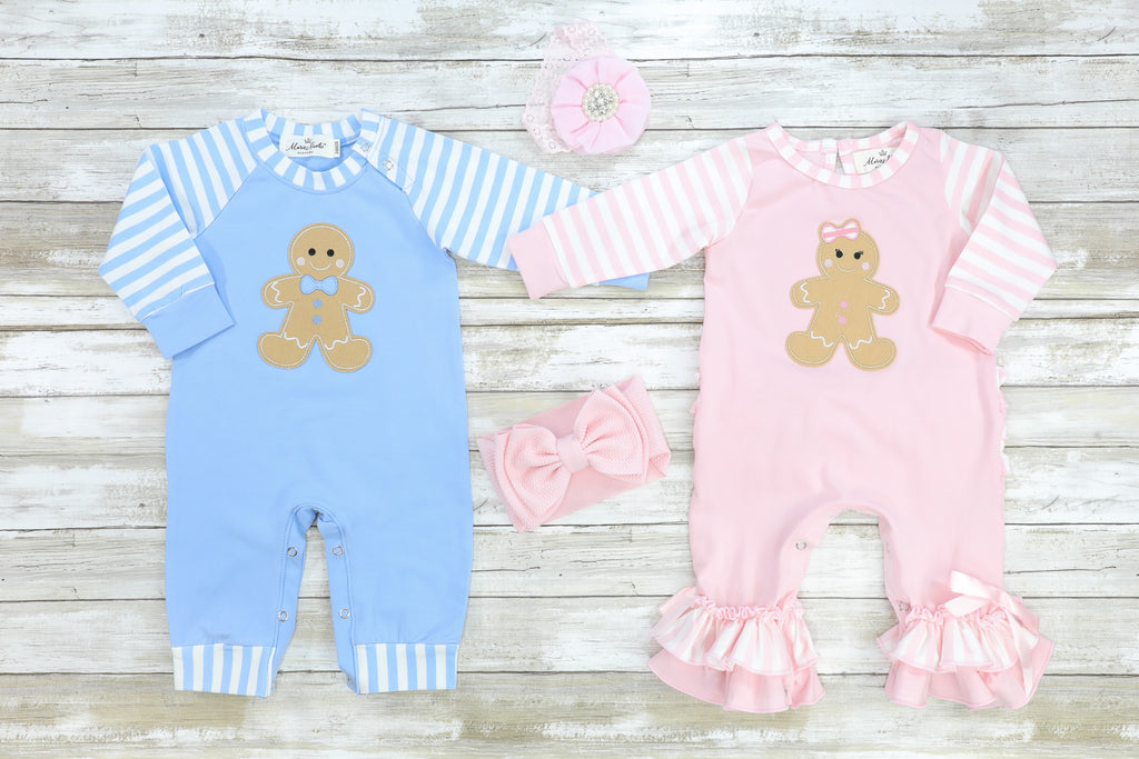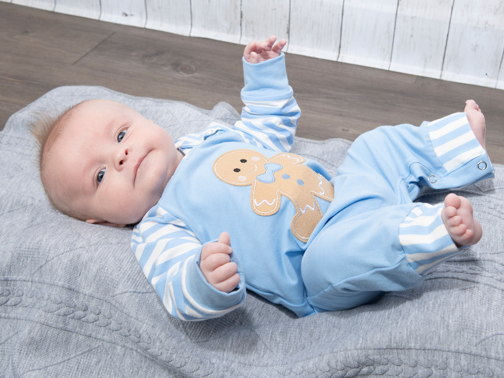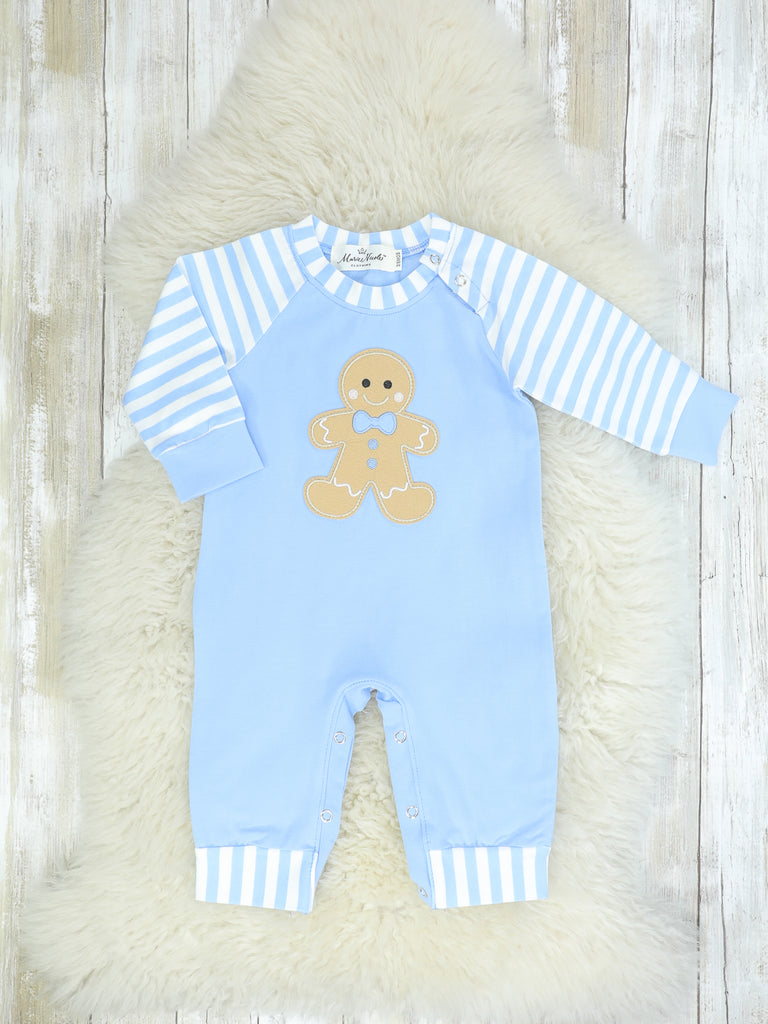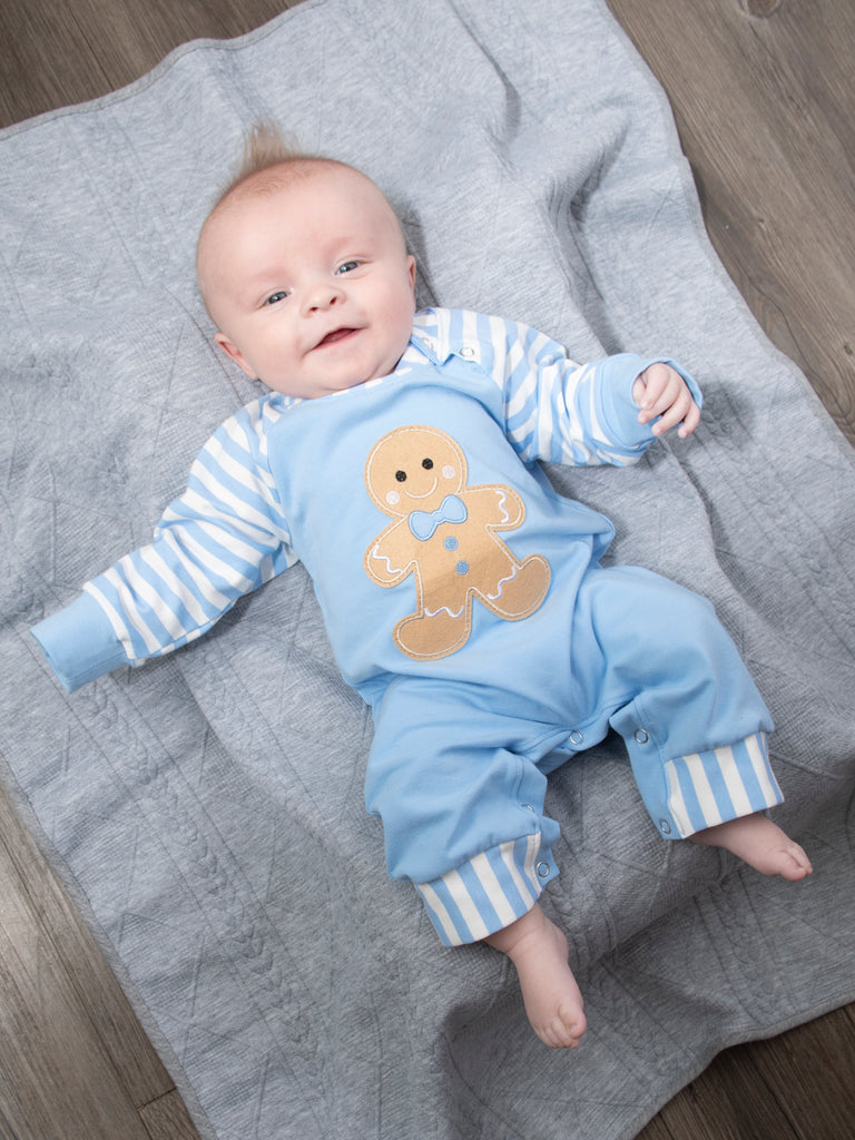 Christmas Gingerbread Romper Pajamas - Blue