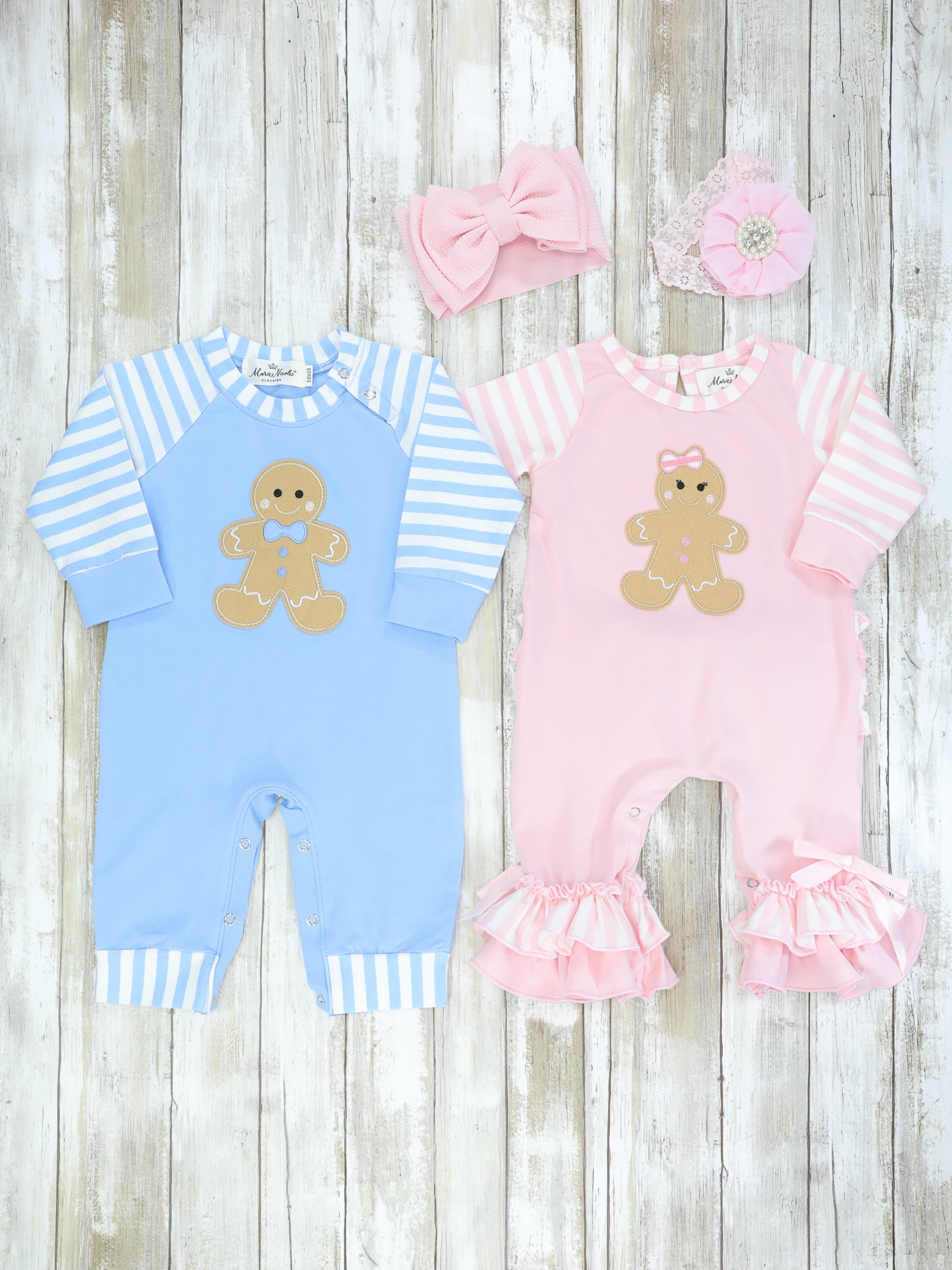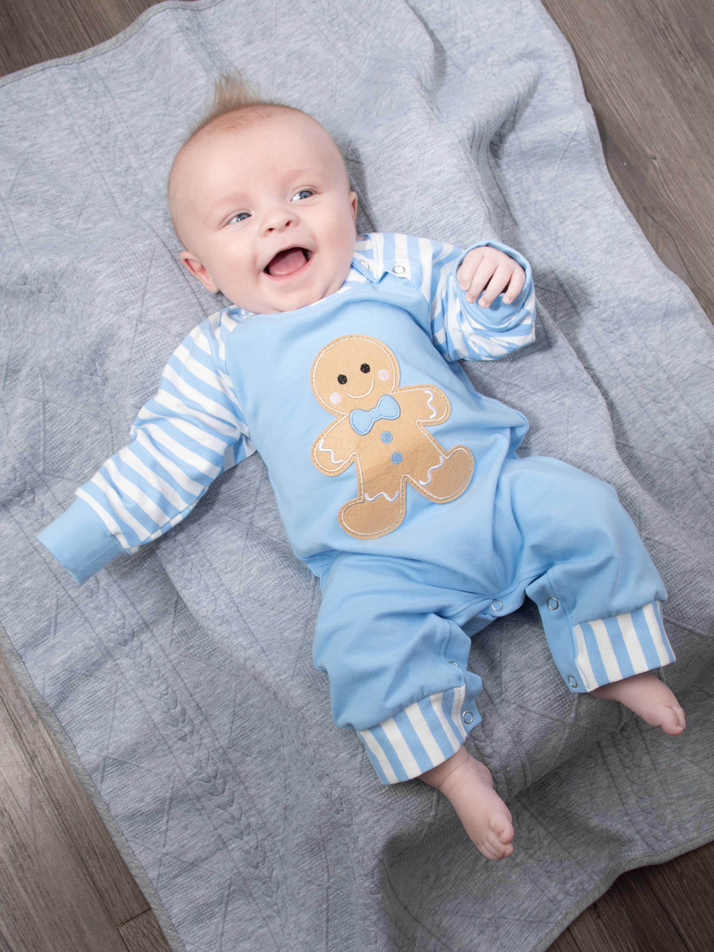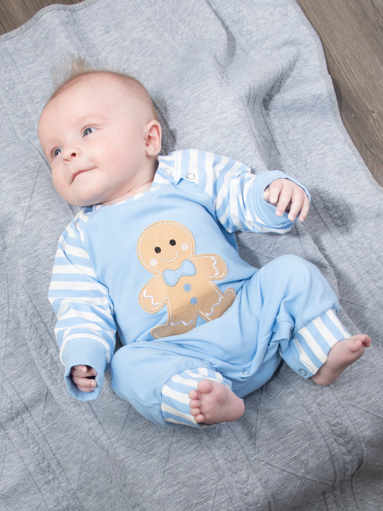 Christmas Gingerbread Romper Pajamas - Blue