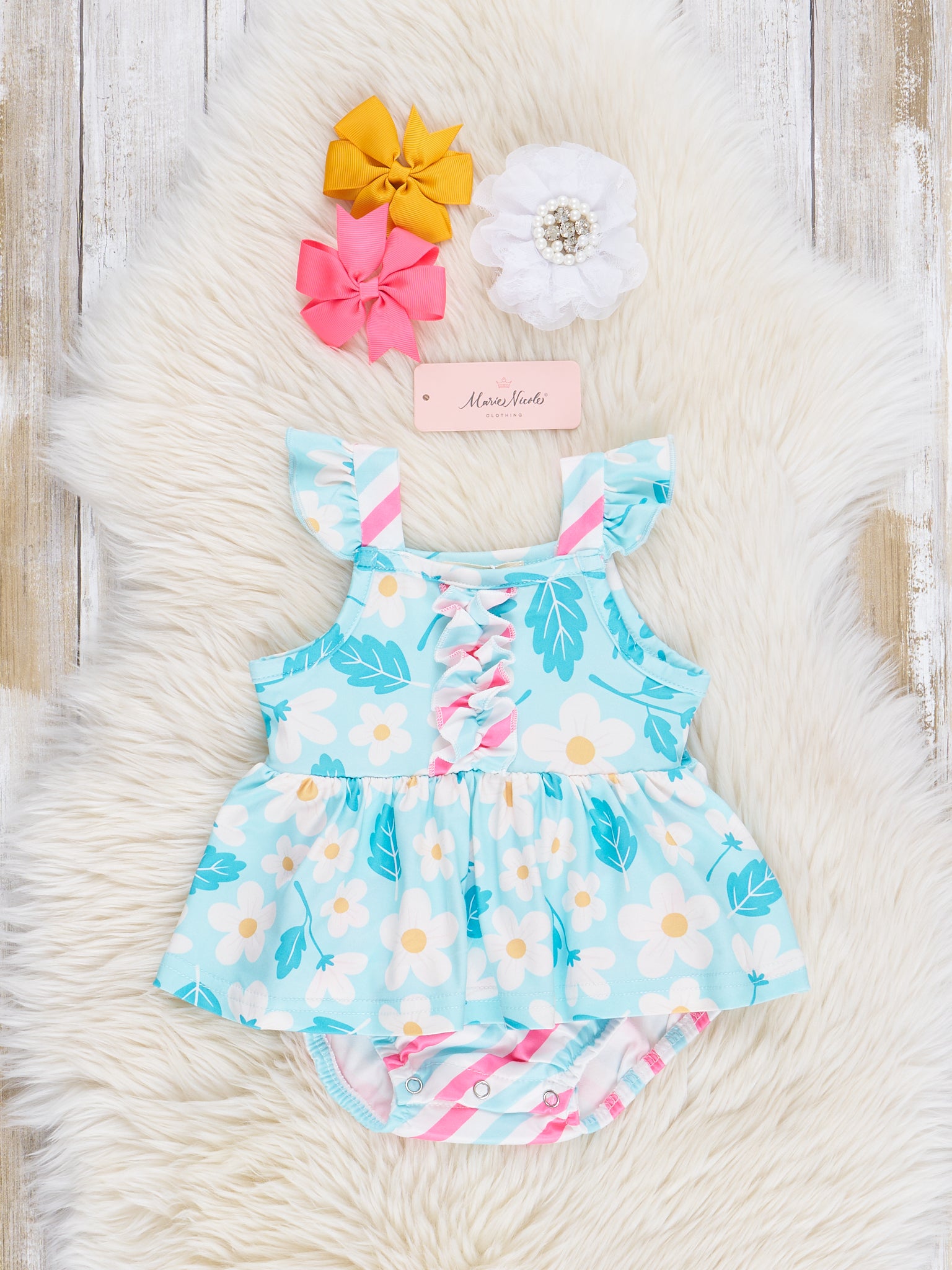 Teal Daisies & Candy Stripes Ruffle Bubble