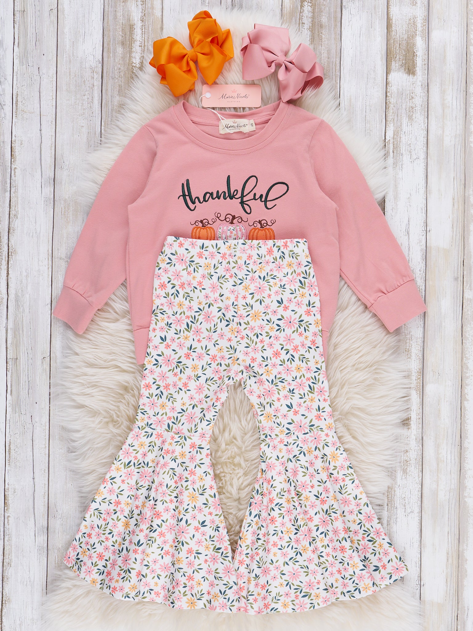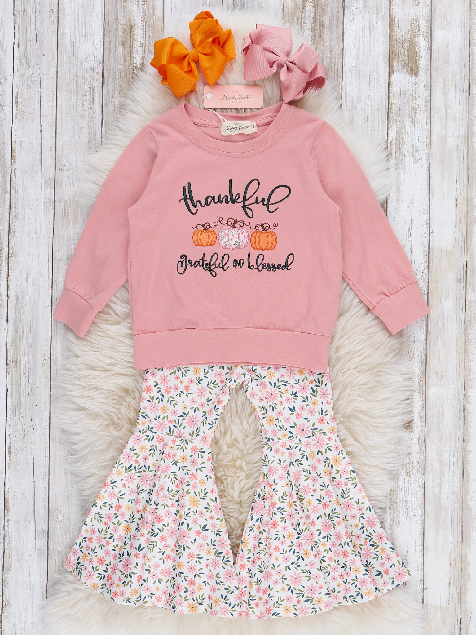 Thankful Graceful & Blessed Pumpkin Bell Bottom Outfit