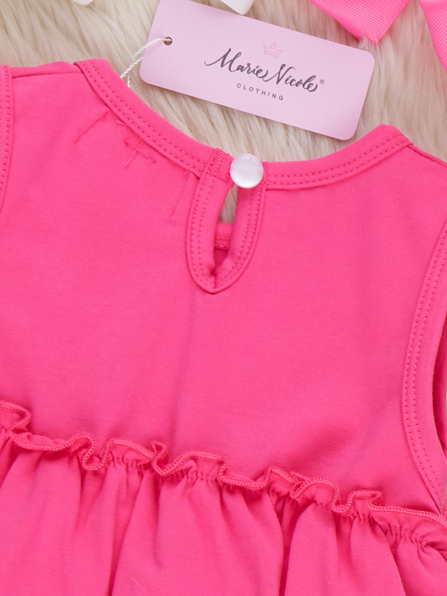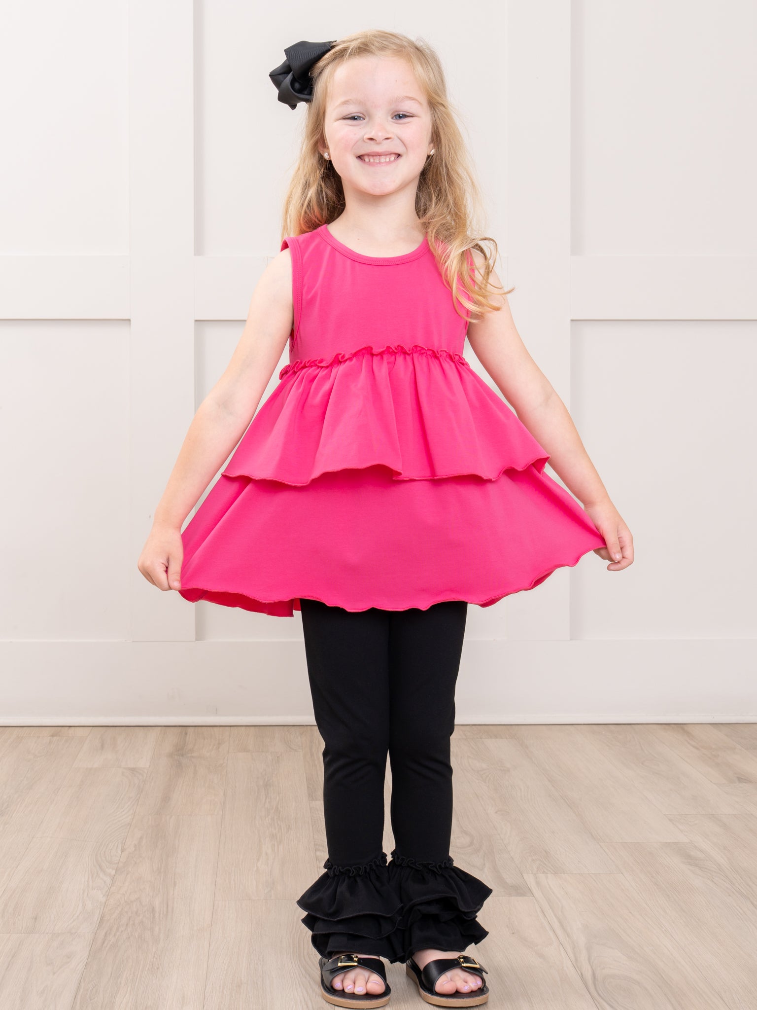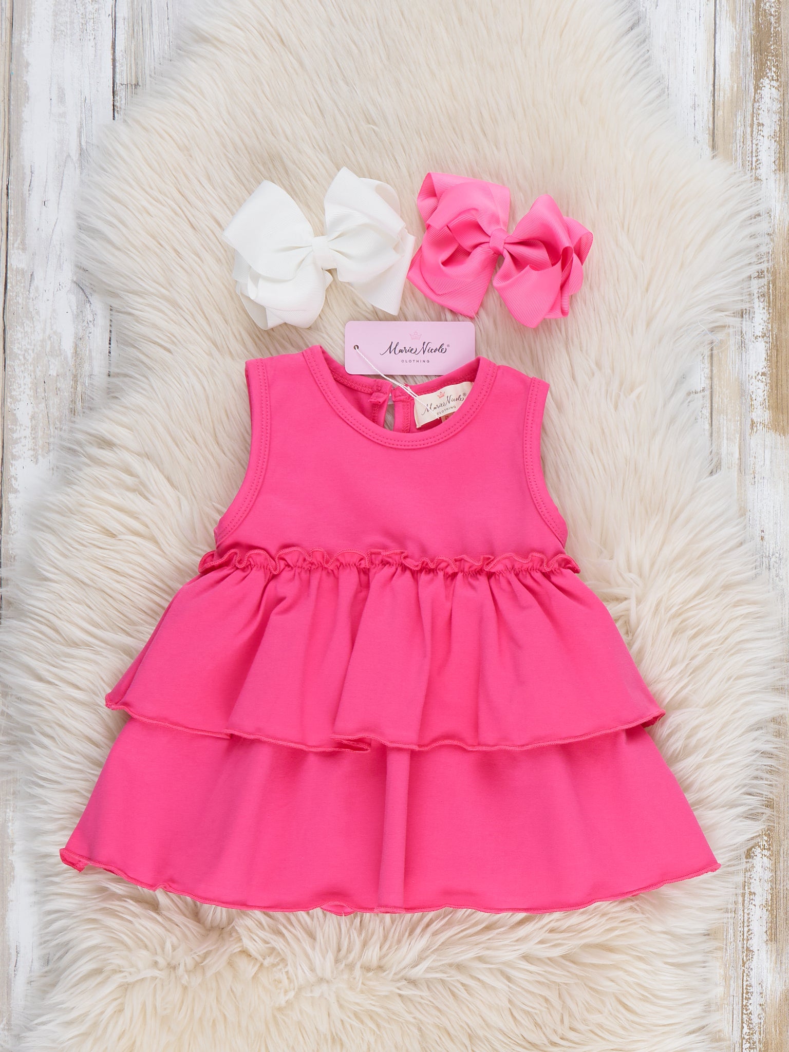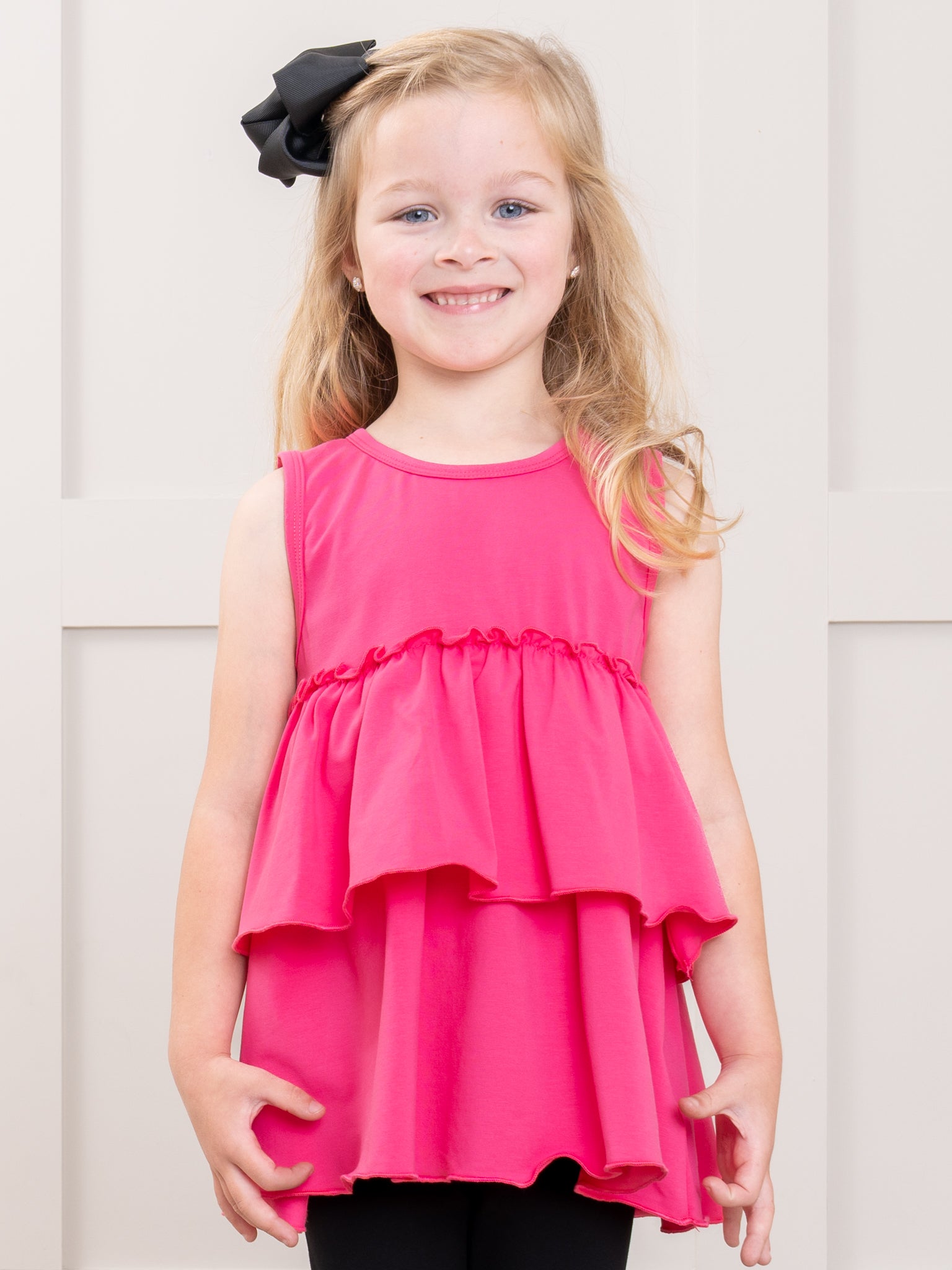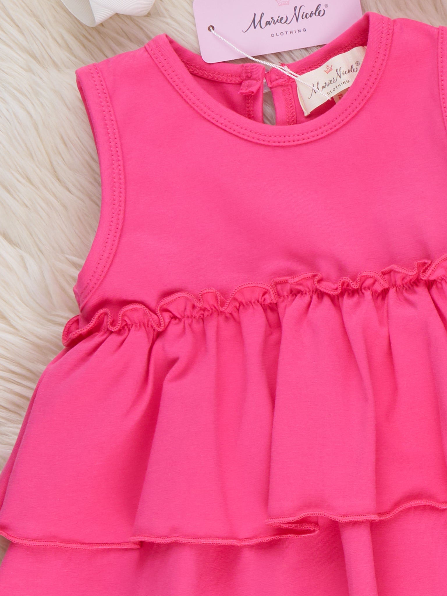 A closet staple for the summer! The Tiered Ruffle Tank in Hot Pink is perfect for mixing and matching. This top by Marie Nicole Clothing features tiered ruffles and a comfy sleeveless silhouette for those sunny playdates and vacation fun!