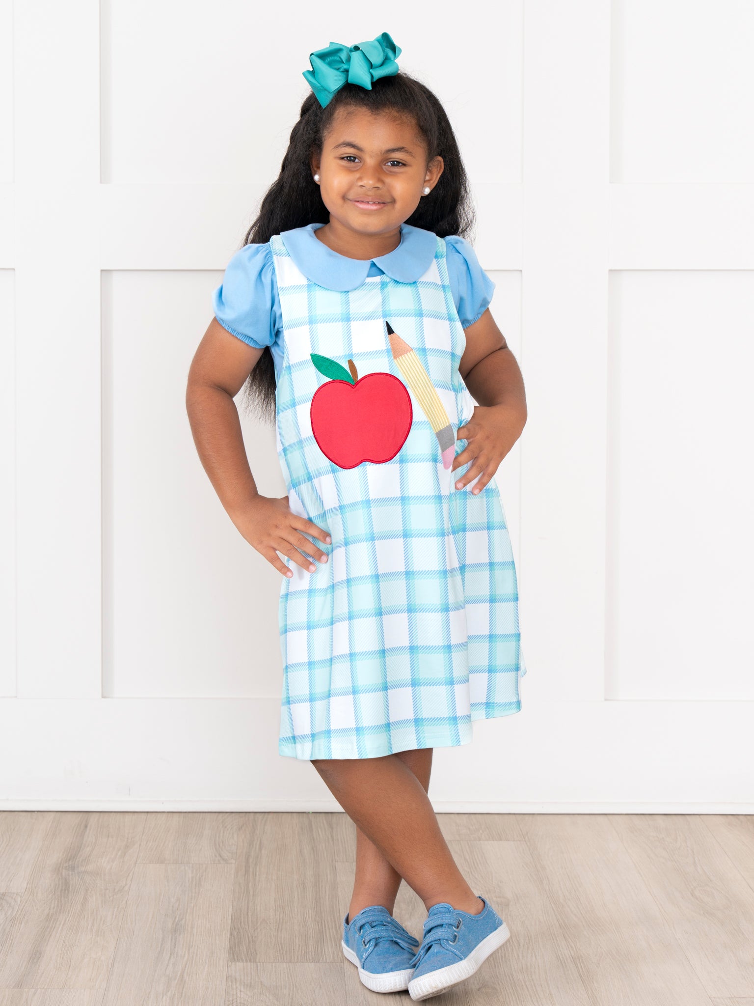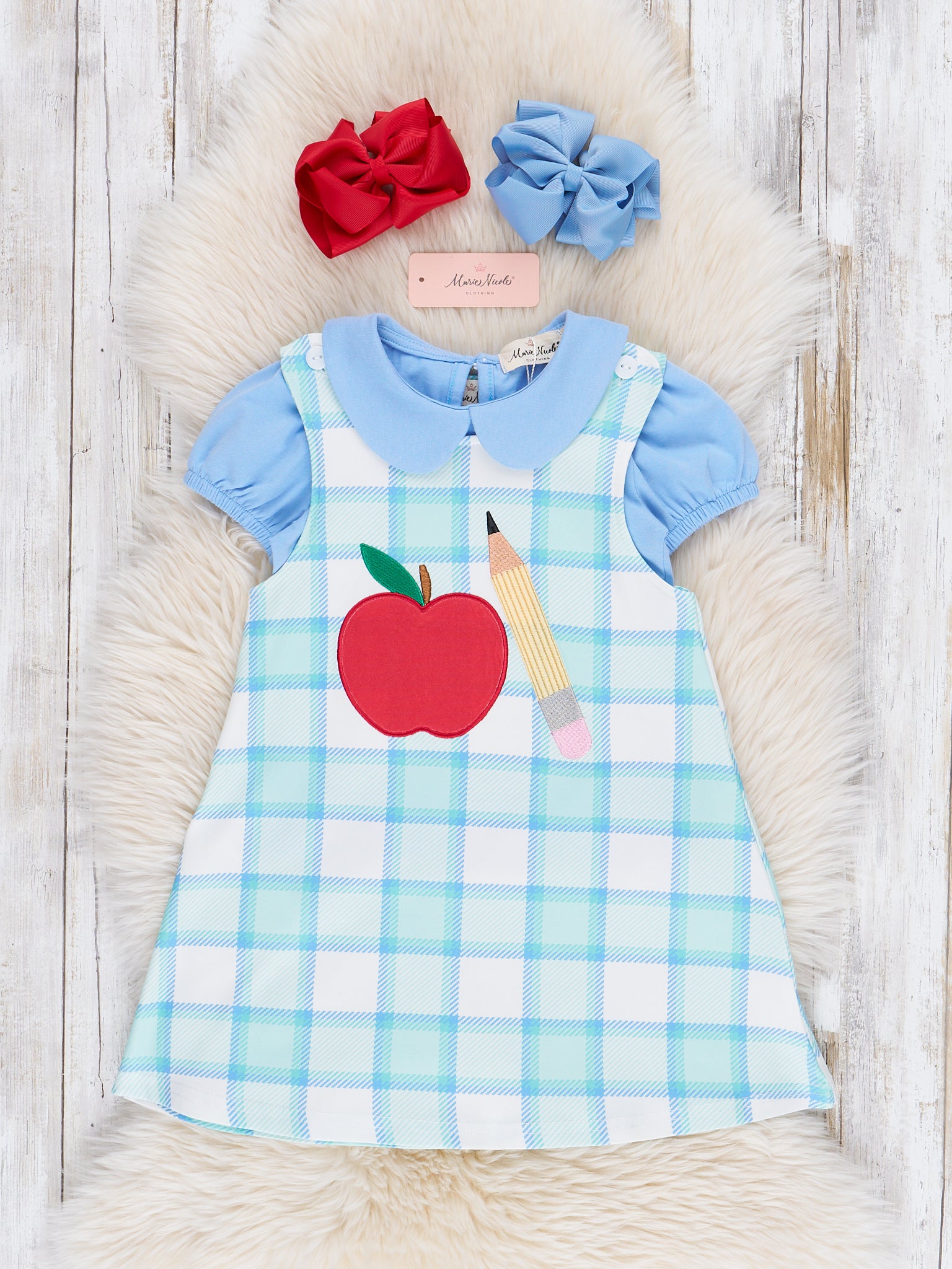 The Top of Class Plaid Skirtall Outfit is a stylish and playful choice perfect for back-to-school days and classroom adventures. Featuring classic plaid fabric accented with charming apple and pencil embroidery, this skirtall from Marie Nicole Clothing blends timeless style with fun, youthful details. Made from soft, breathable fabric, it’s comfortable and ready for a day full of learning and play.