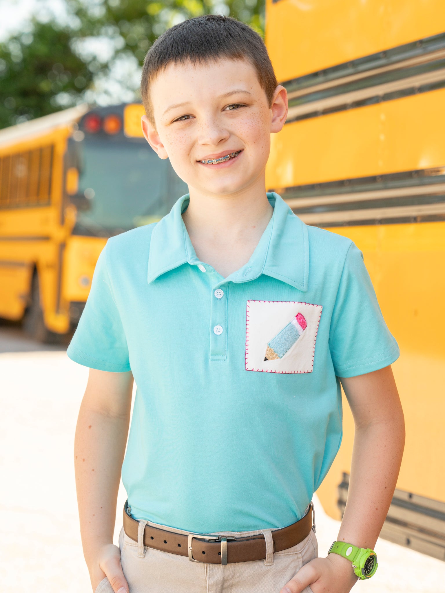 Get your little ones ready for school with this playful Turquoise Embroidered Pencil Polo Shirt. With its unique embroidered pencil design, it's perfect for a quirky sibling set. They'll be the coolest kids in the classroom!